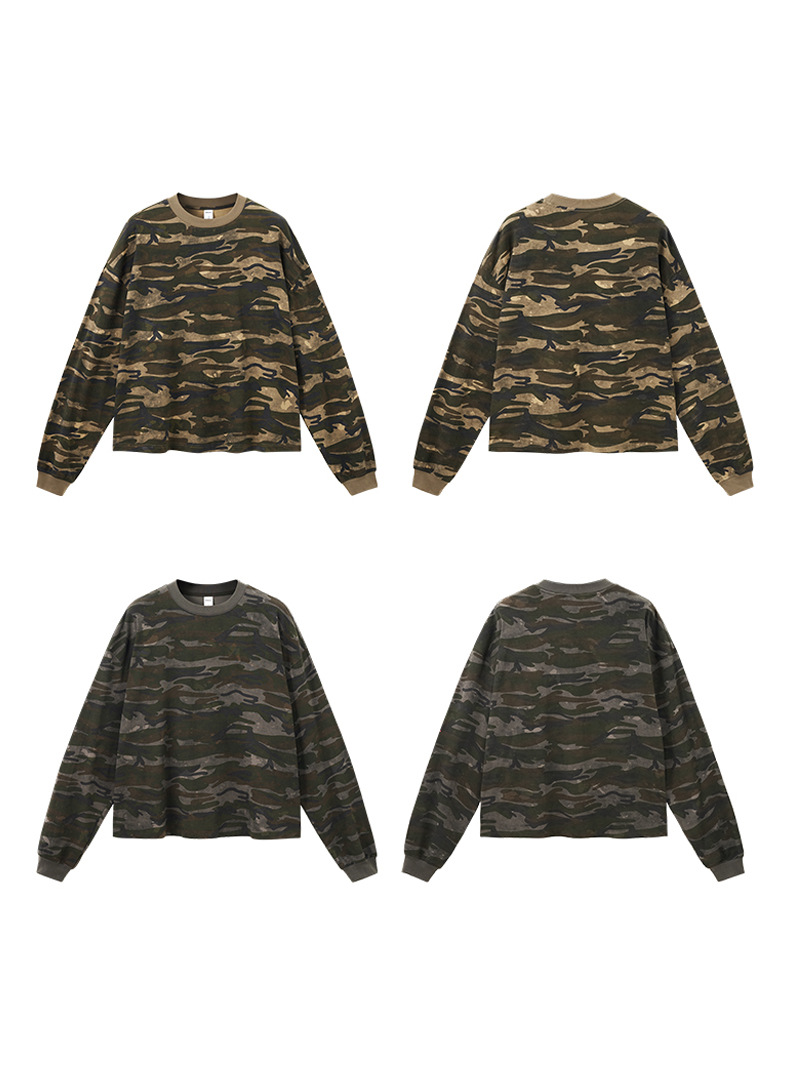 Inflation Camouflage Casual Versatile Crew Neck Long Sleeve