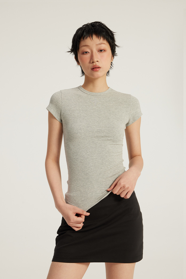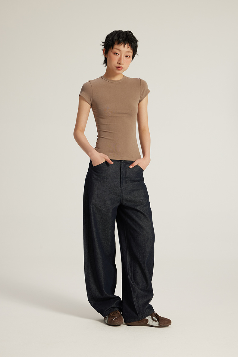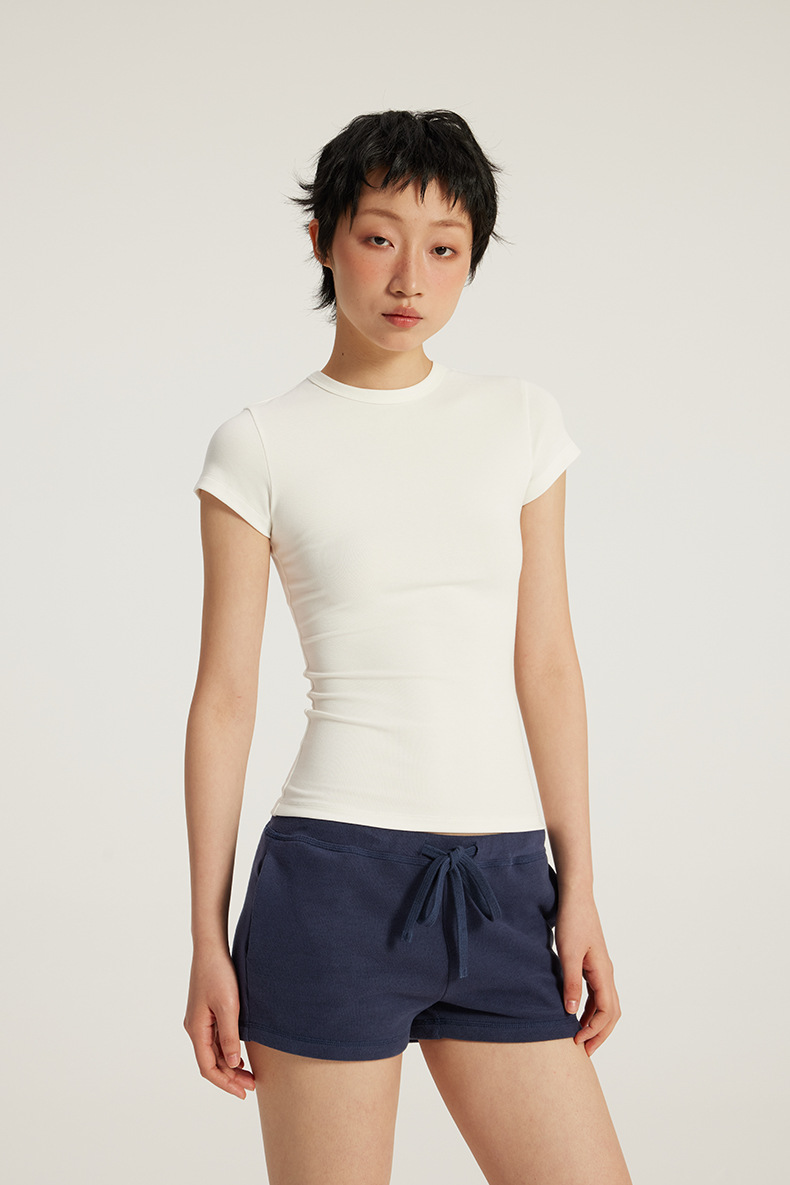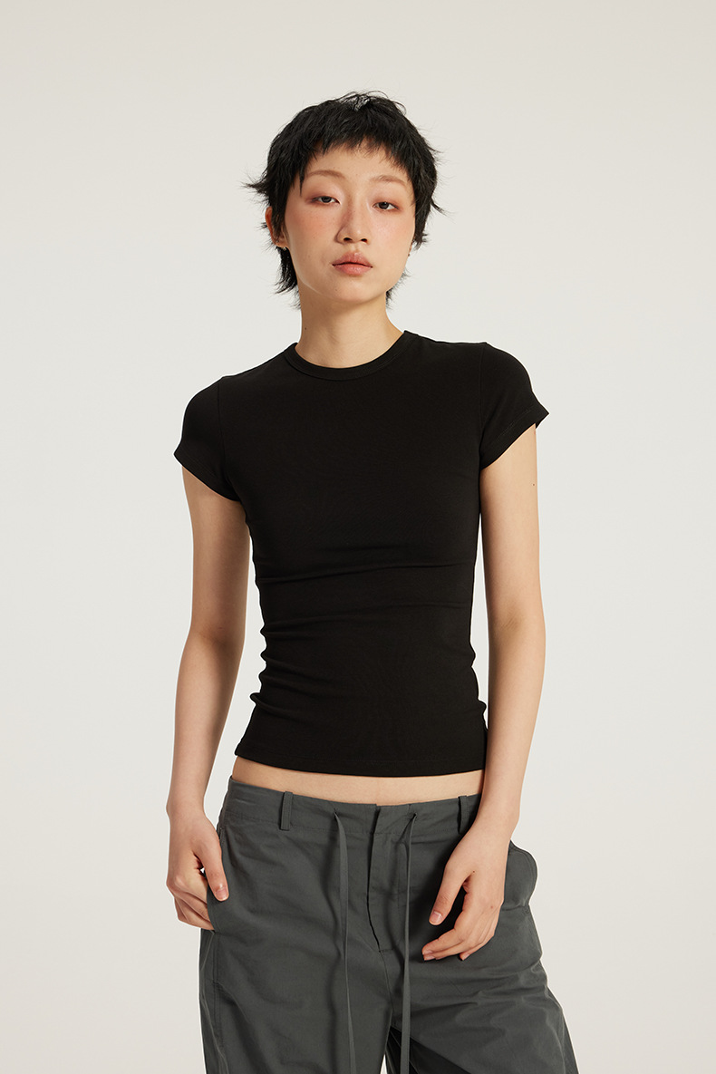 Inflation Crew Neck Straight Shoulder Spice Girl Waist TEE