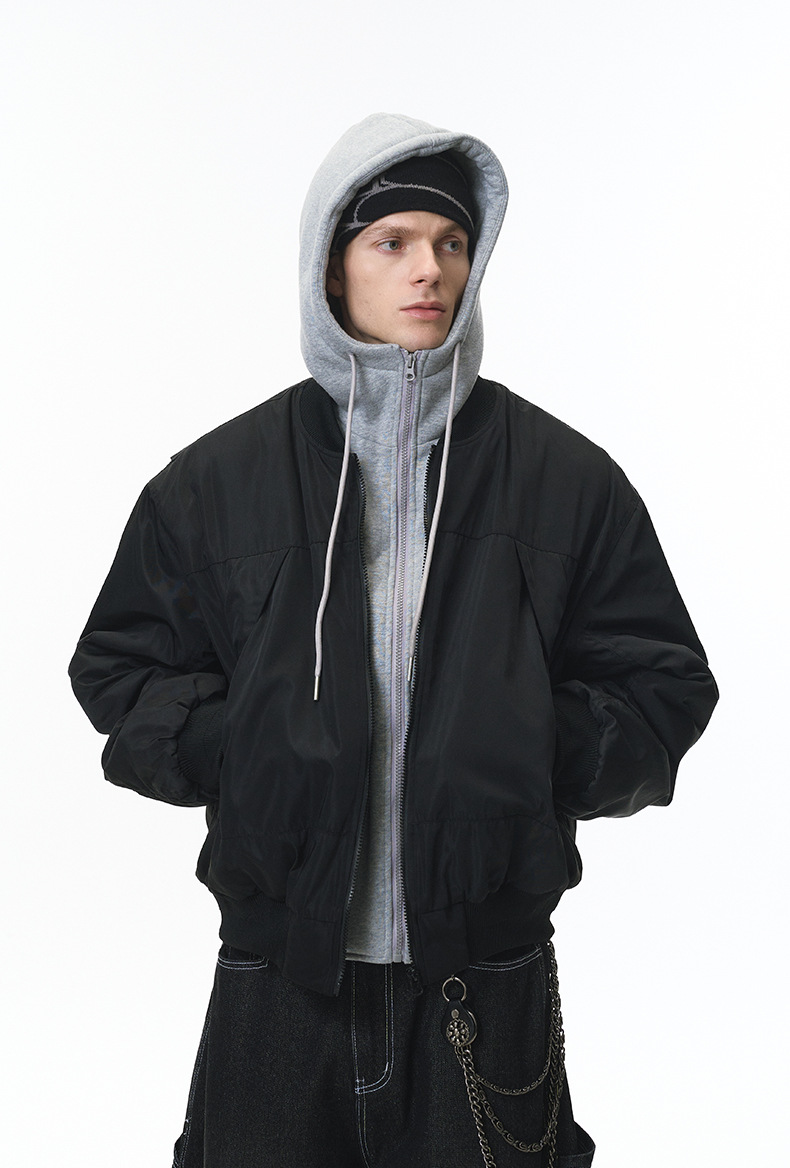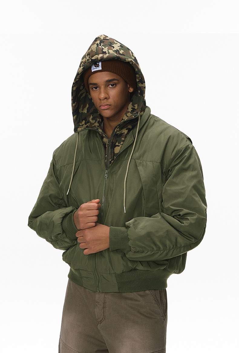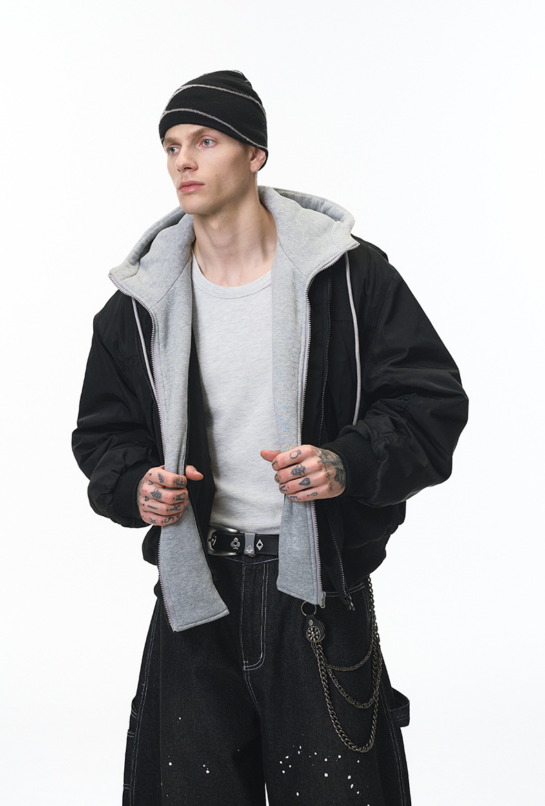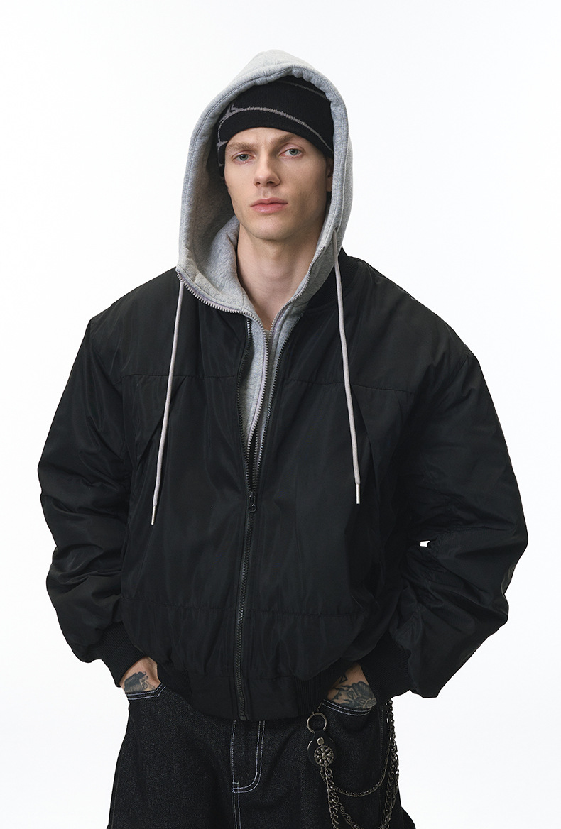 Inflation Removable Fake Two-piece Hooded Jacket
