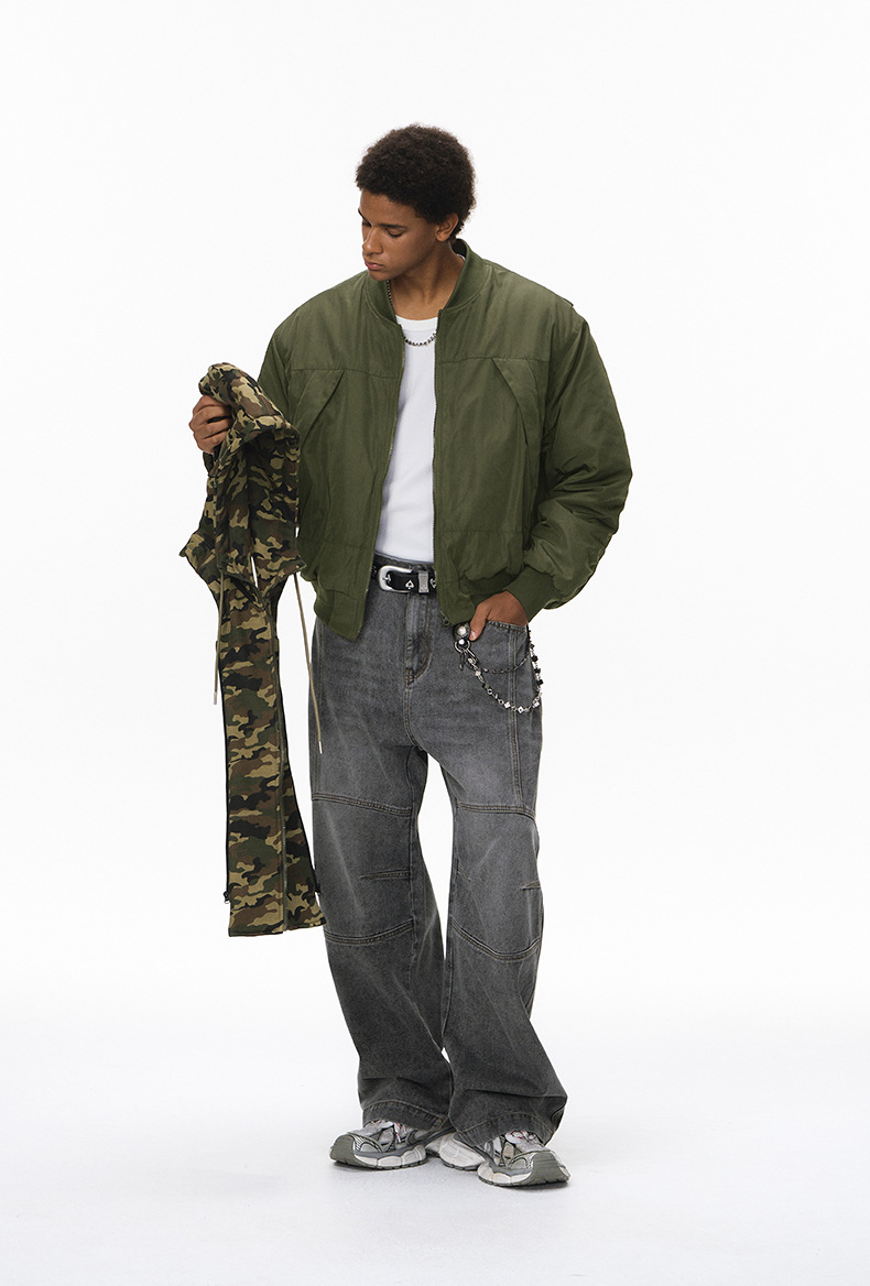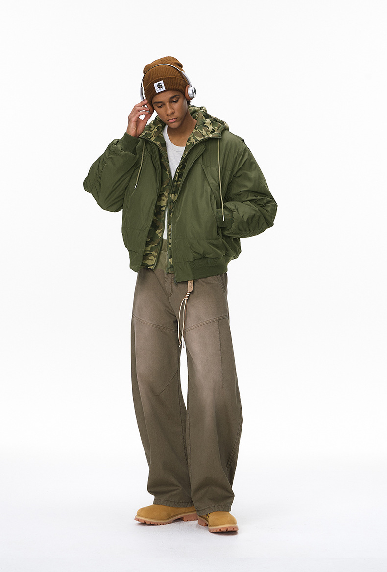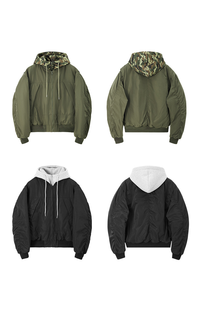 Inflation Removable Fake Two-piece Hooded Jacket