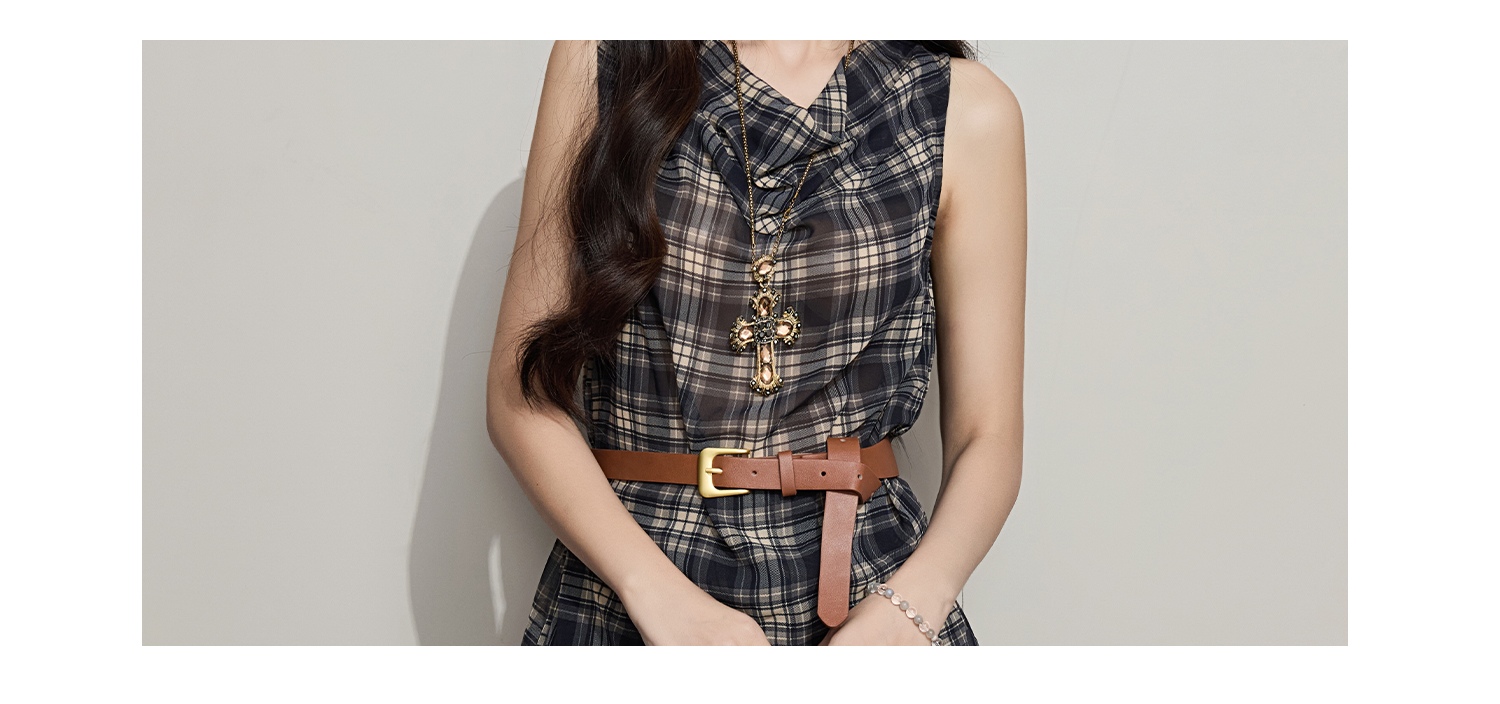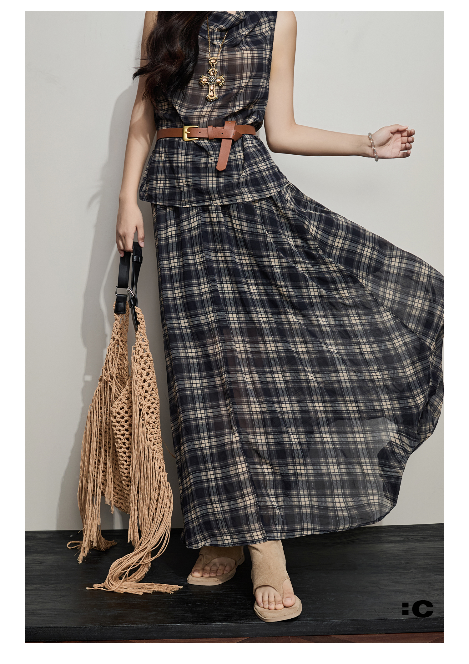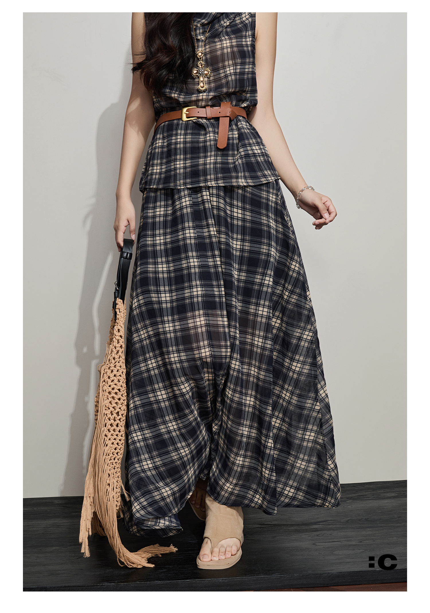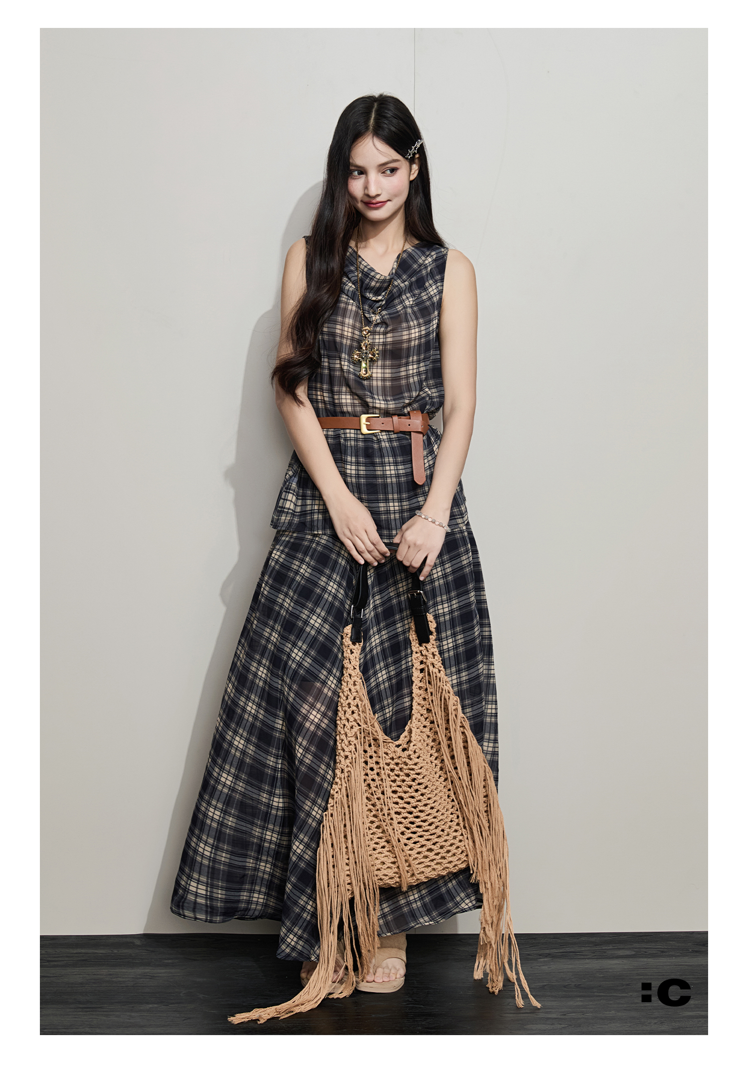 IT: CHOCOOLATE Check Neck Top High Waist Skirt Two-piece Set