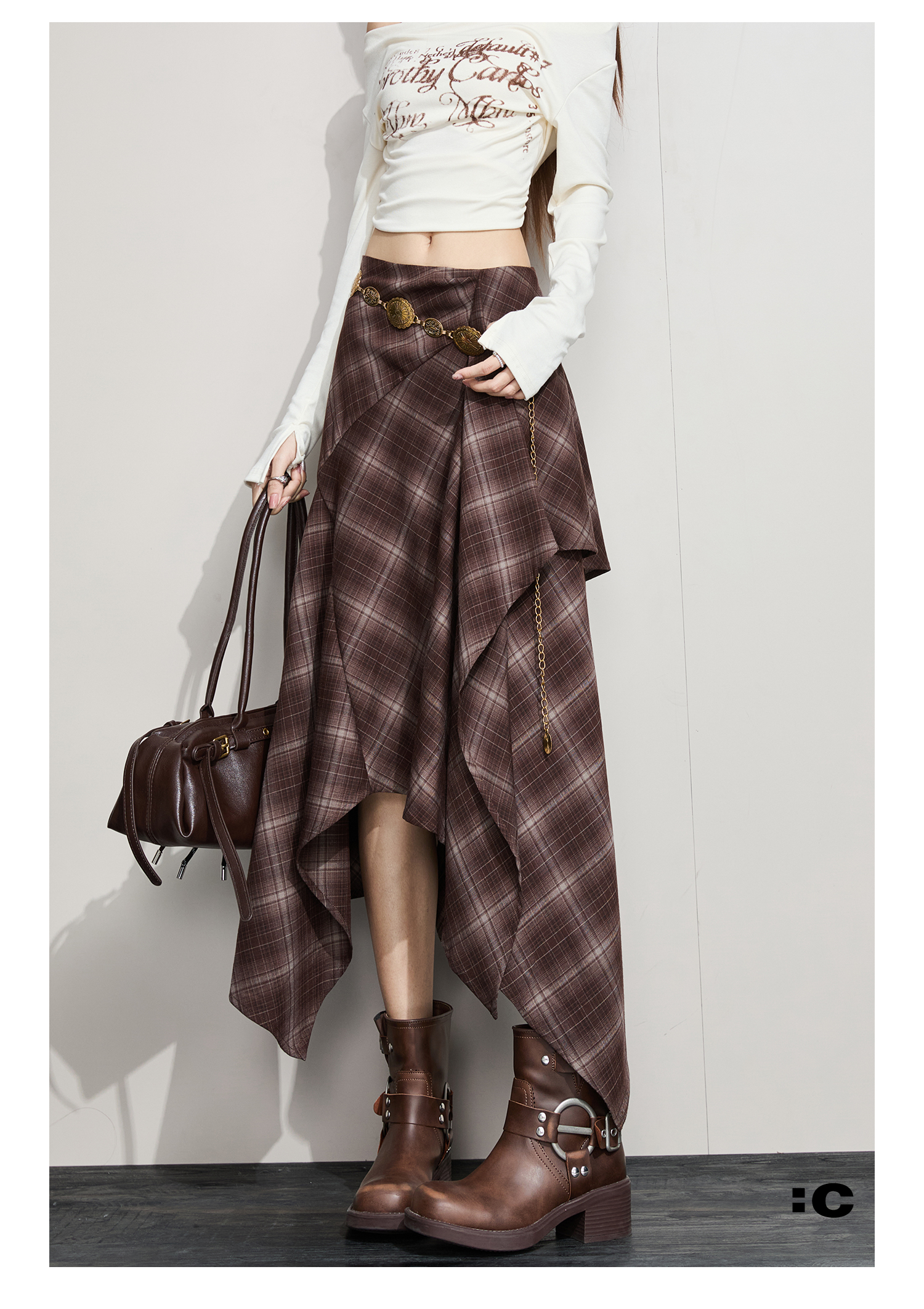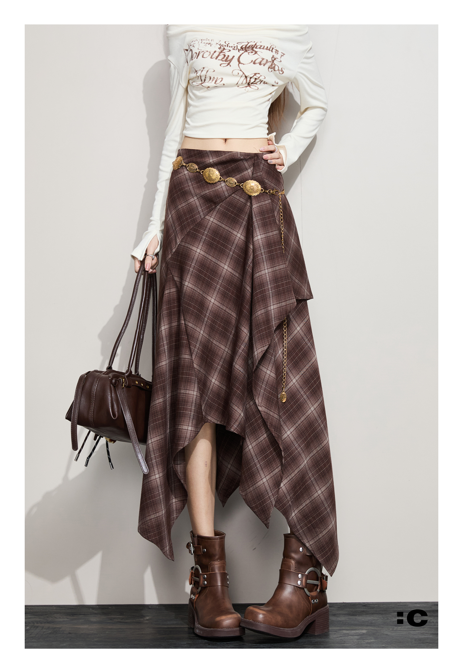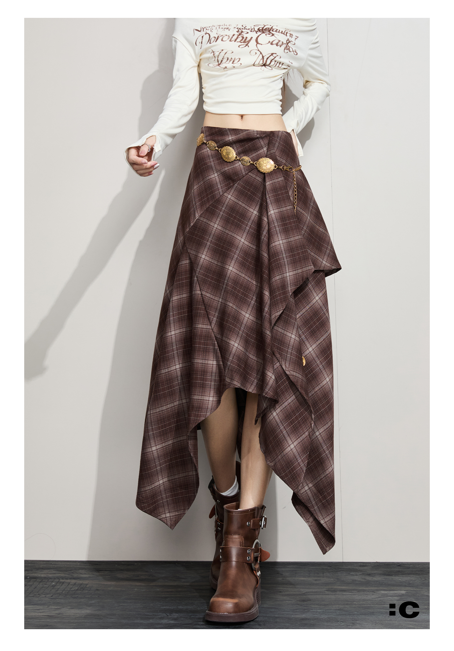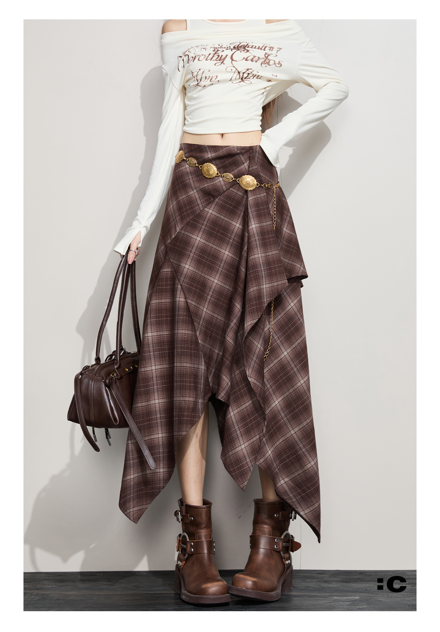 IT: CHOCOOLATE Vintage Plaid Irregular Skirt