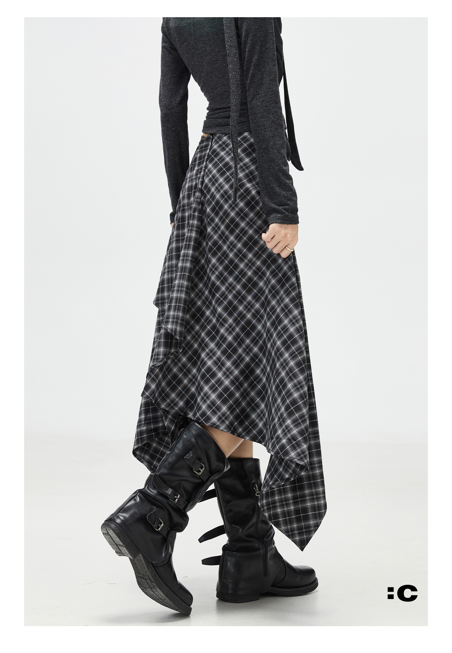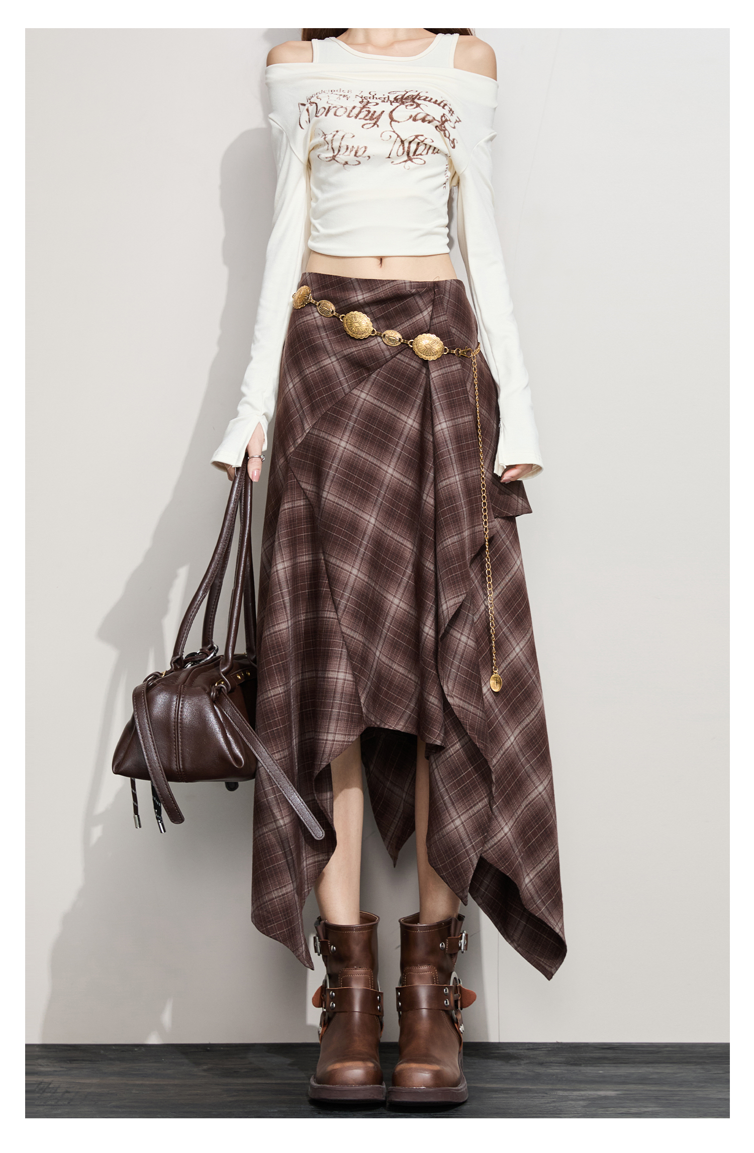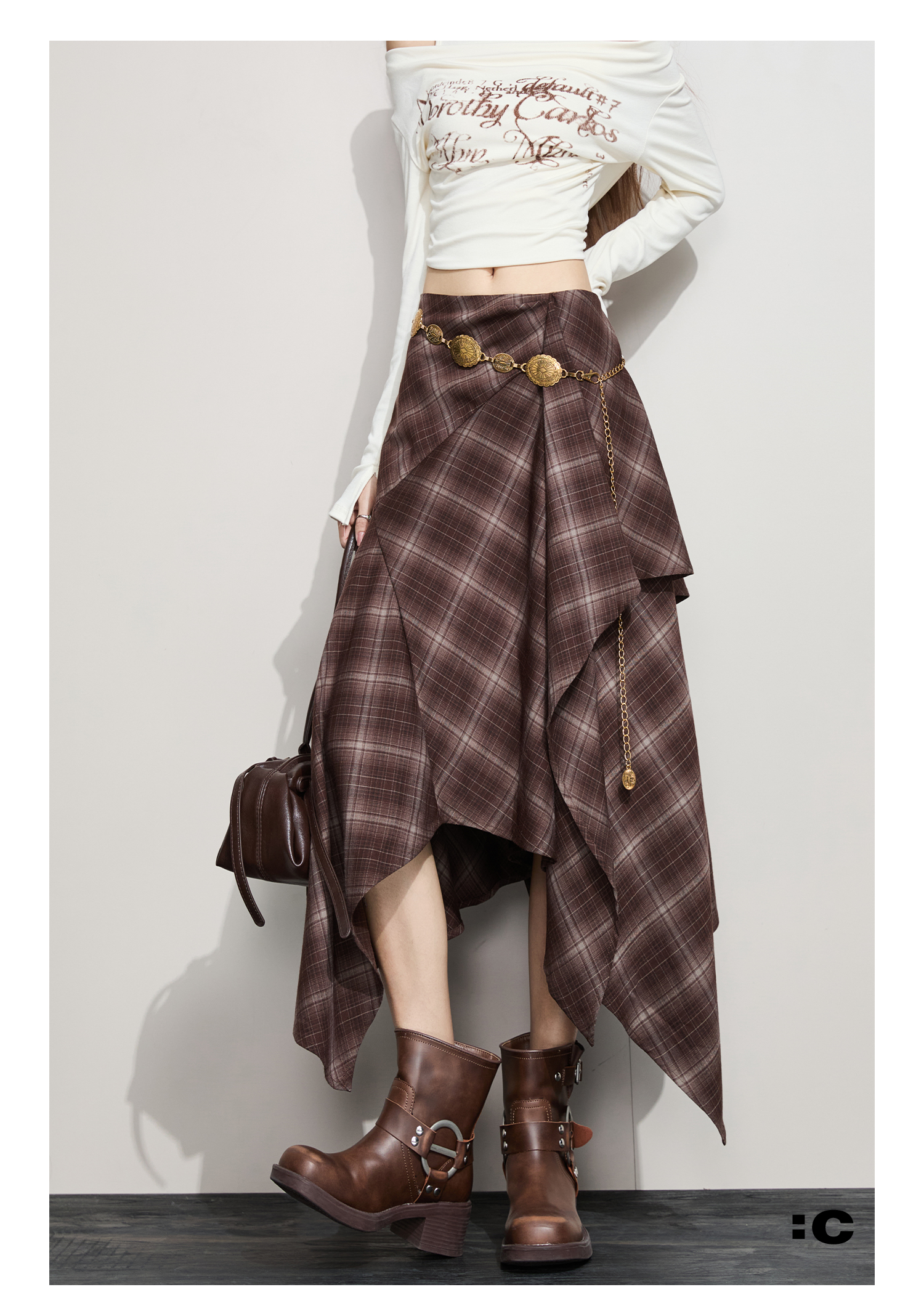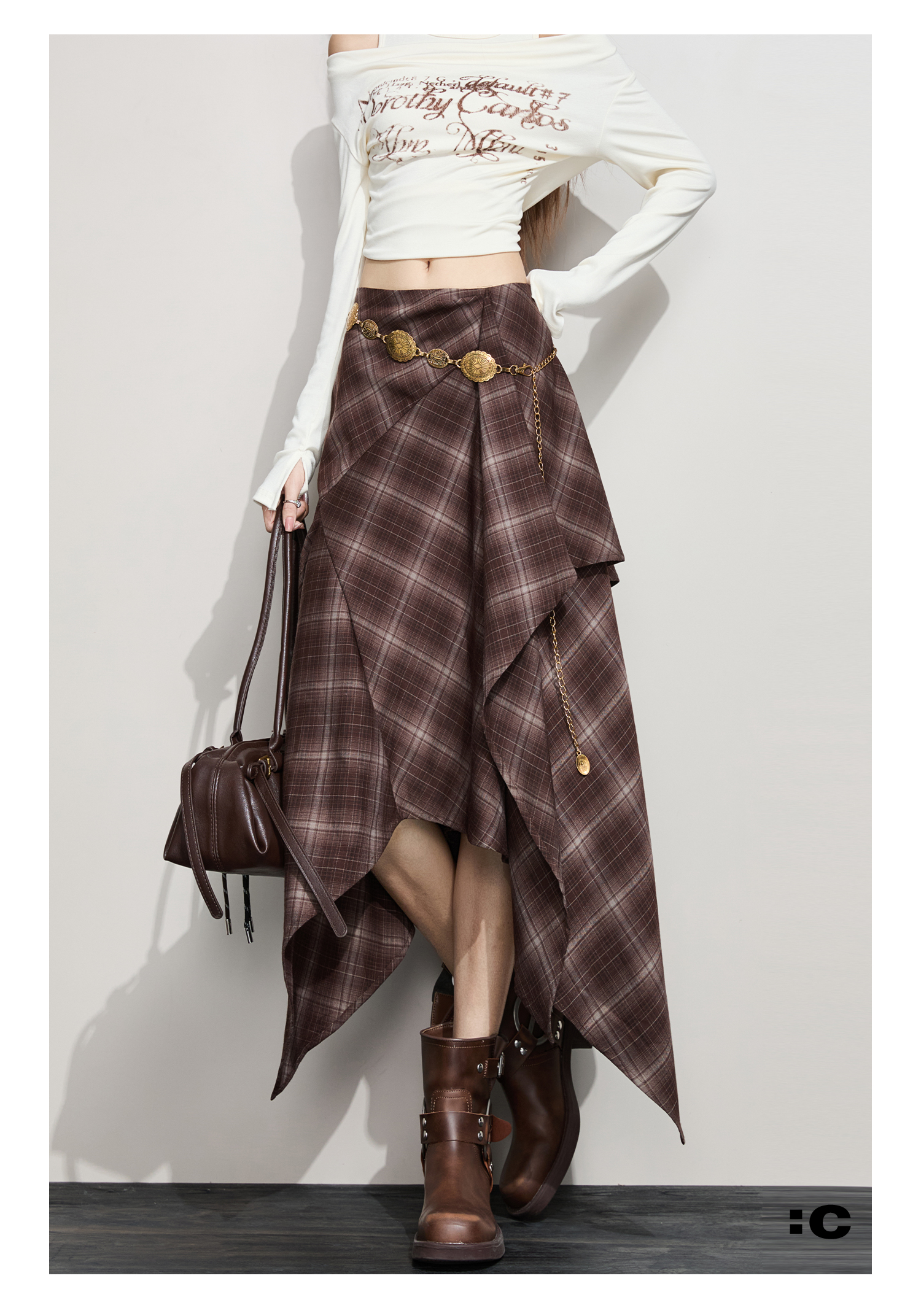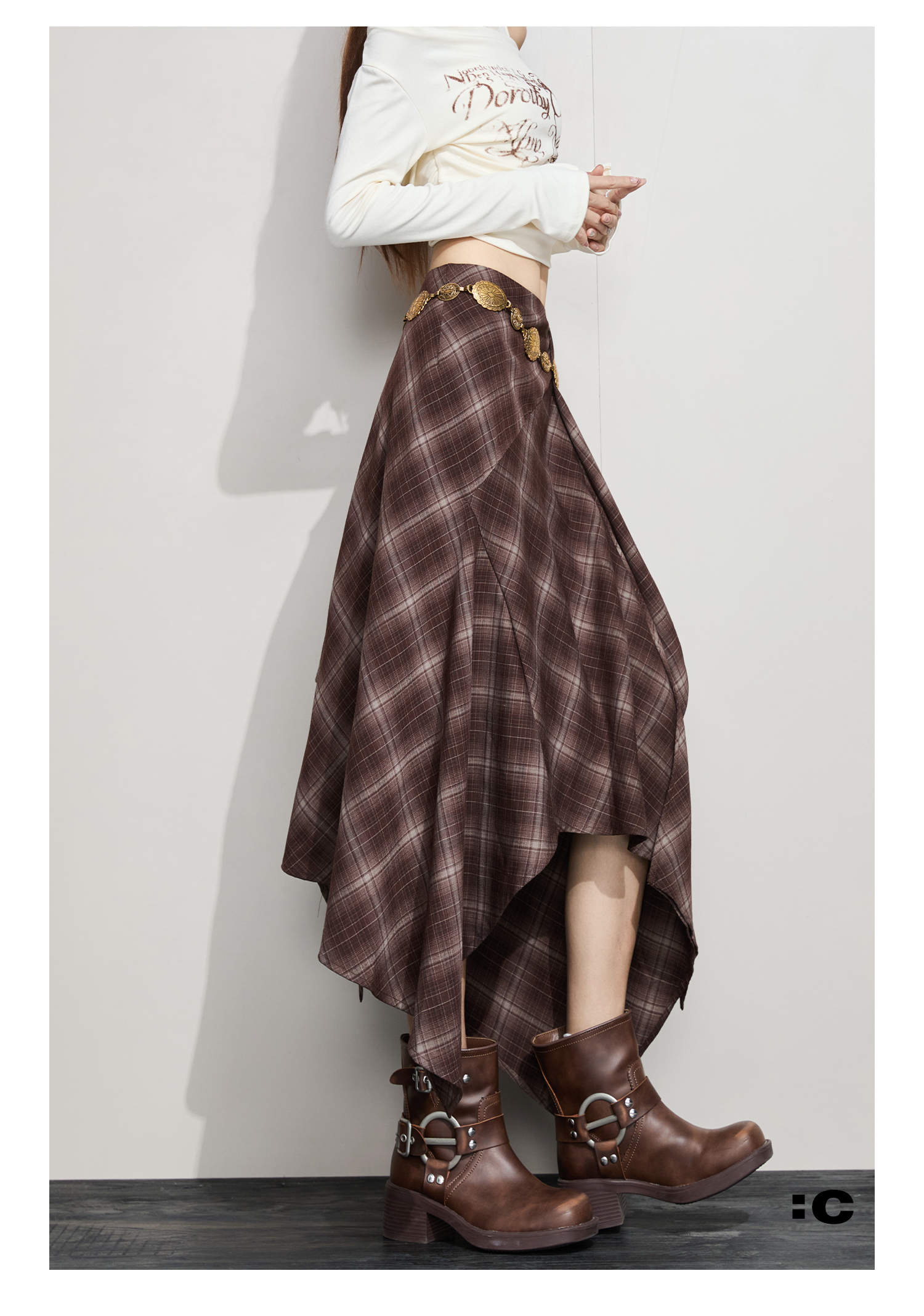 IT: CHOCOOLATE Vintage Plaid Irregular Skirt