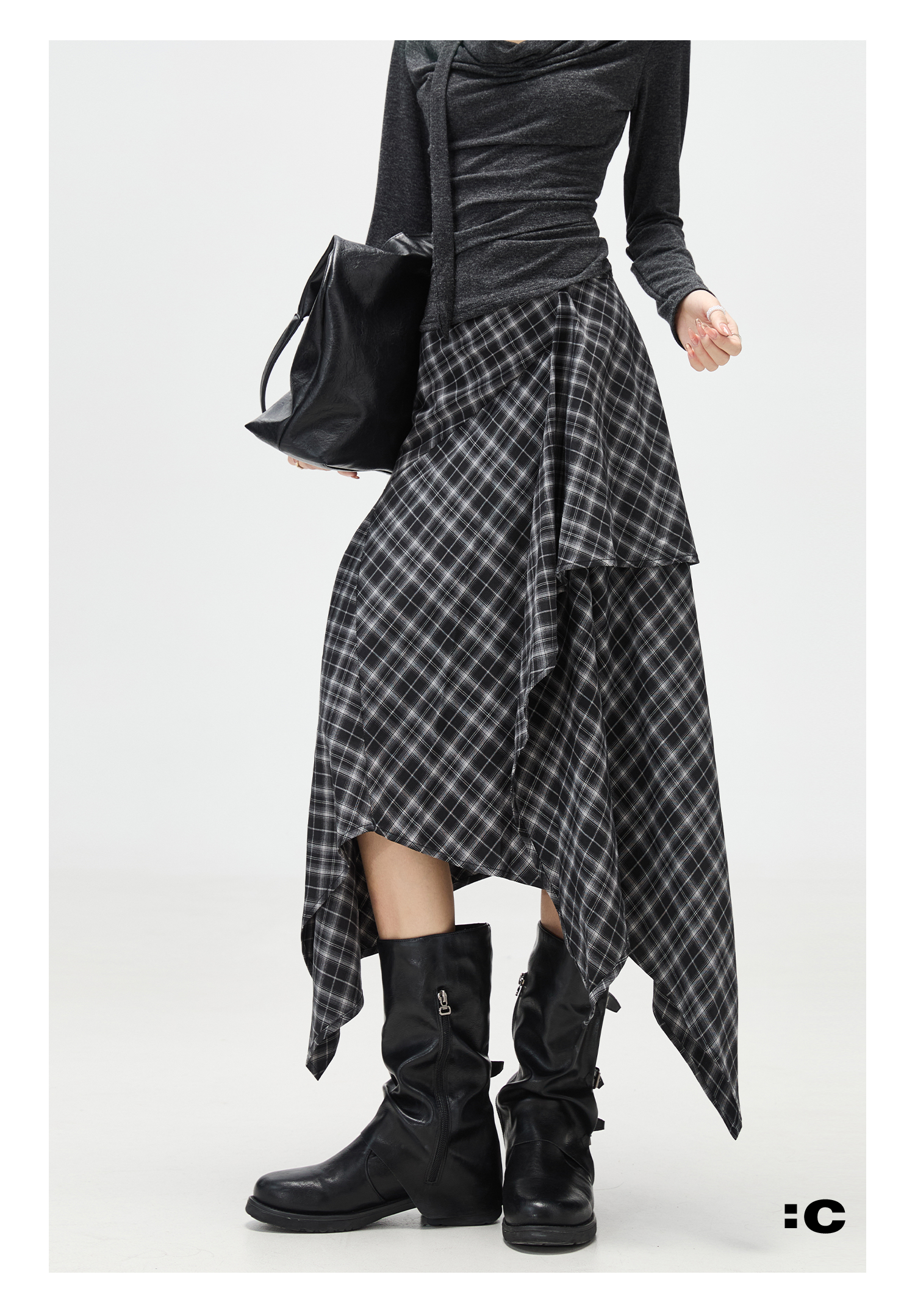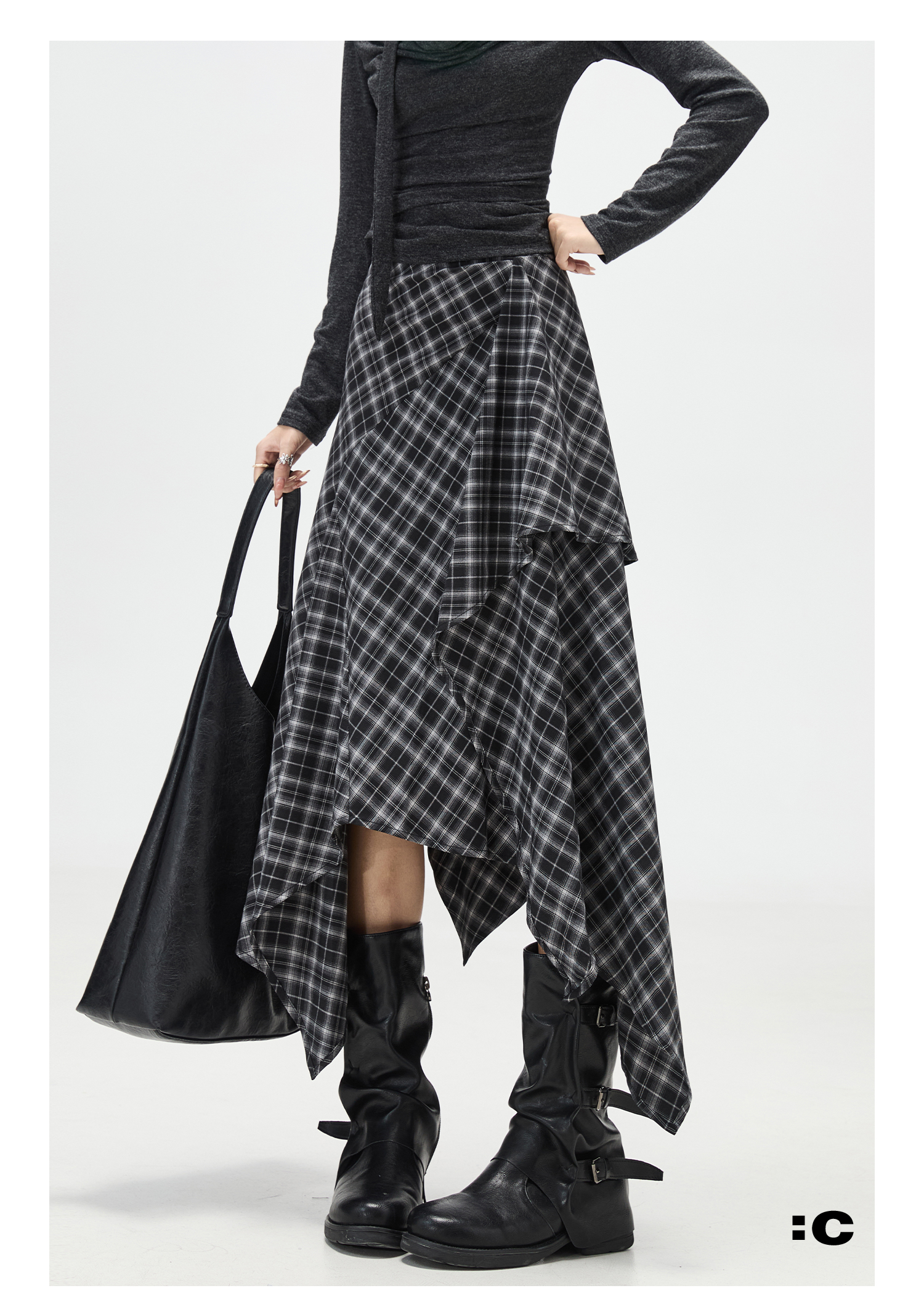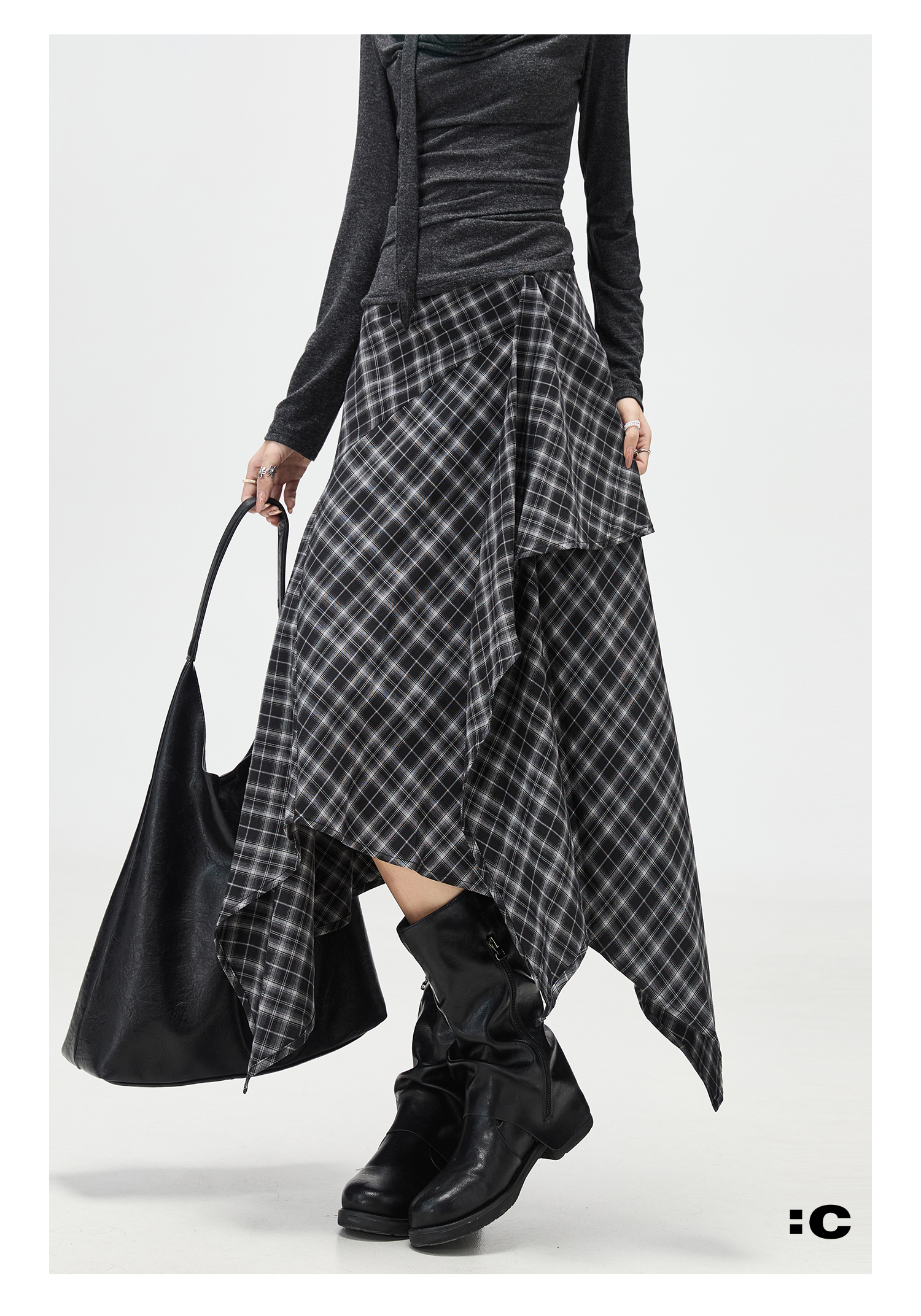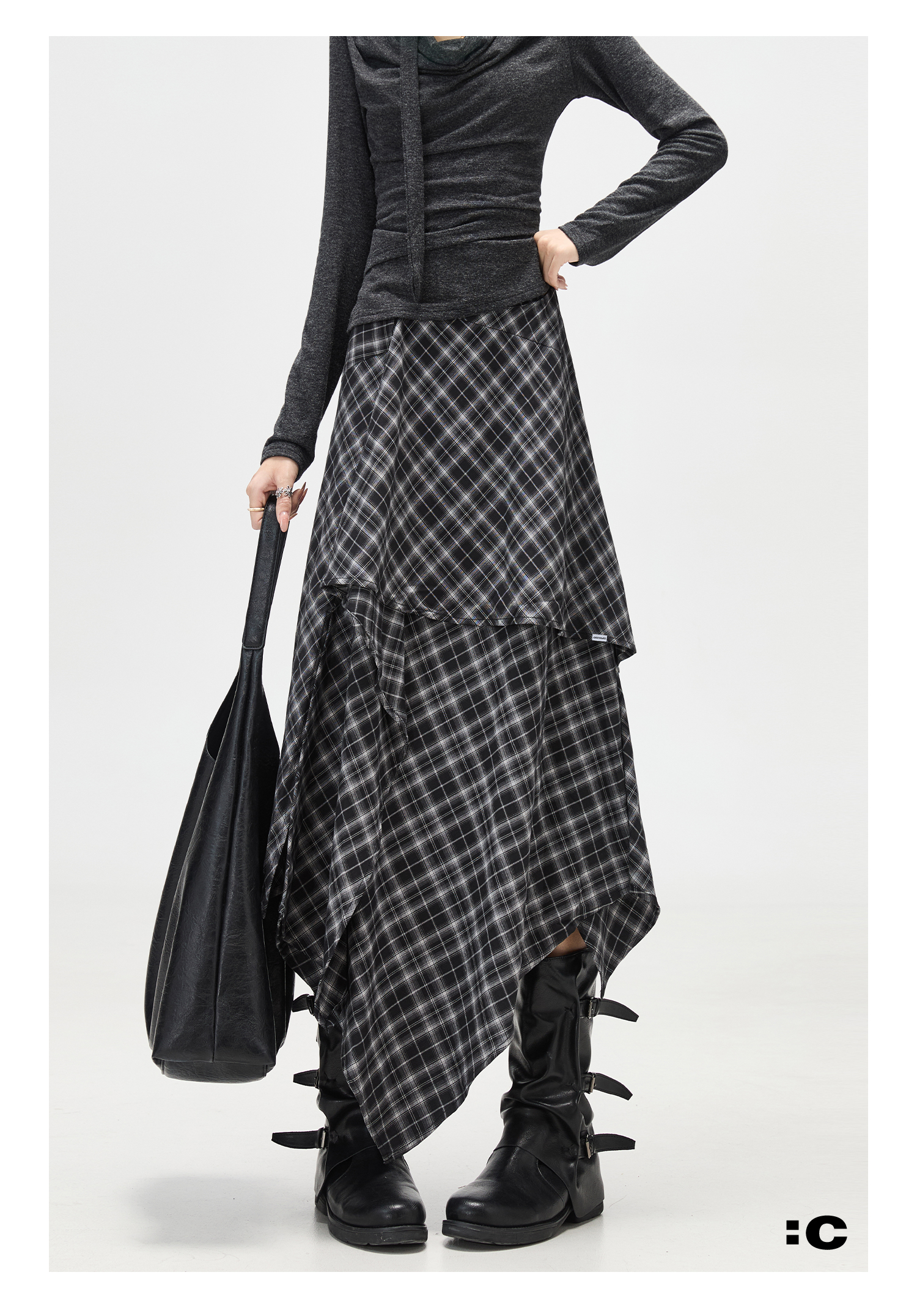 IT: CHOCOOLATE Vintage Plaid Irregular Skirt