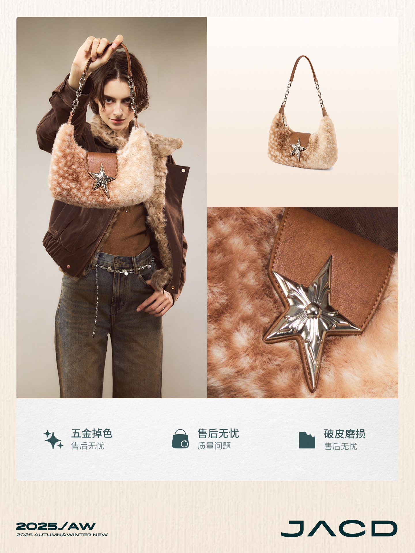 JACD Plush Shoulder Crossbody Handbag