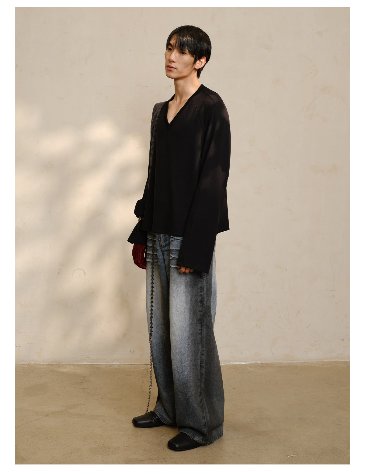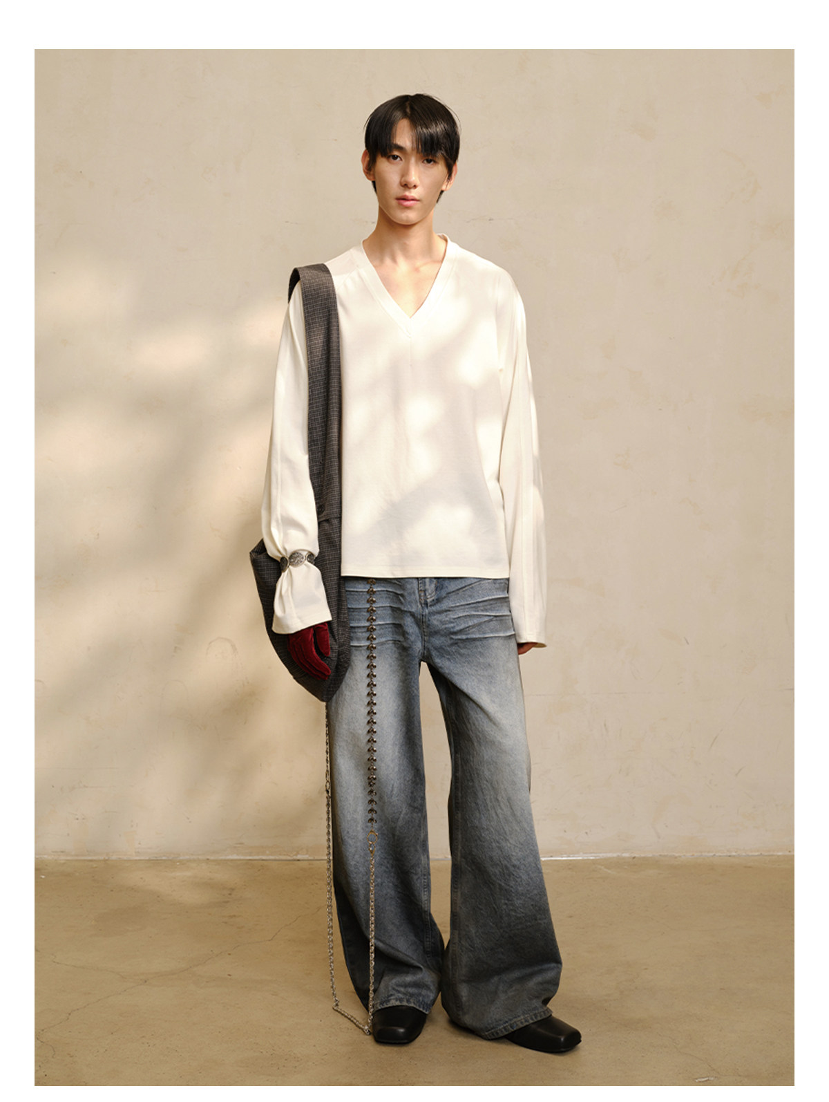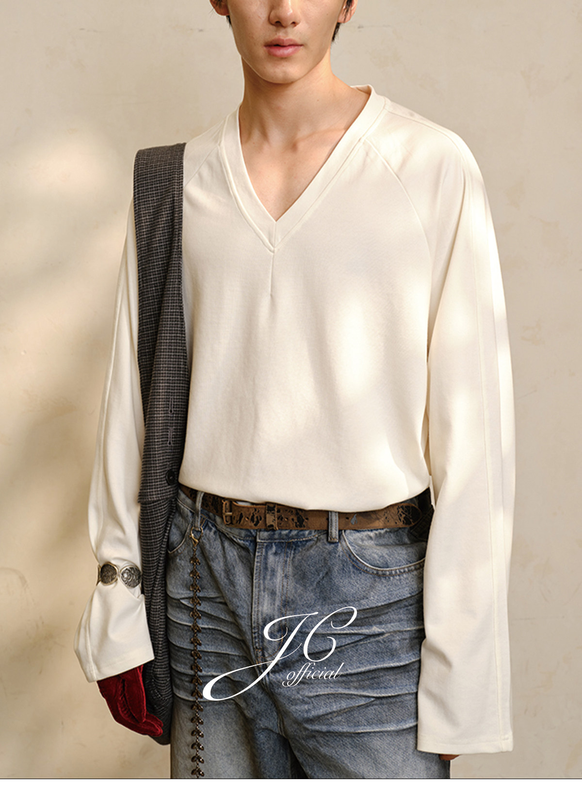 JCAESAR Big V-neck Daily Lazy Long Sleeves