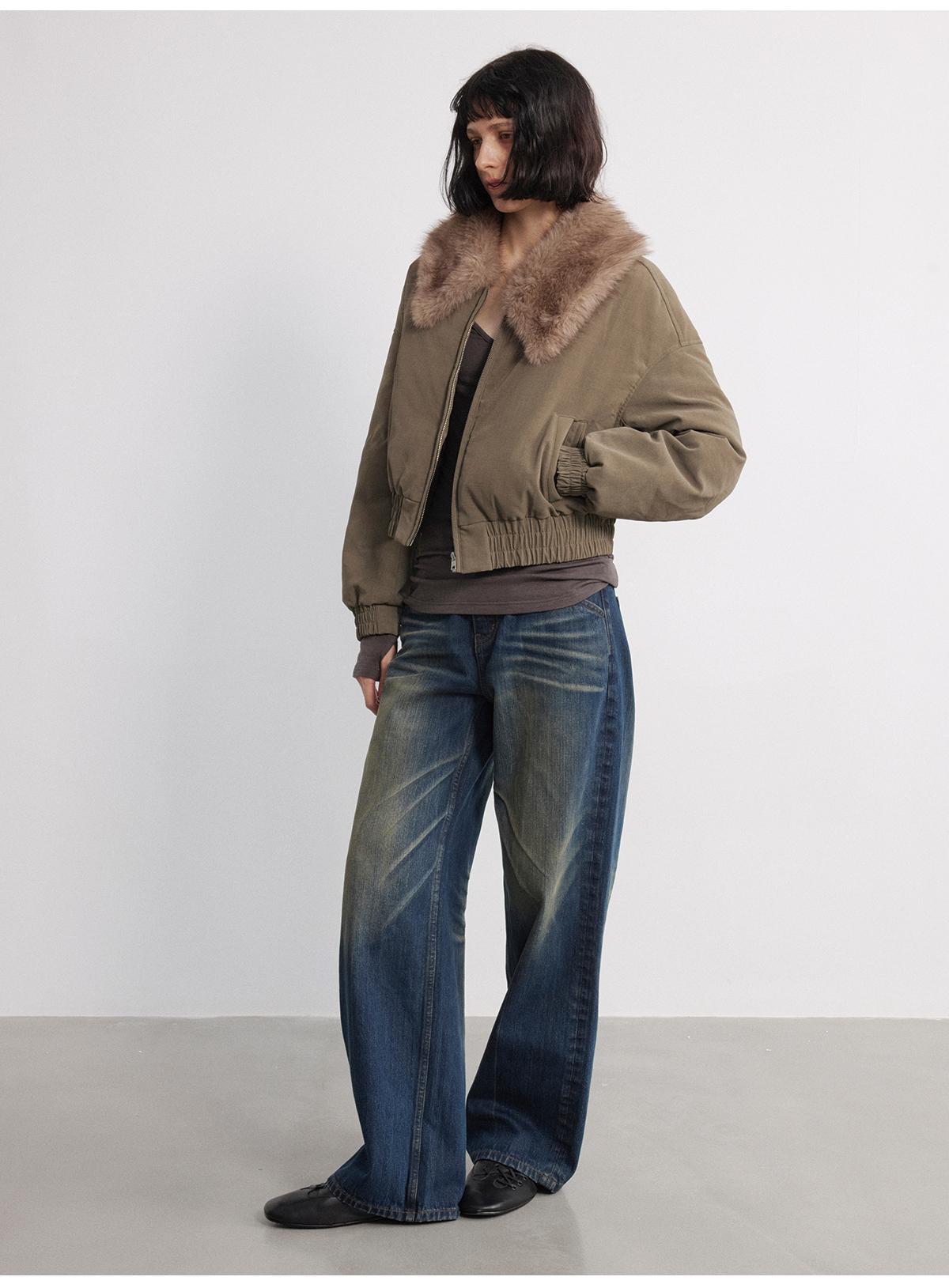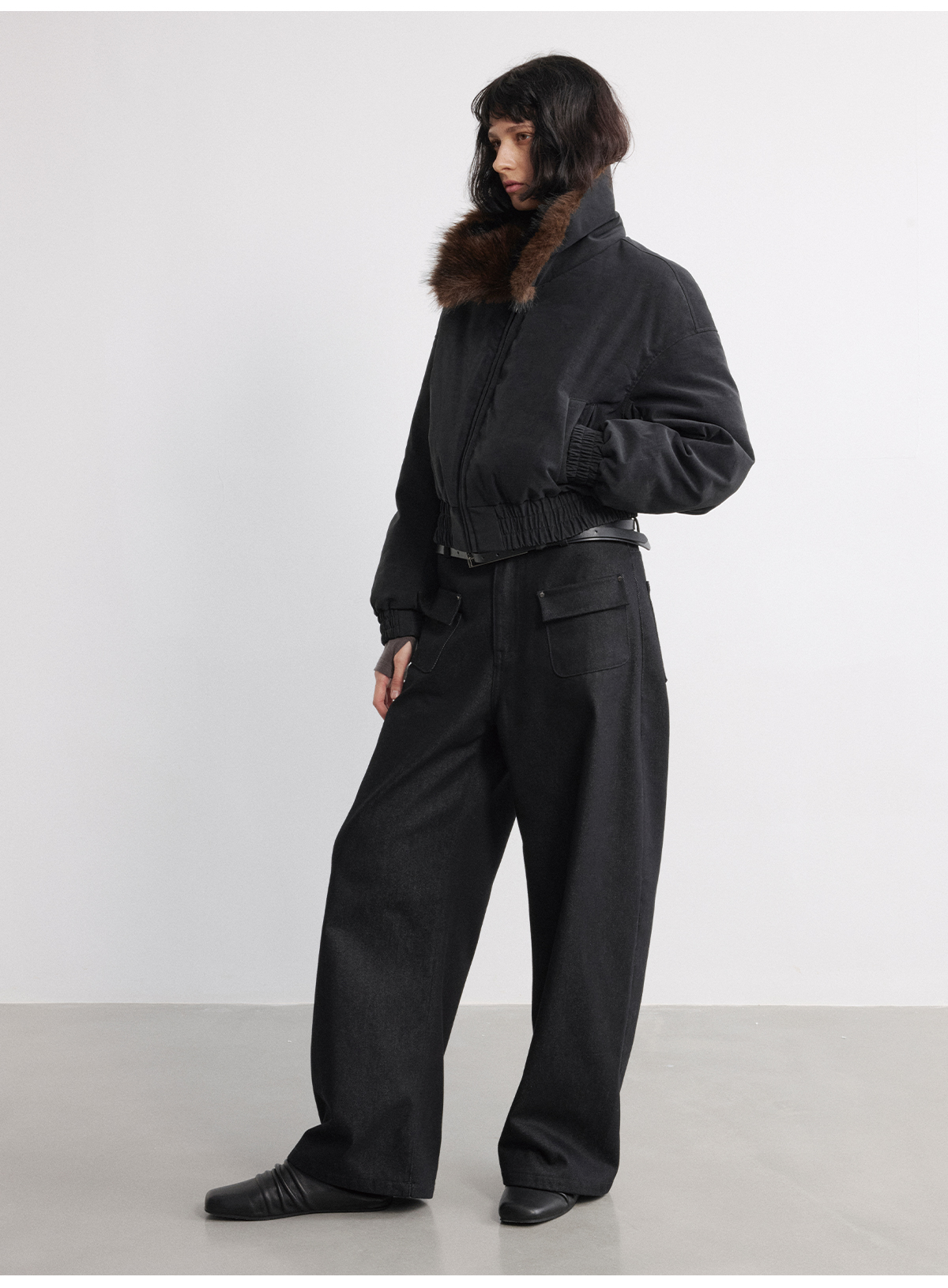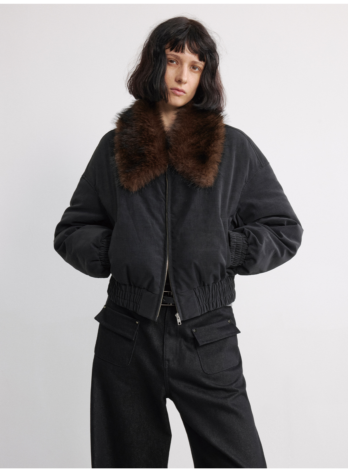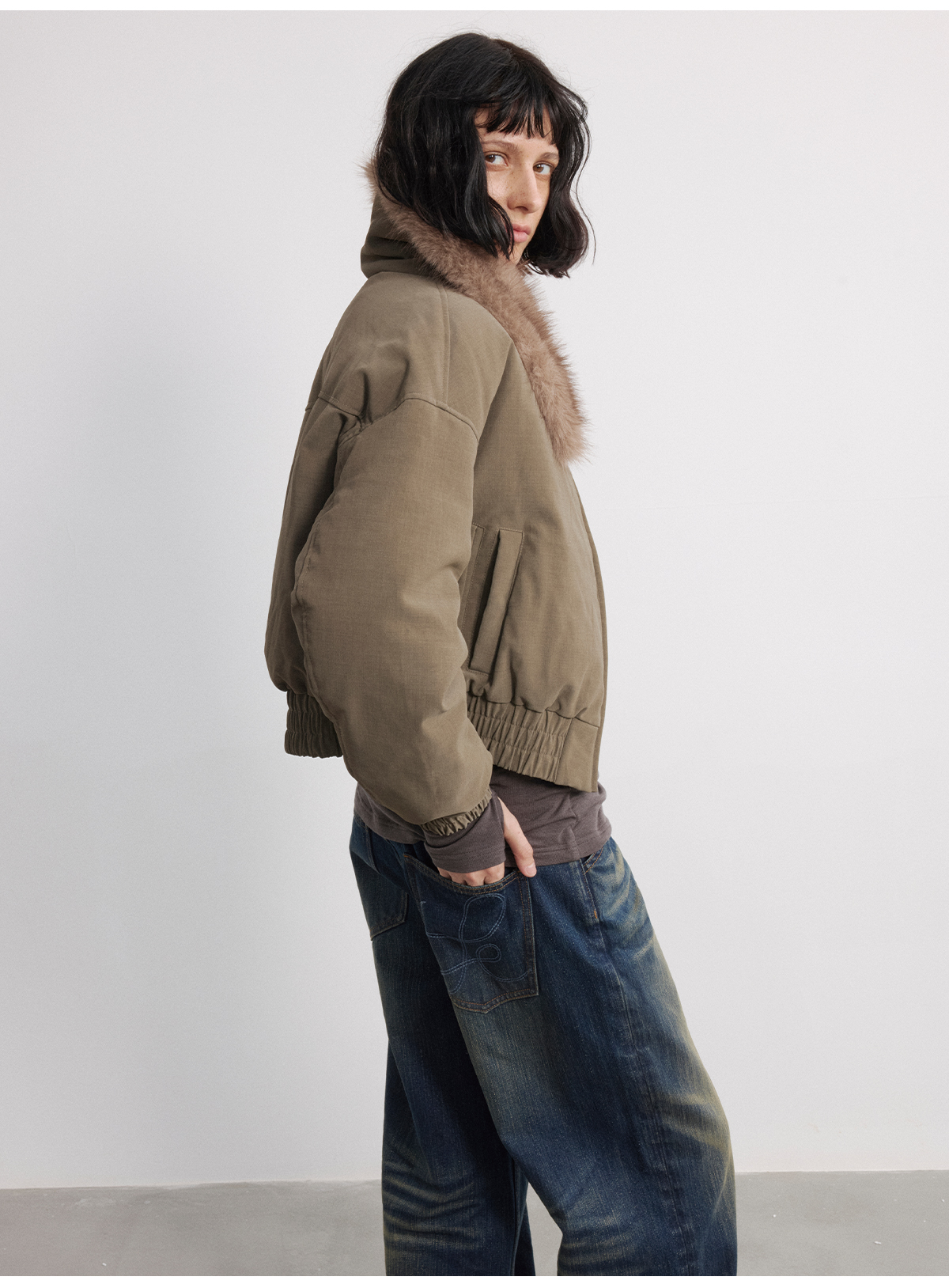 JCAESAR WOMEN Fur Collar Made Old Down Short Jacket