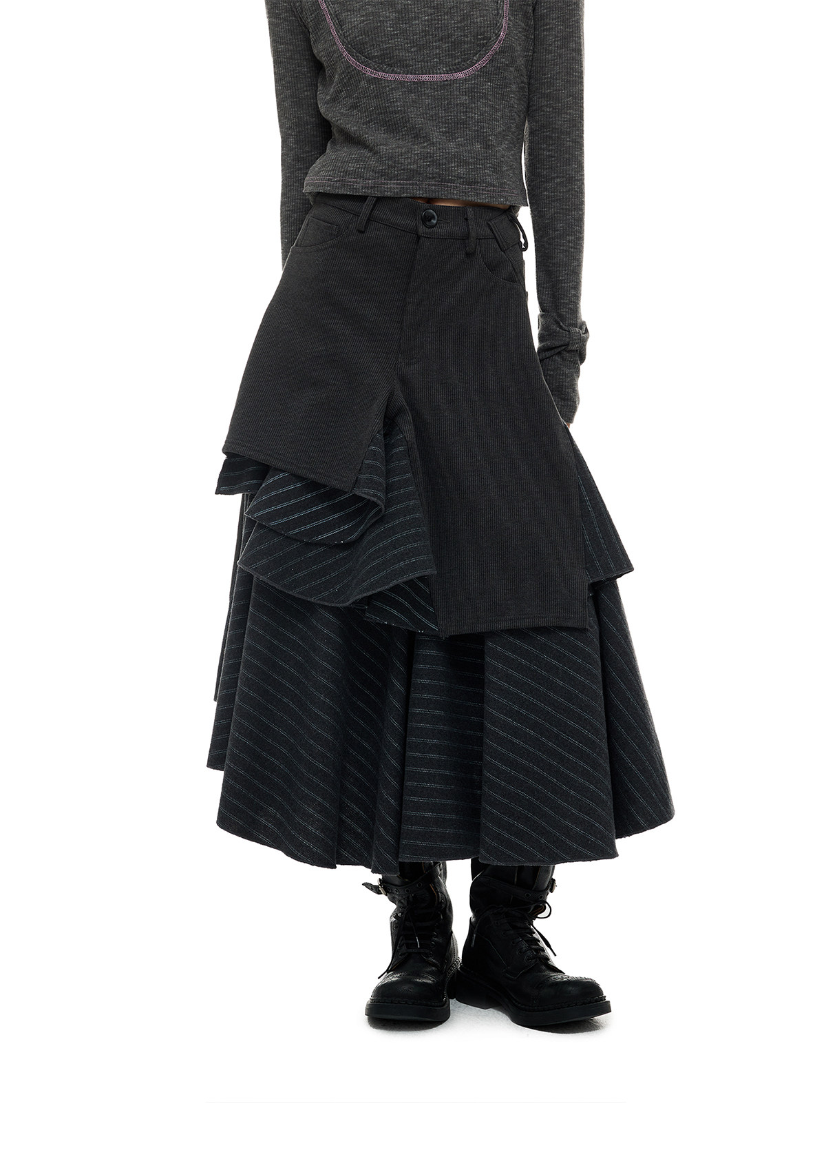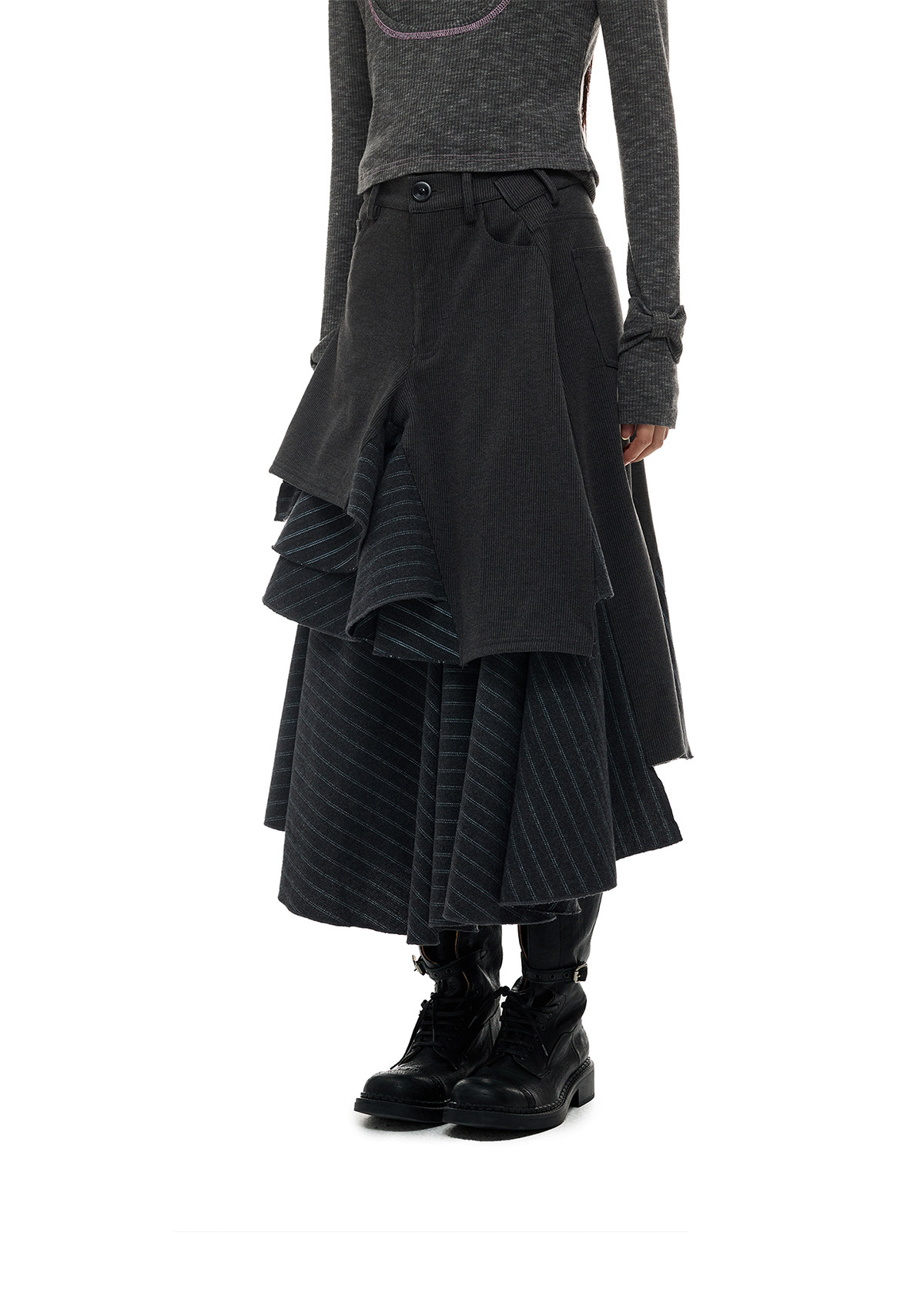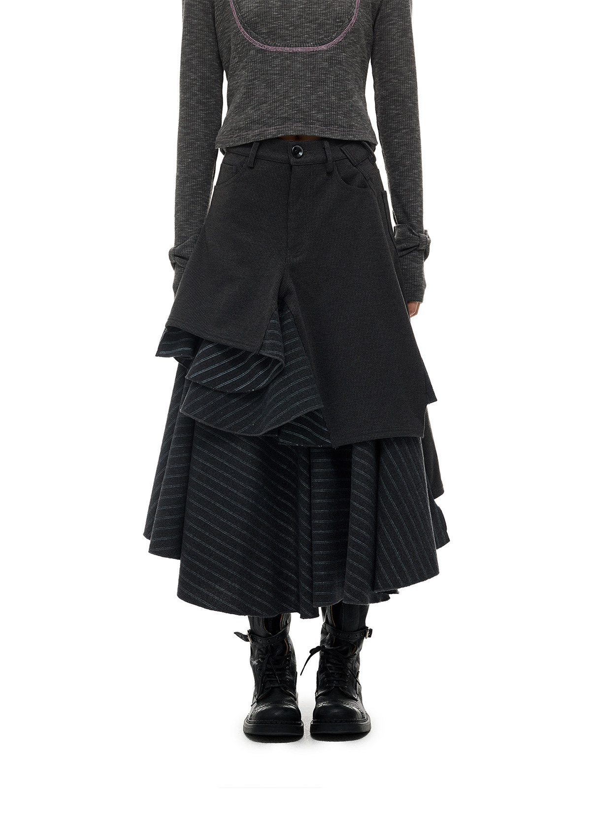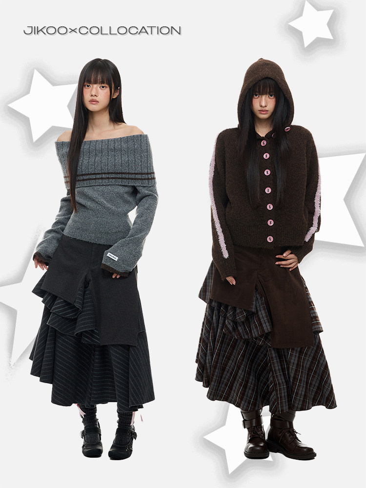 JIKOO Asymmetrical Splicing Striped A-shaped Skirt