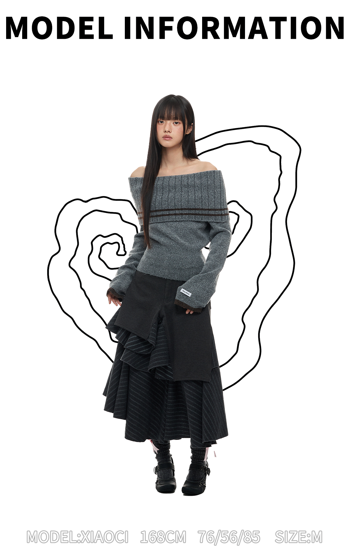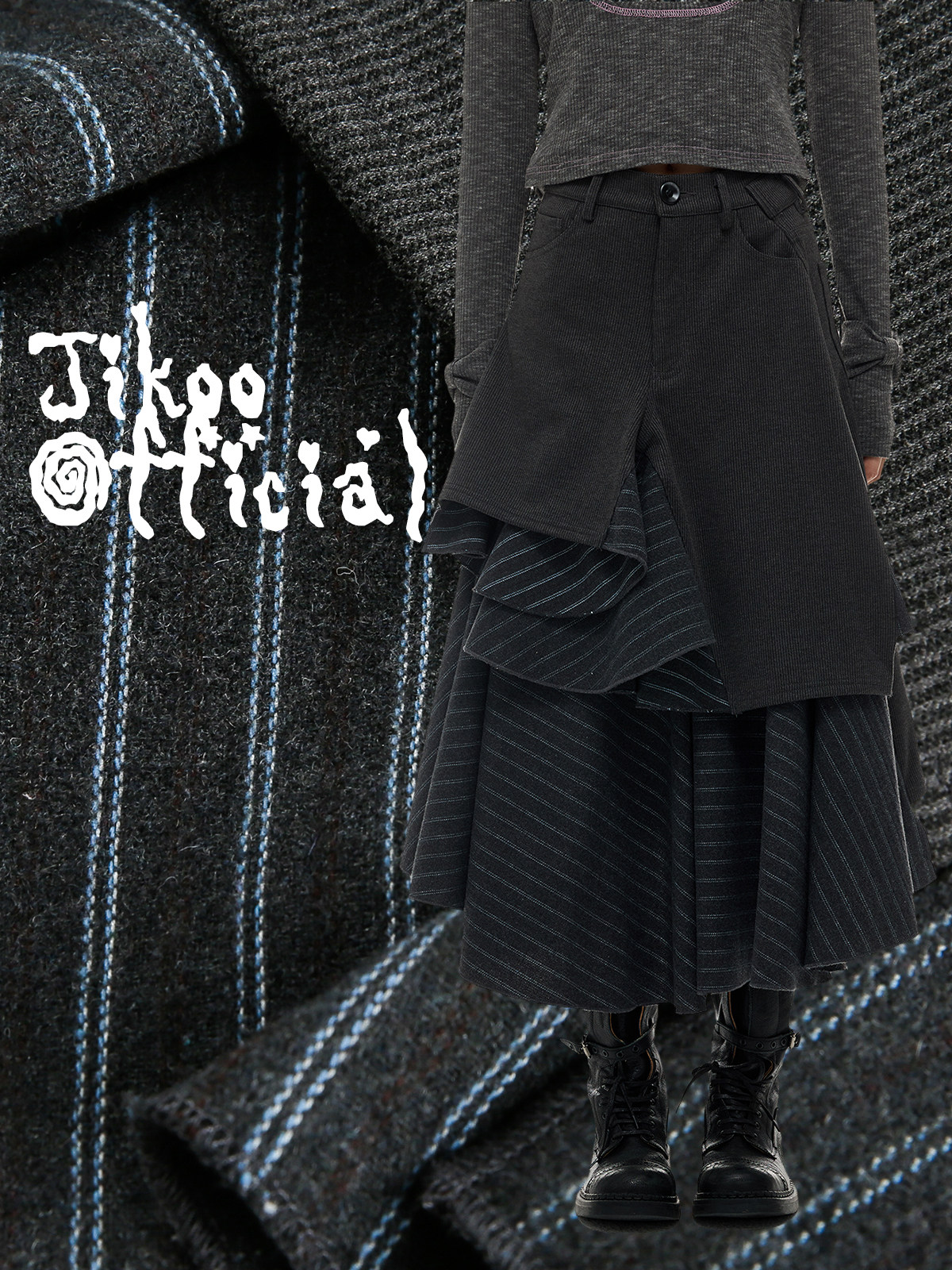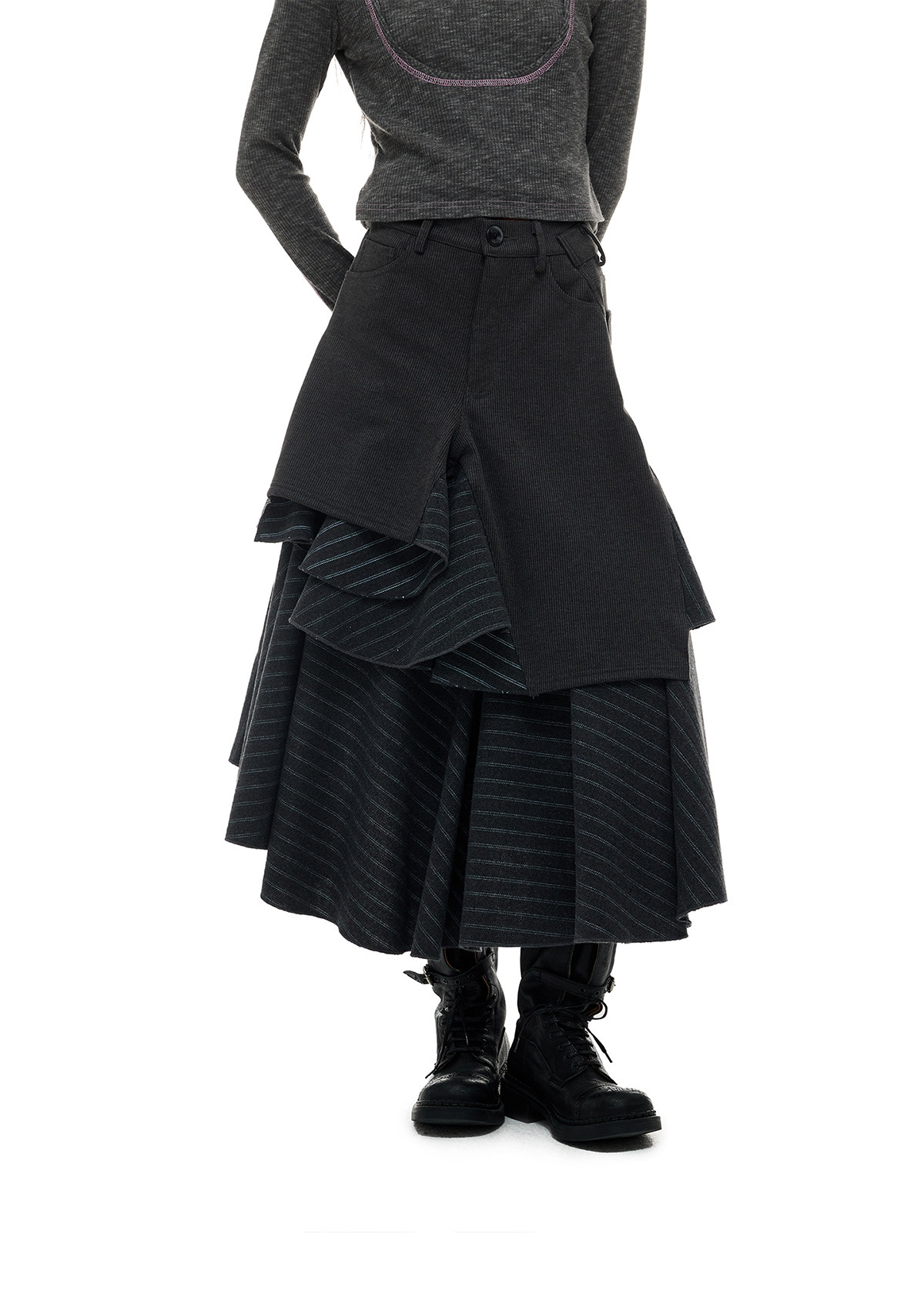 JIKOO Asymmetrical Splicing Striped A-shaped Skirt