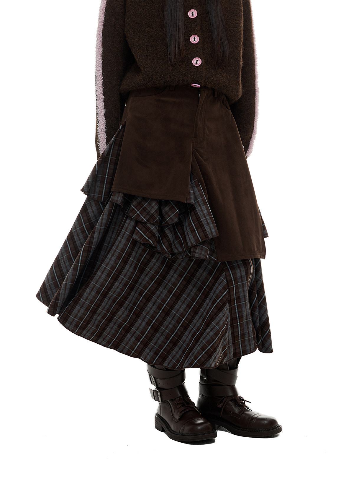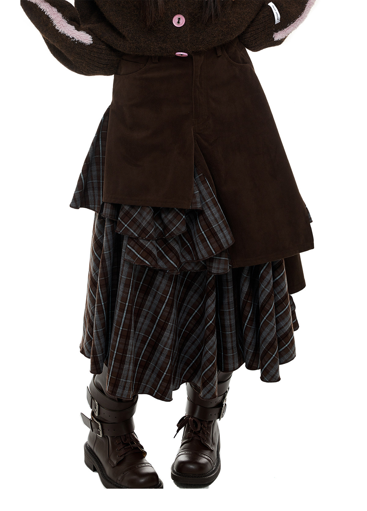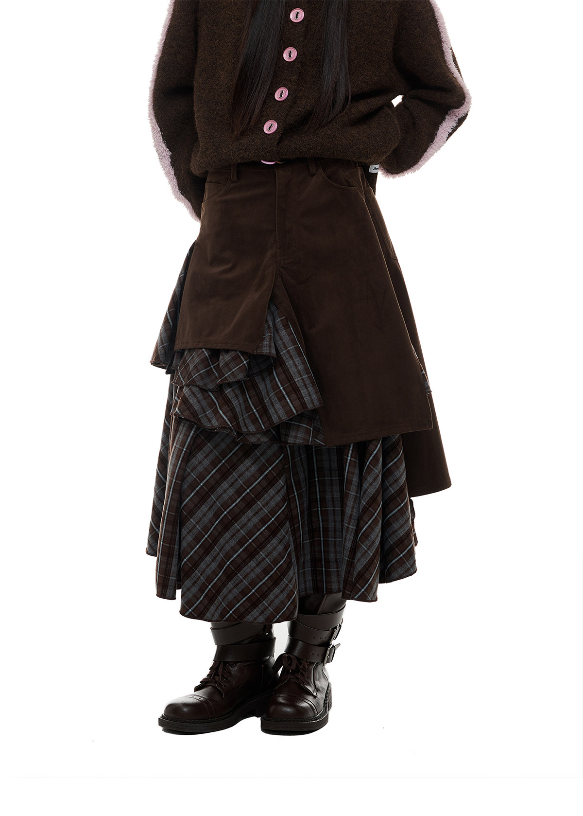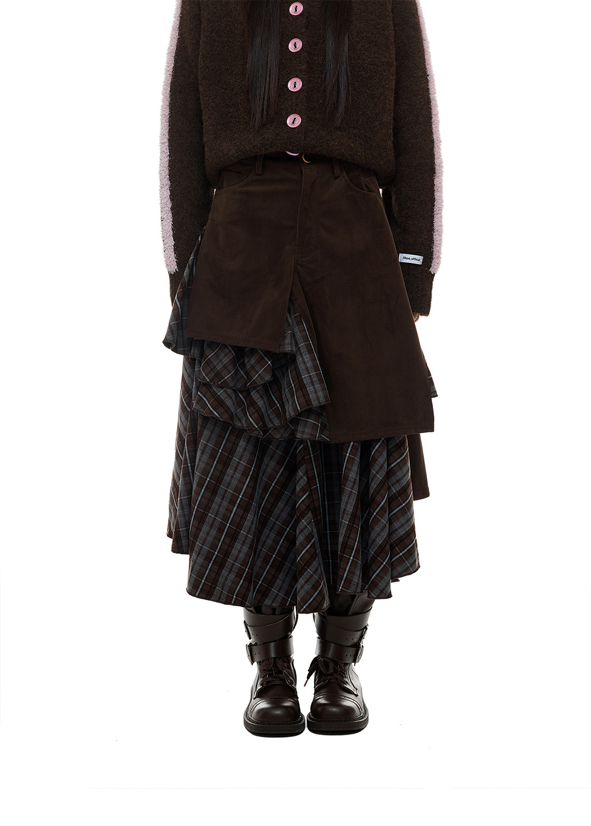 JIKOO Asymmetrical Splicing Striped A-shaped Skirt