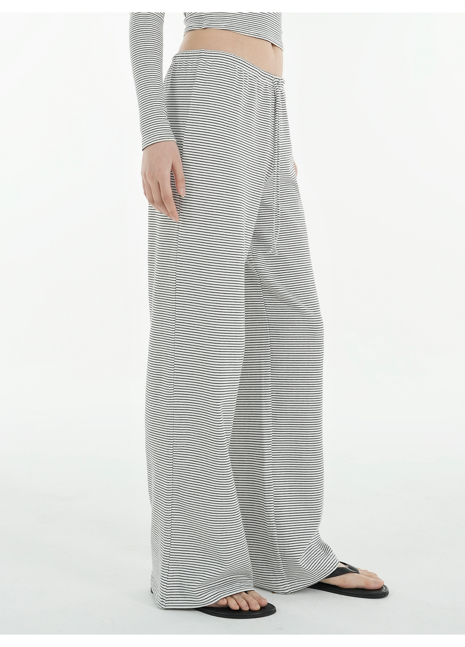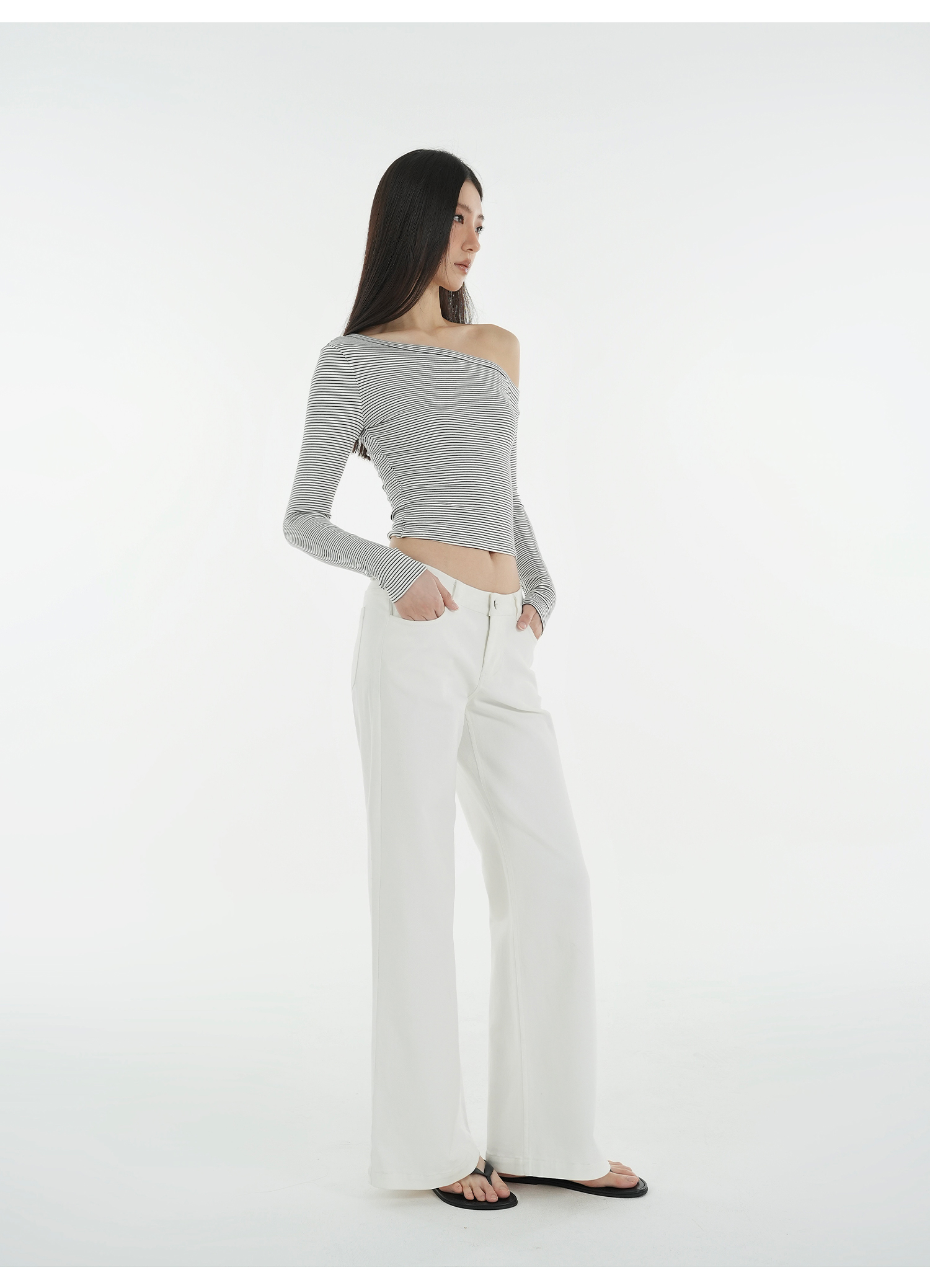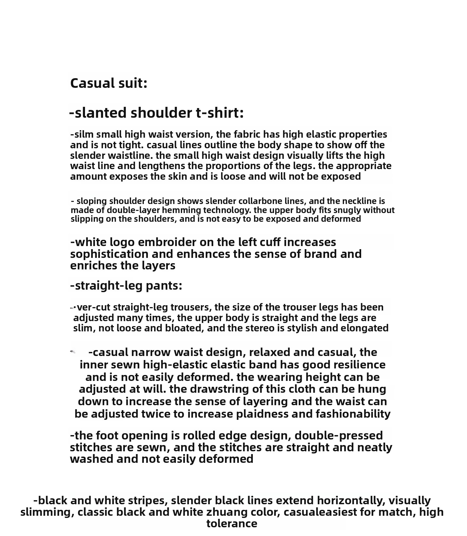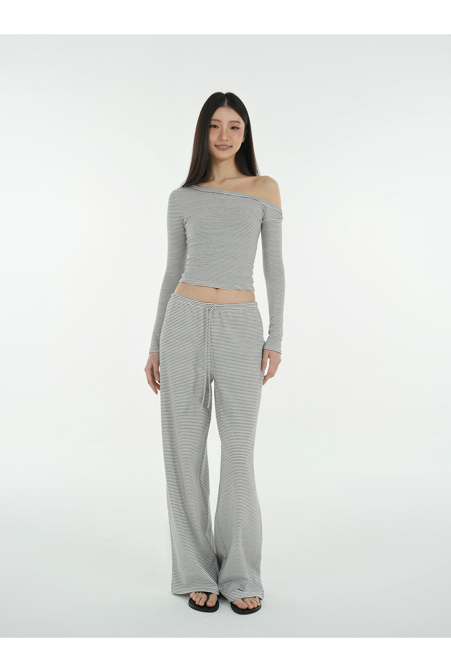 Jim Kennet Striped Slash Shoulder Straight Floor Pants Set