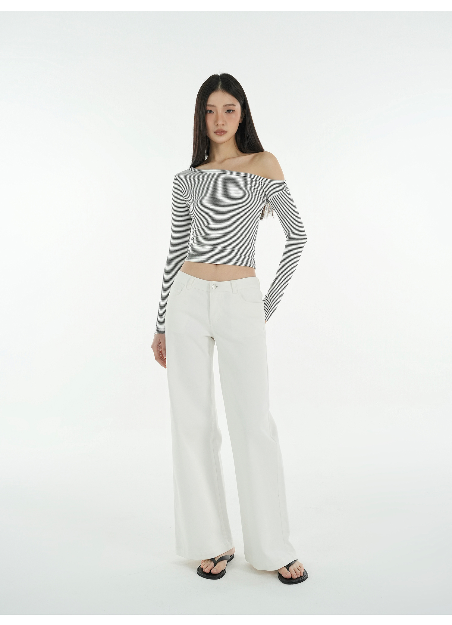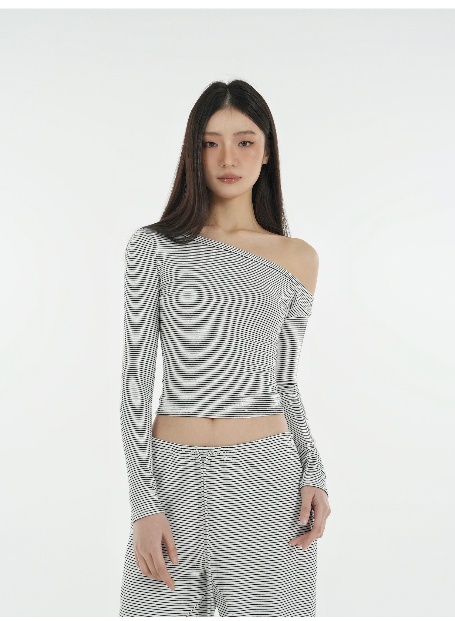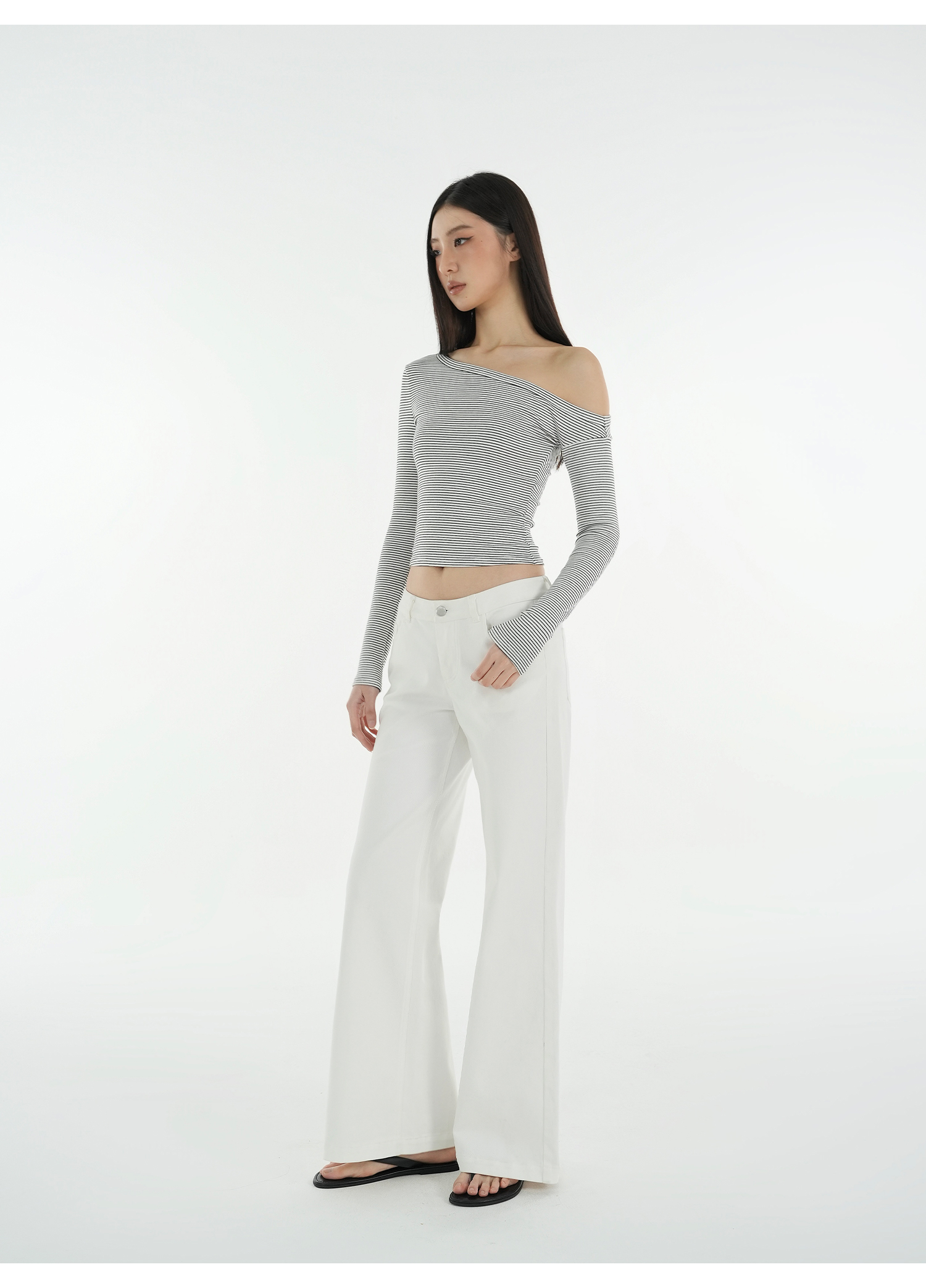 Jim Kennet Striped Slash Shoulder Straight Floor Pants Set