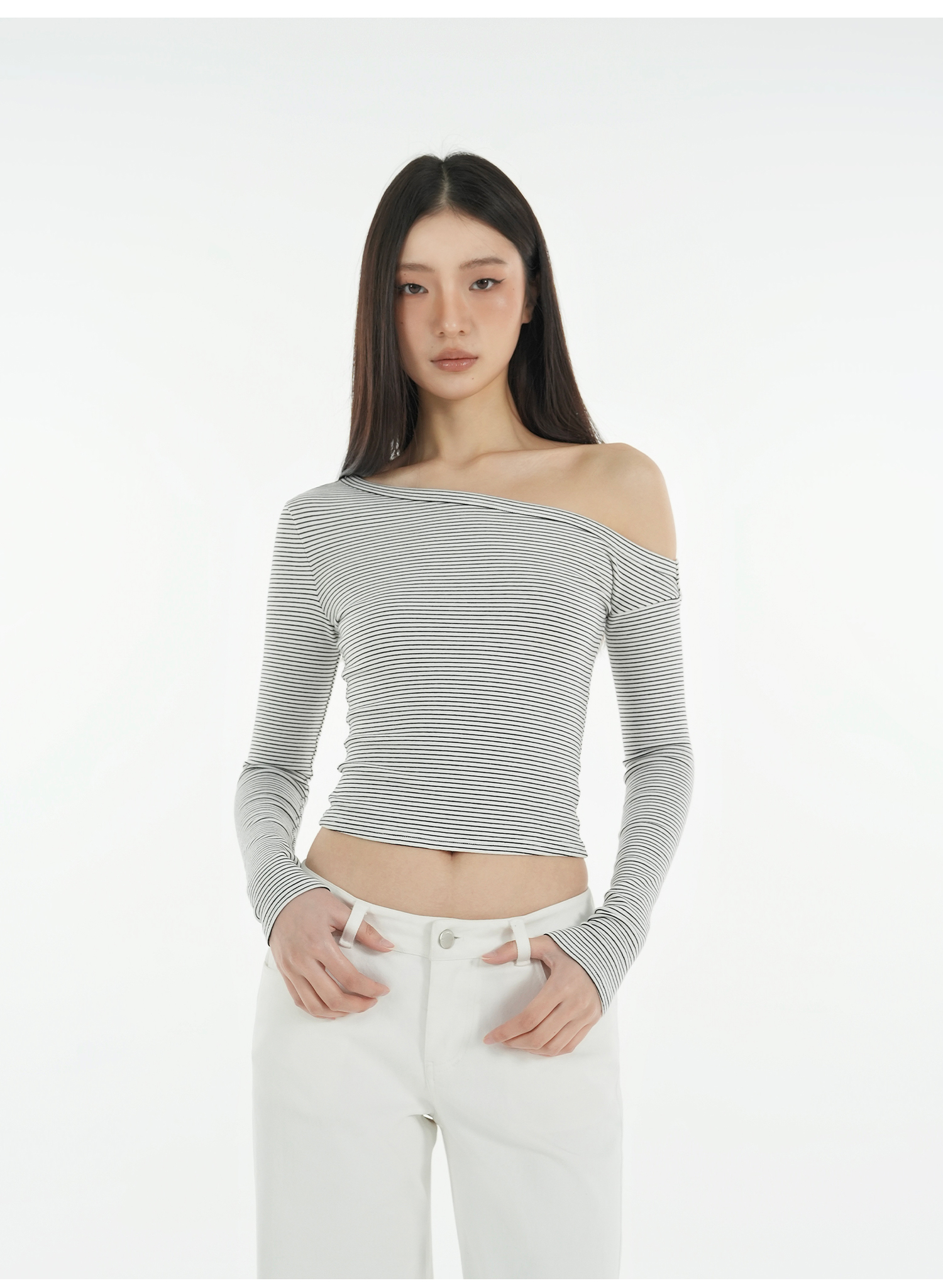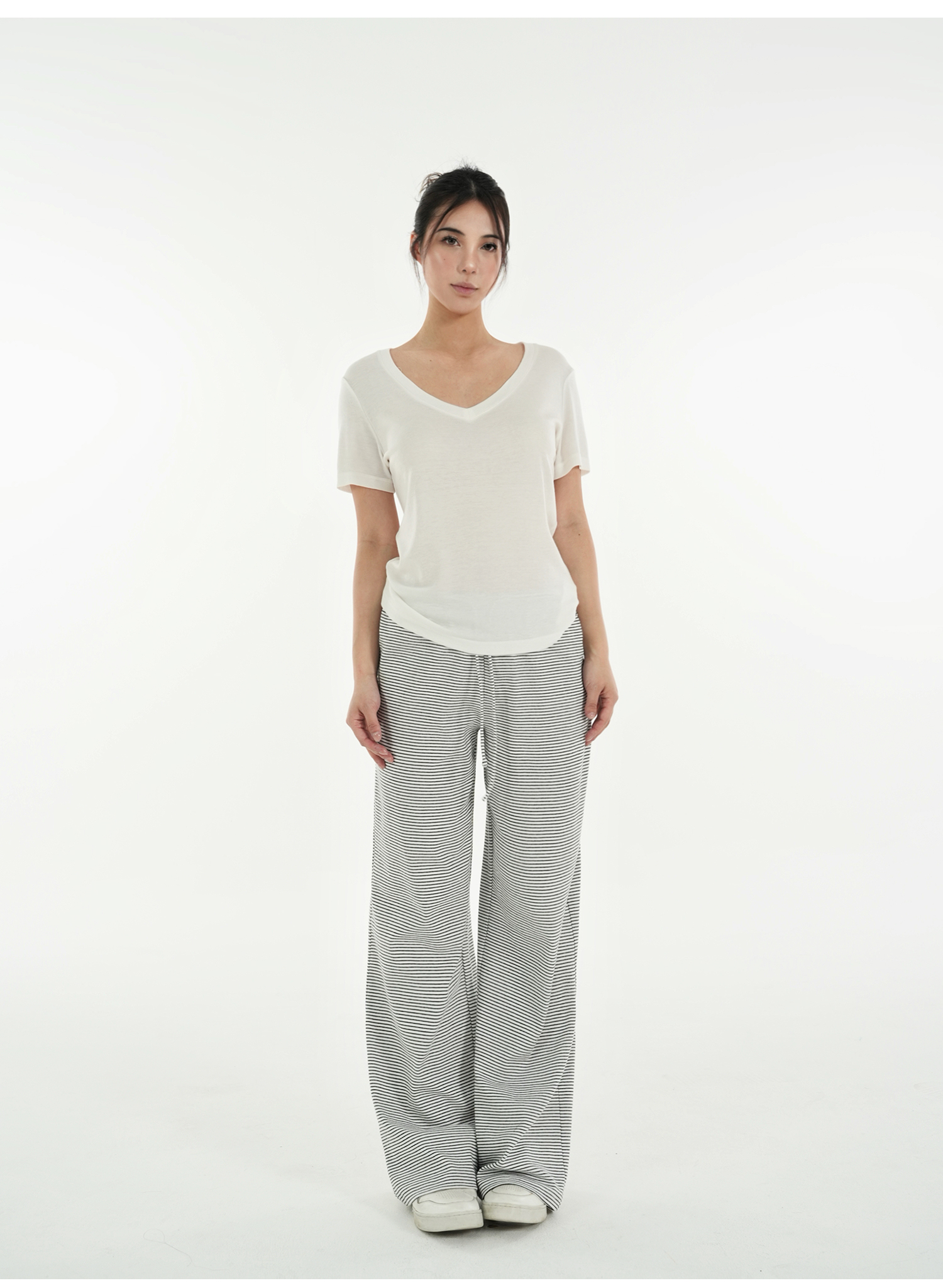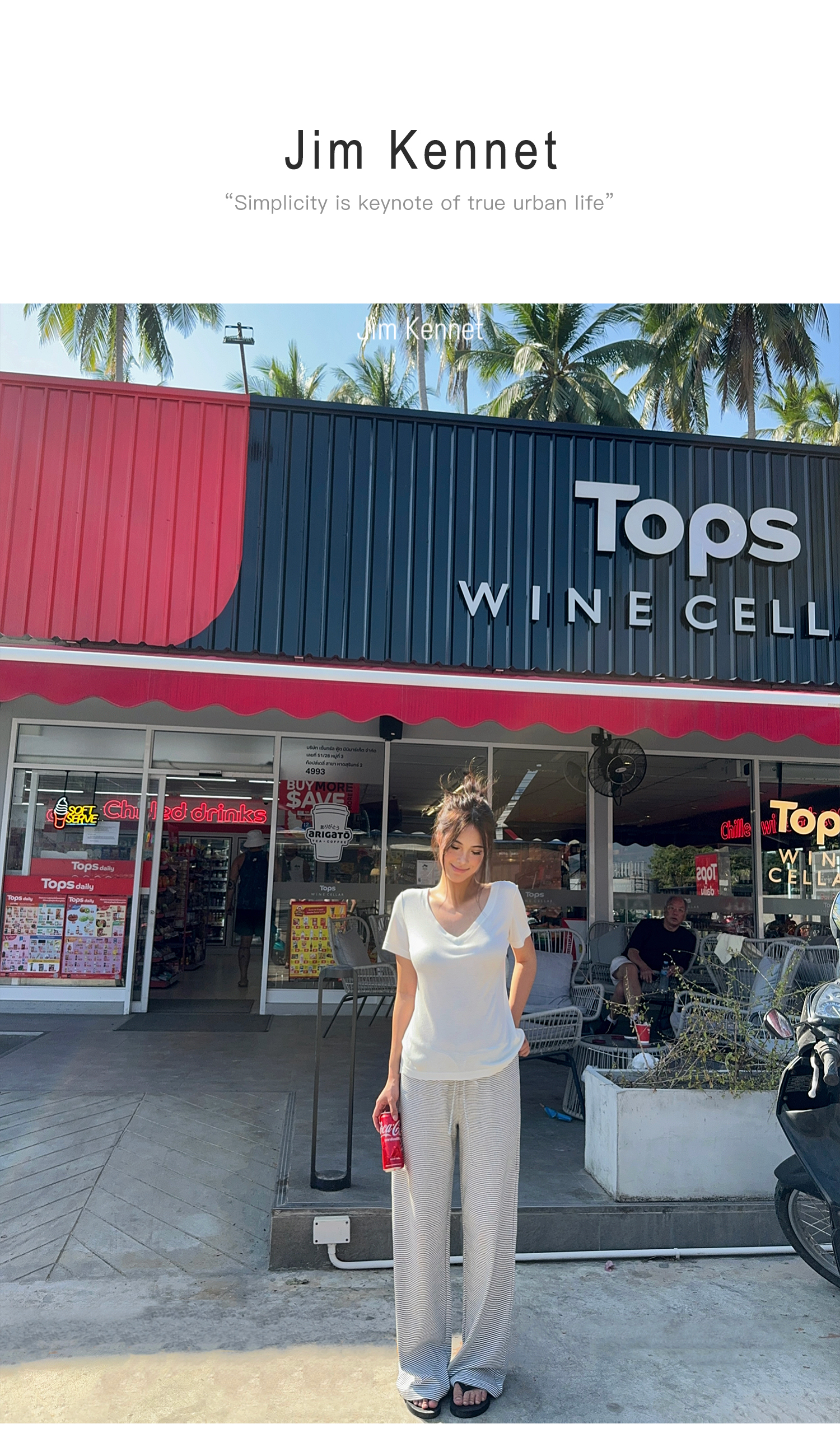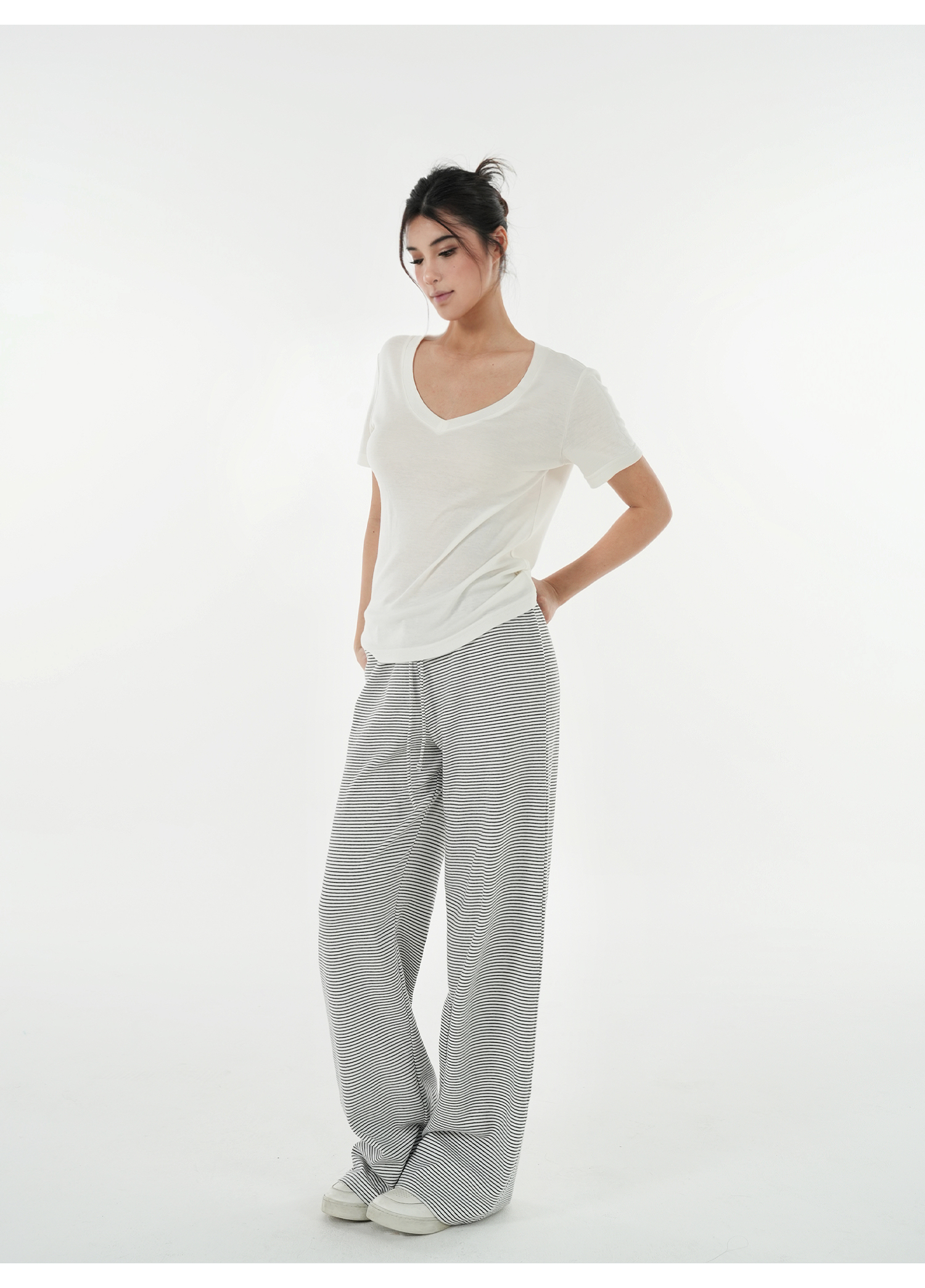 Jim Kennet Striped Slash Shoulder Straight Floor Pants Set