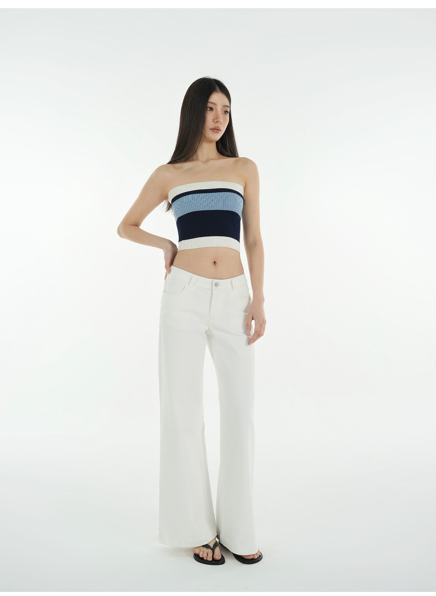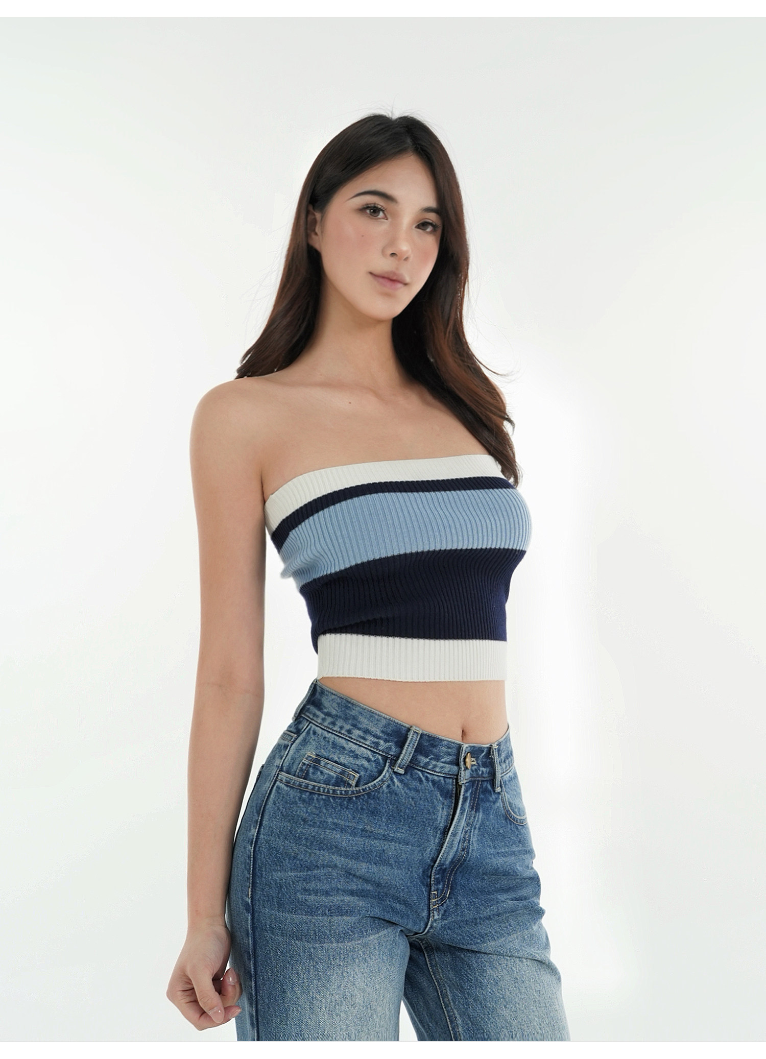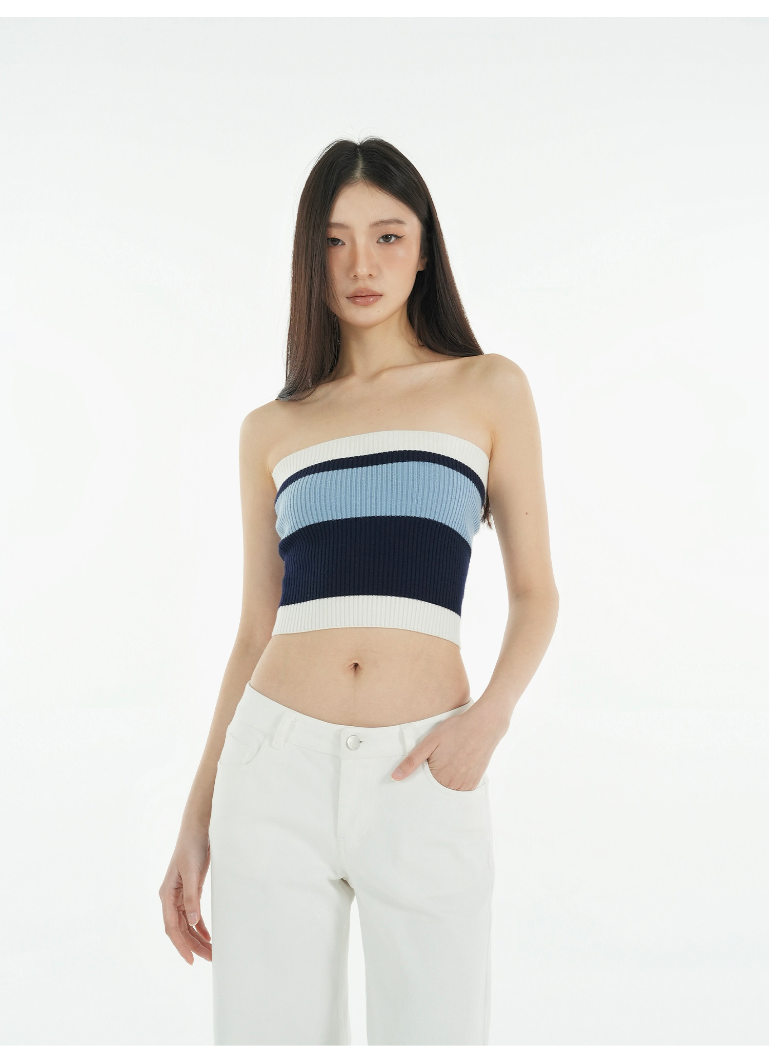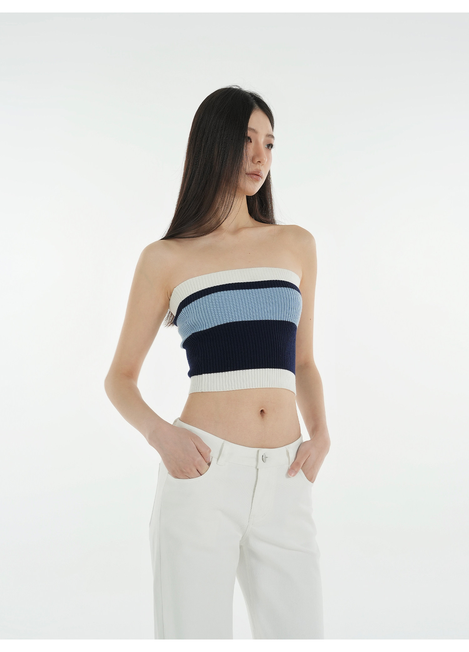 Jim Kennet Vintage Contrast Striped Slim Knit Tube Top