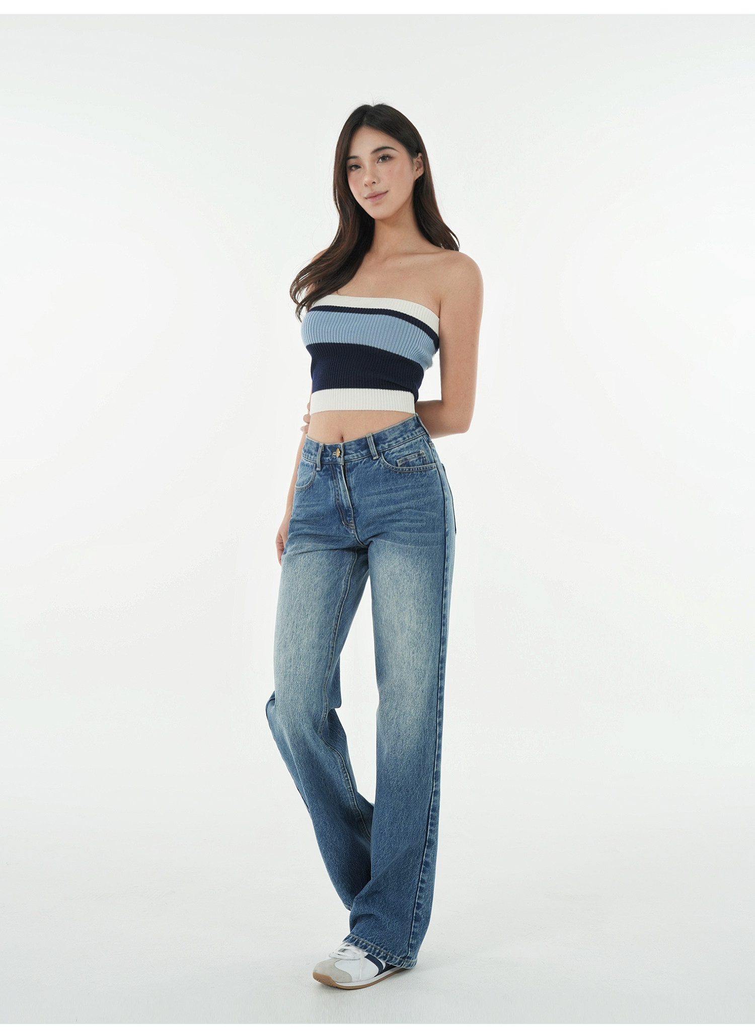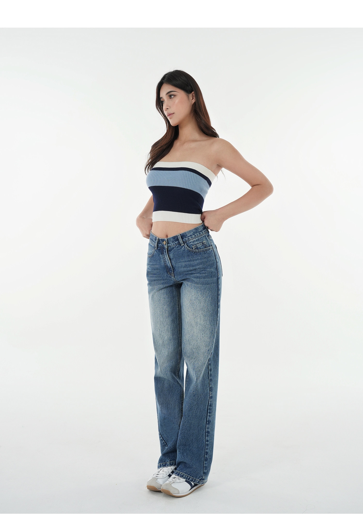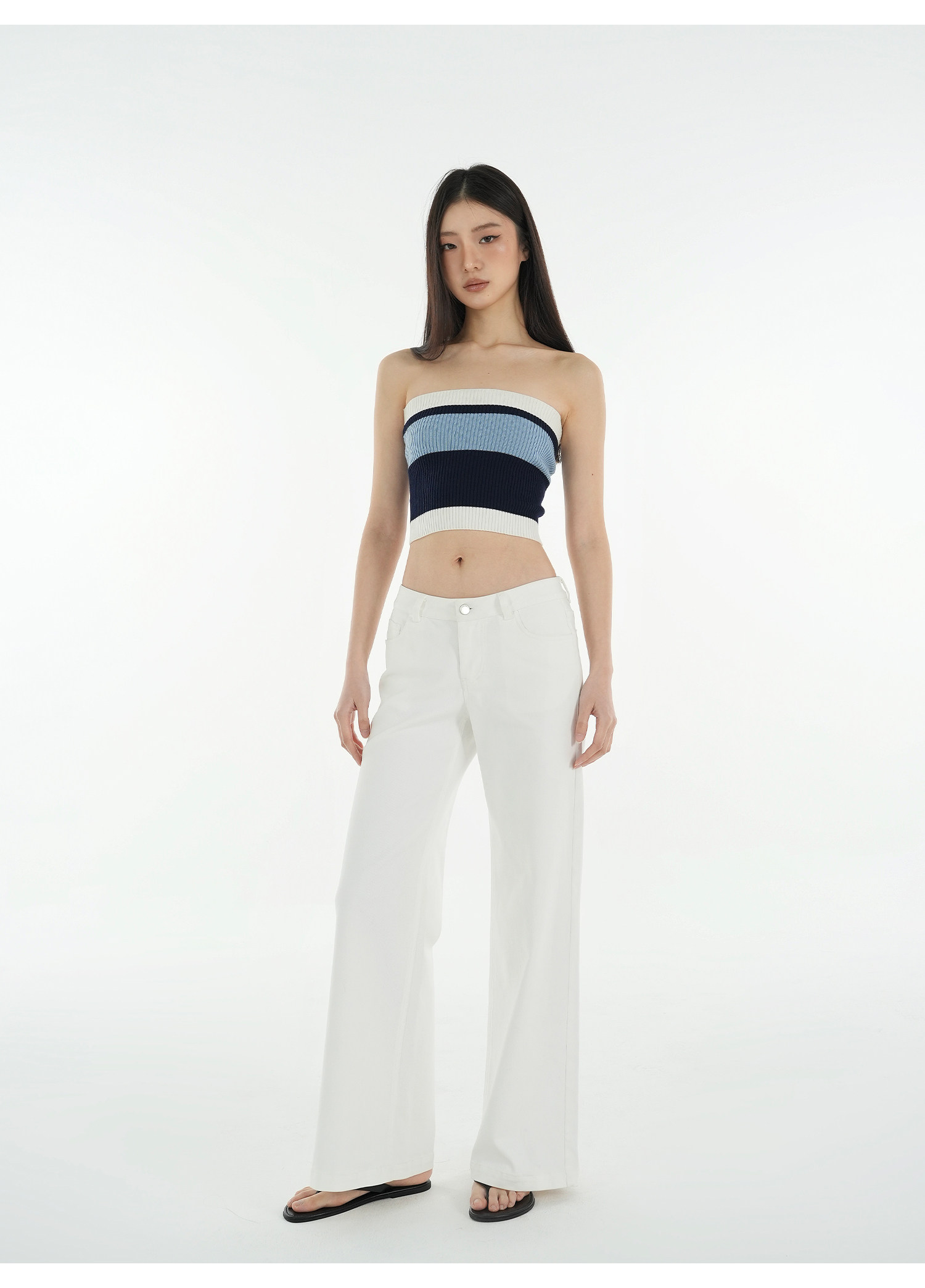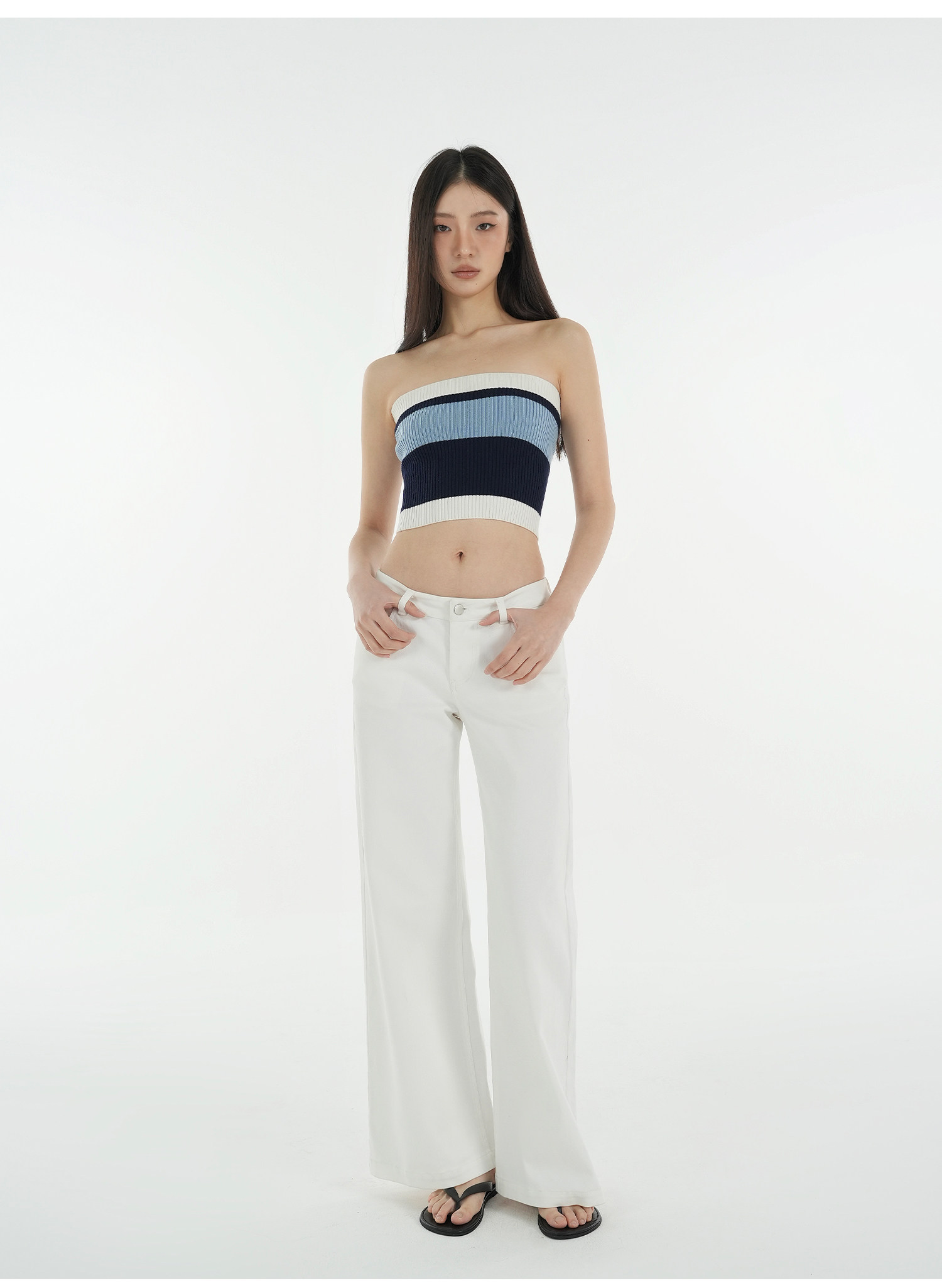 Jim Kennet Vintage Contrast Striped Slim Knit Tube Top