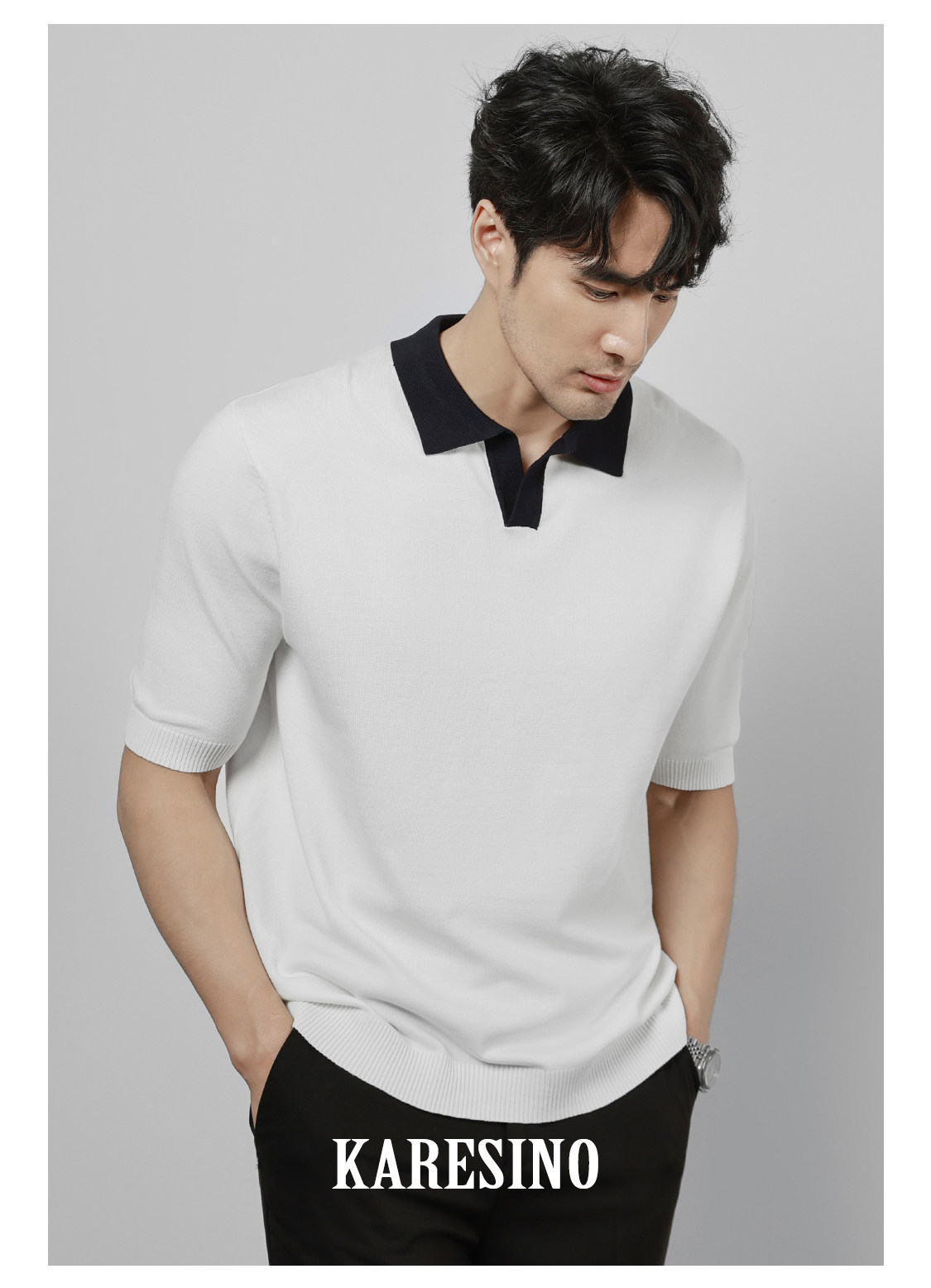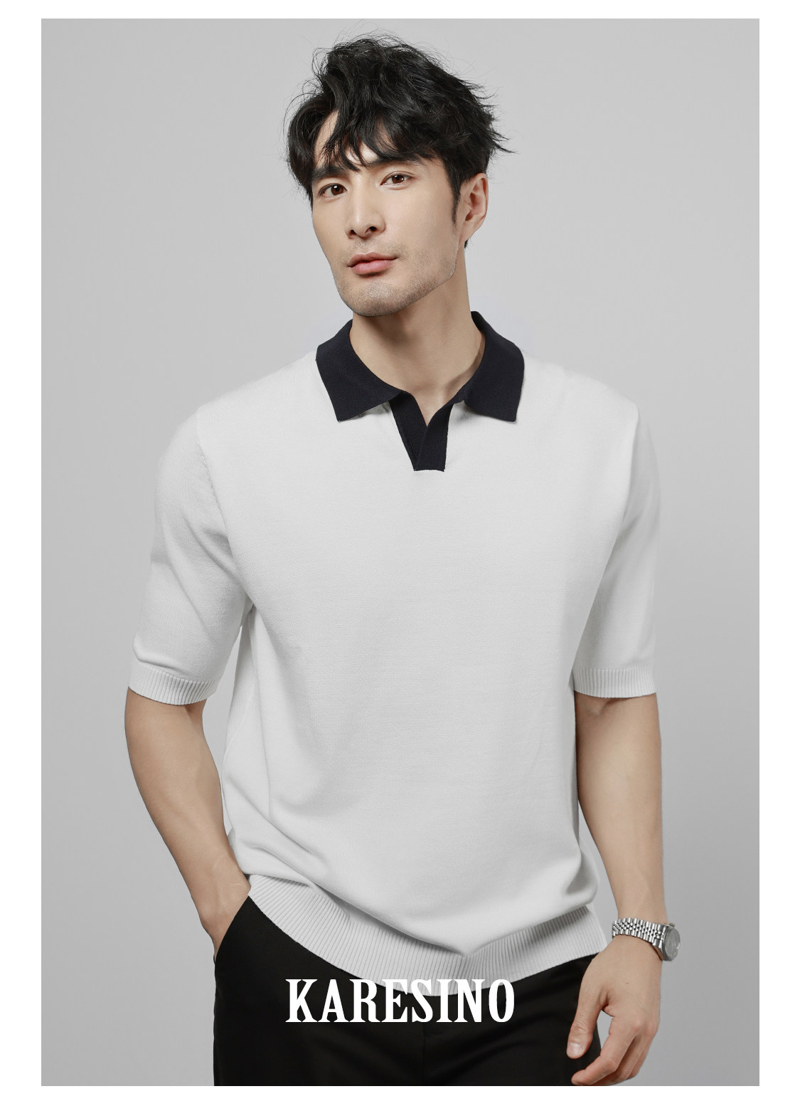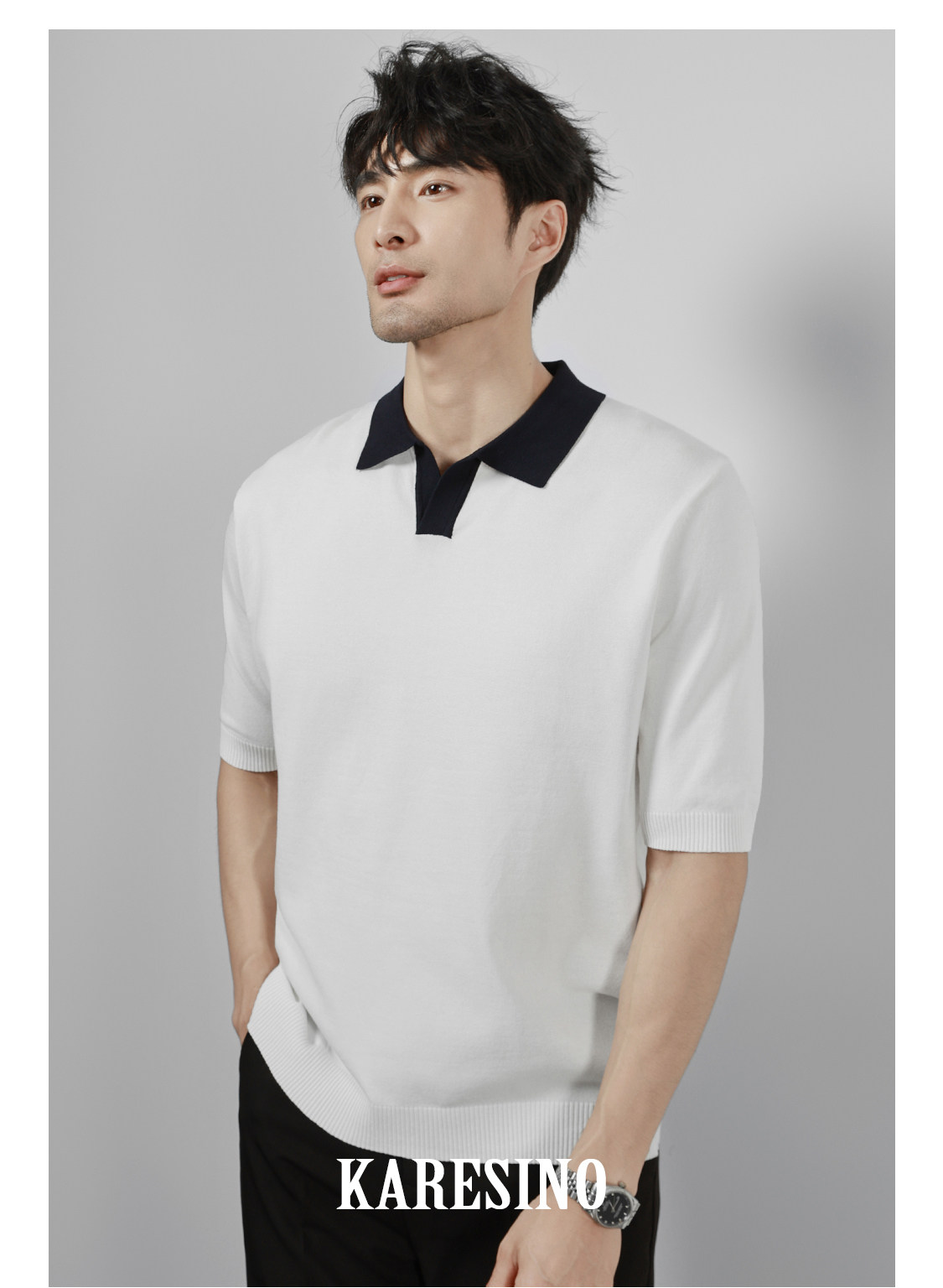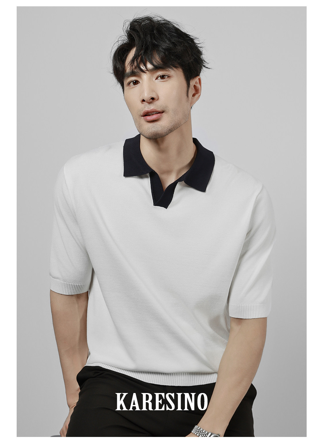 KARESINO Ice Silk Breathable Contrasting Color Splicing Knitted Sweater