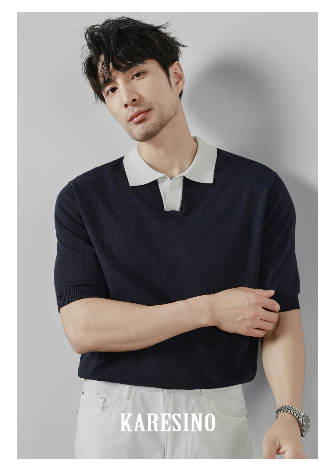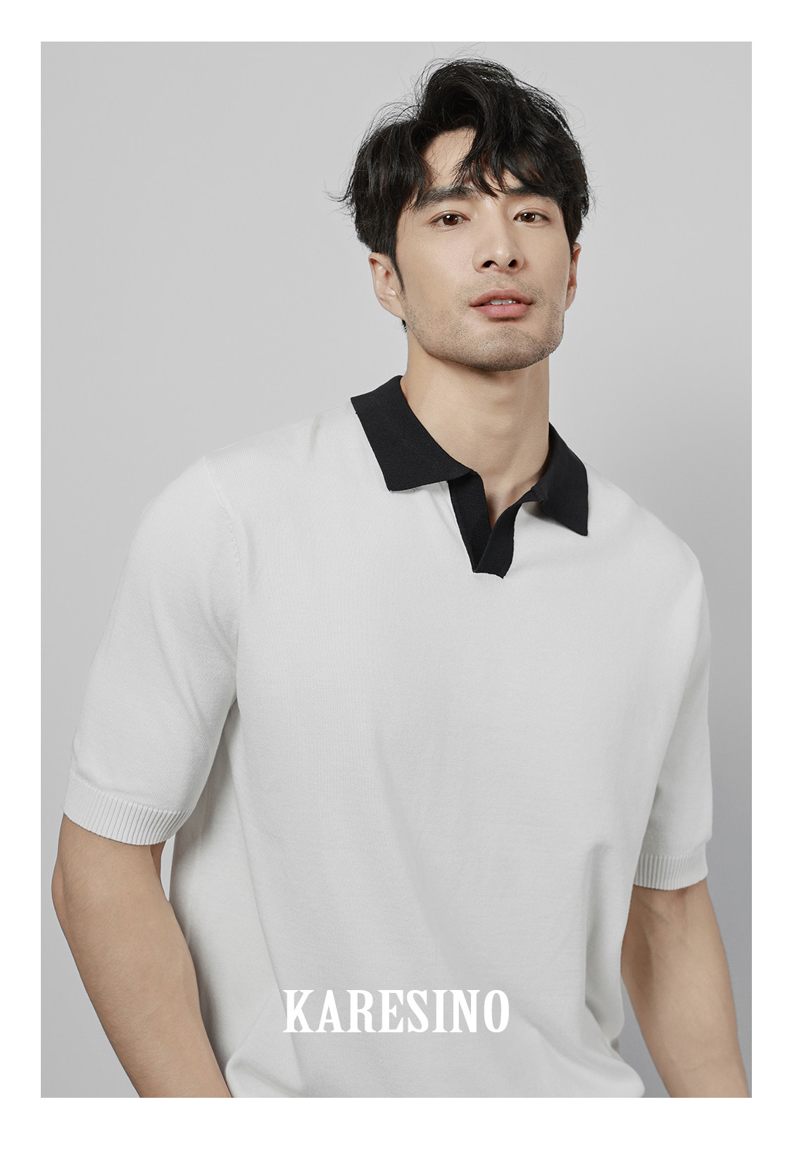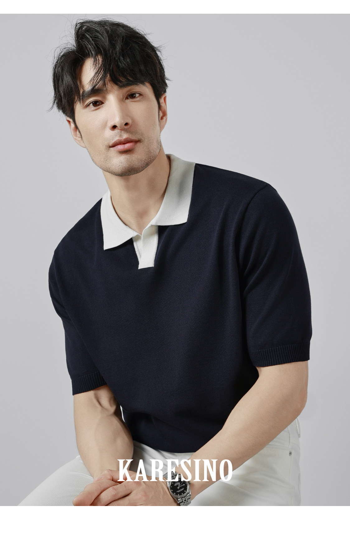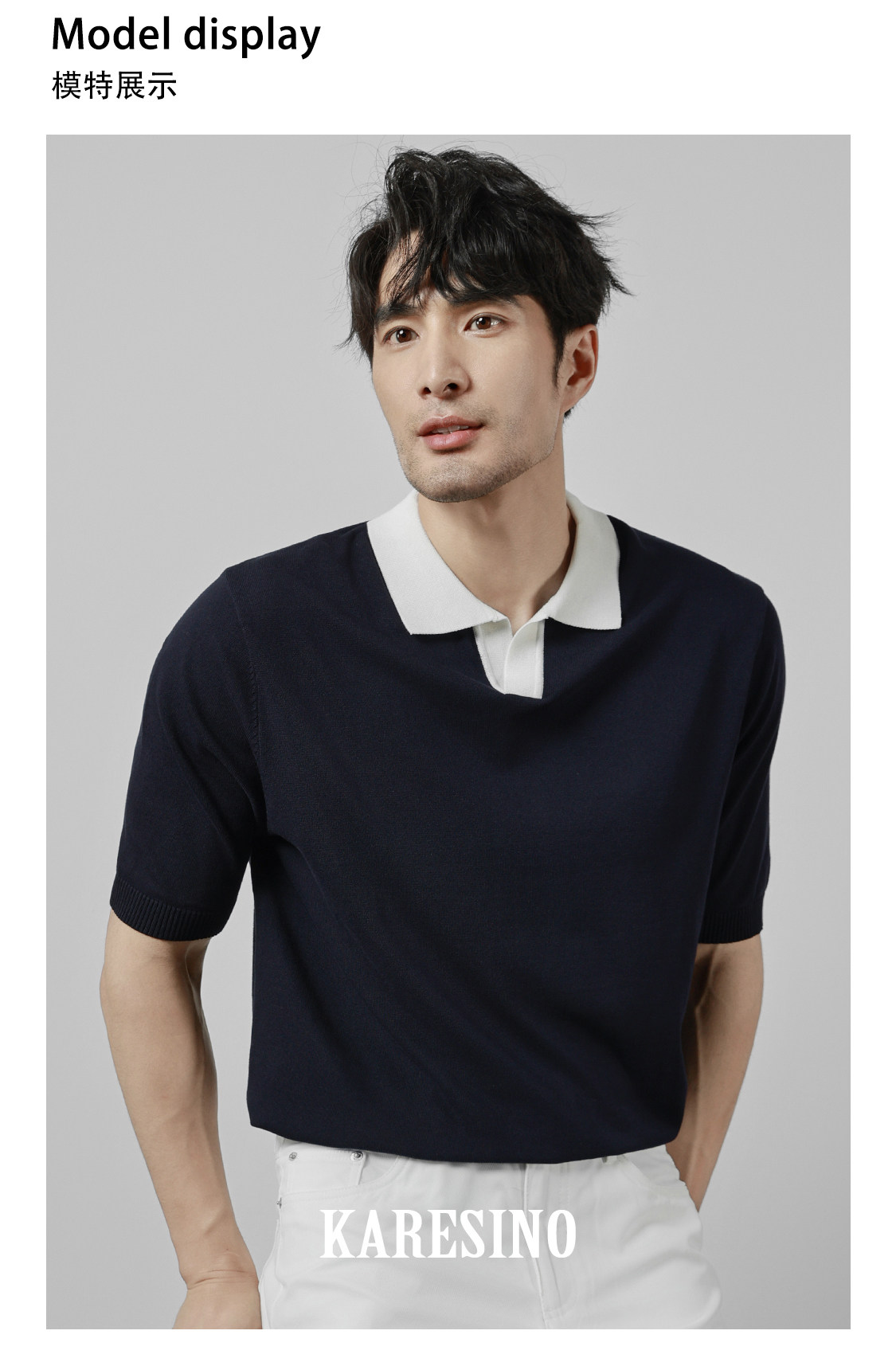 KARESINO Ice Silk Breathable Contrasting Color Splicing Knitted Sweater