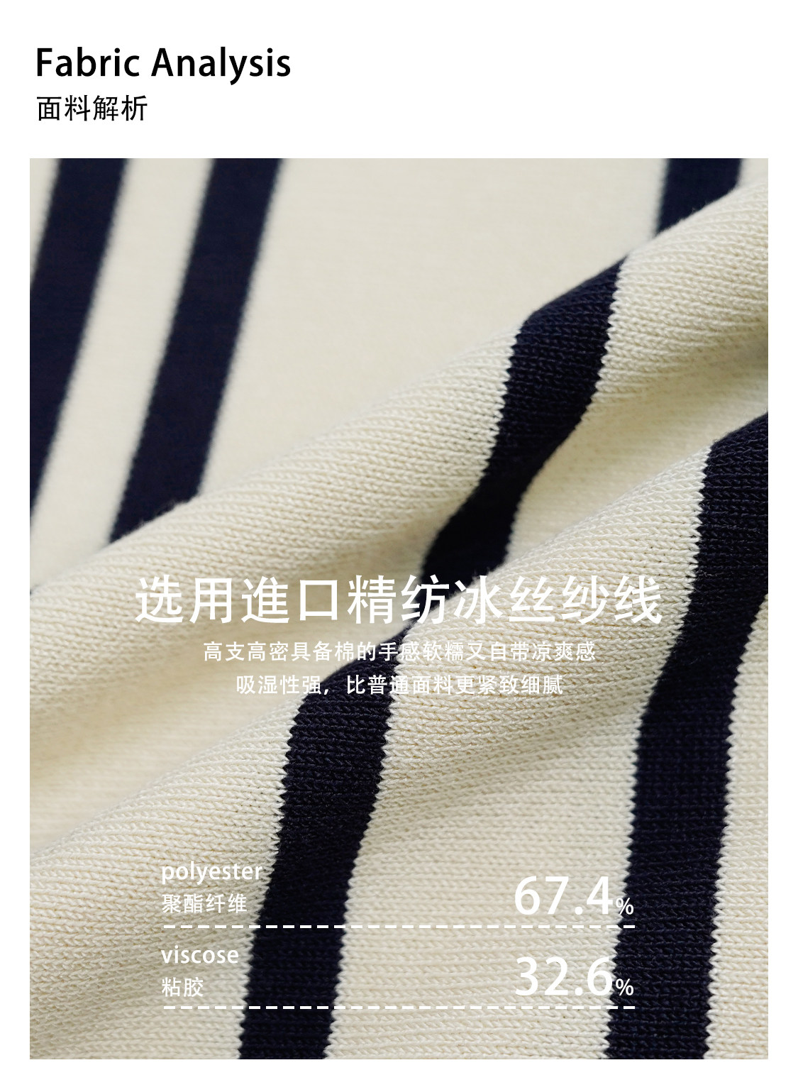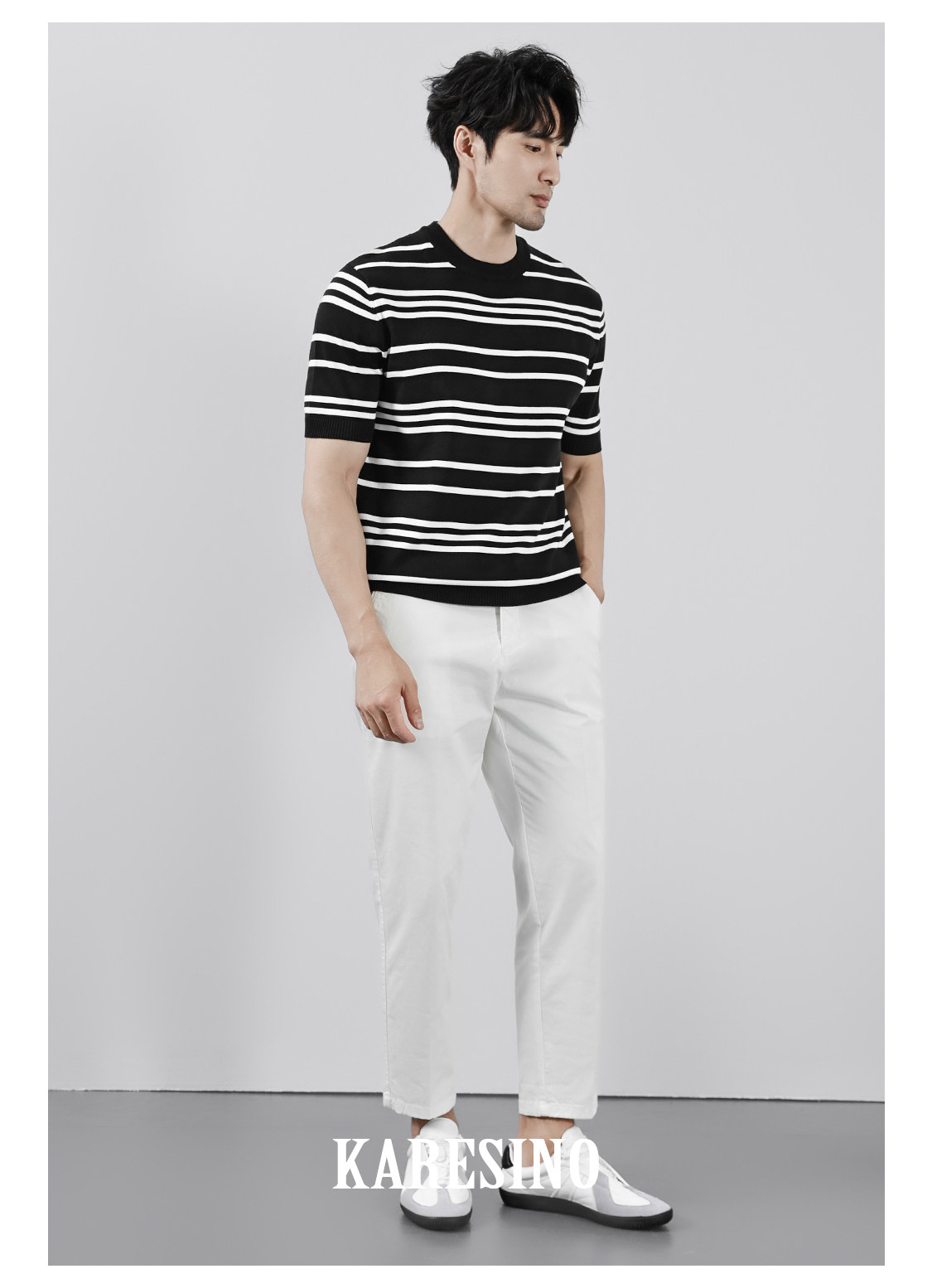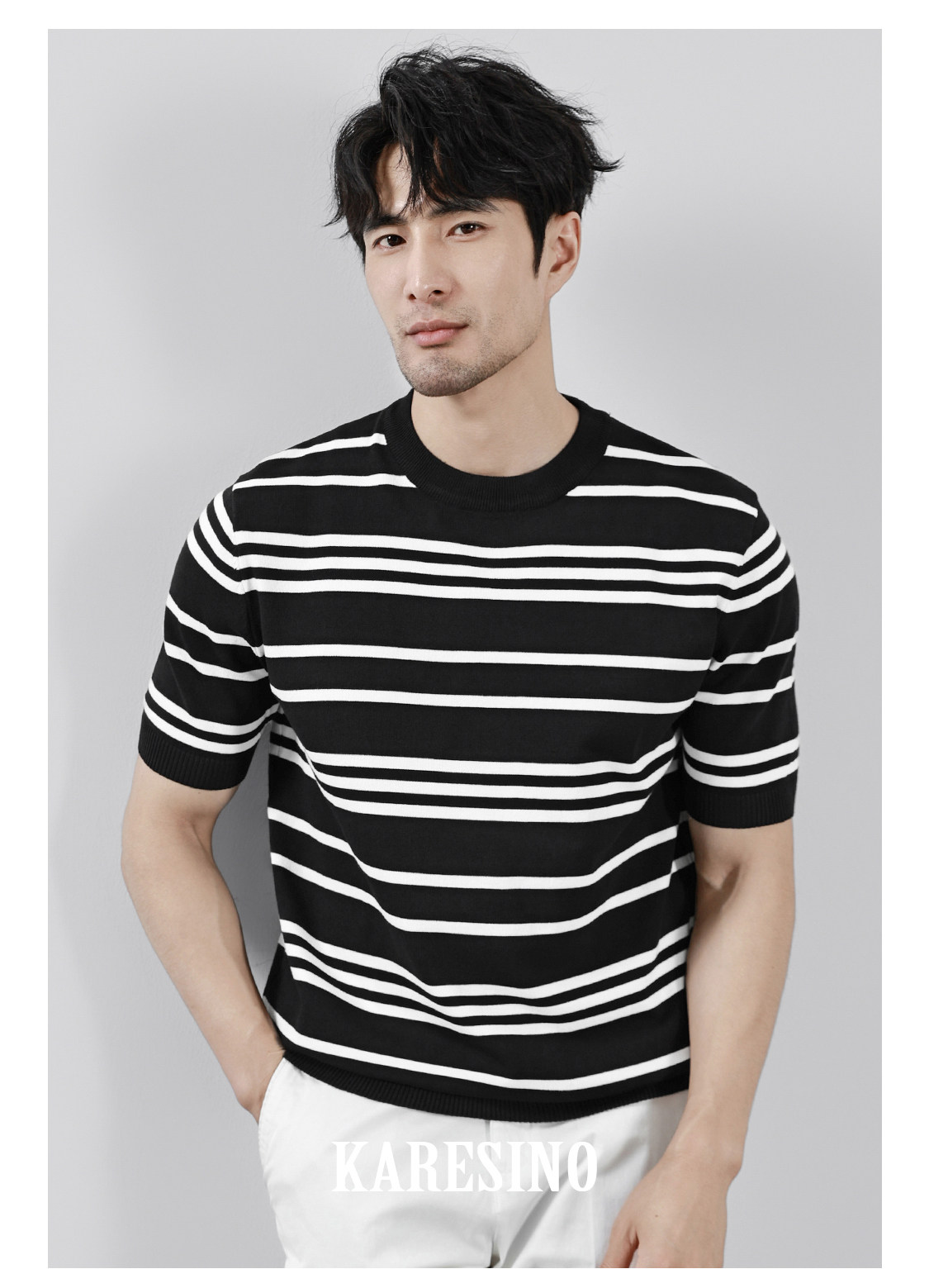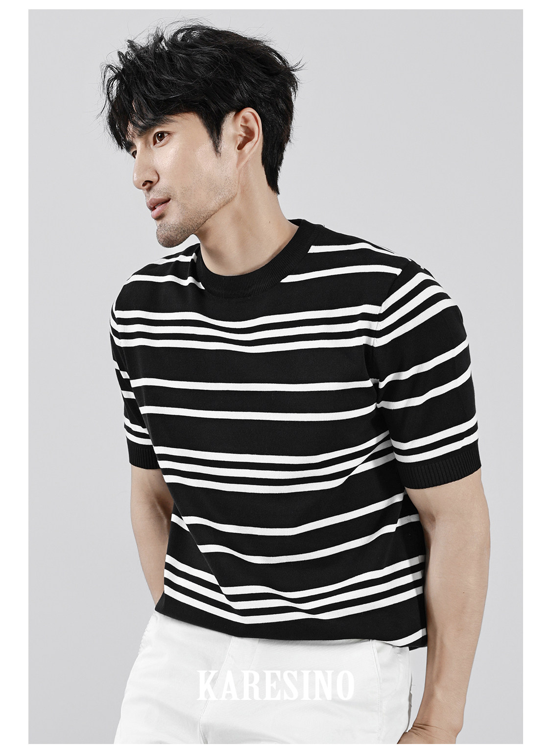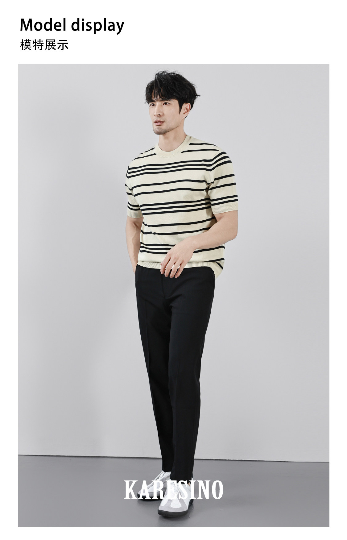 KARESINO Ice Silk Breathable, Striped Crew Neck Casual Tee