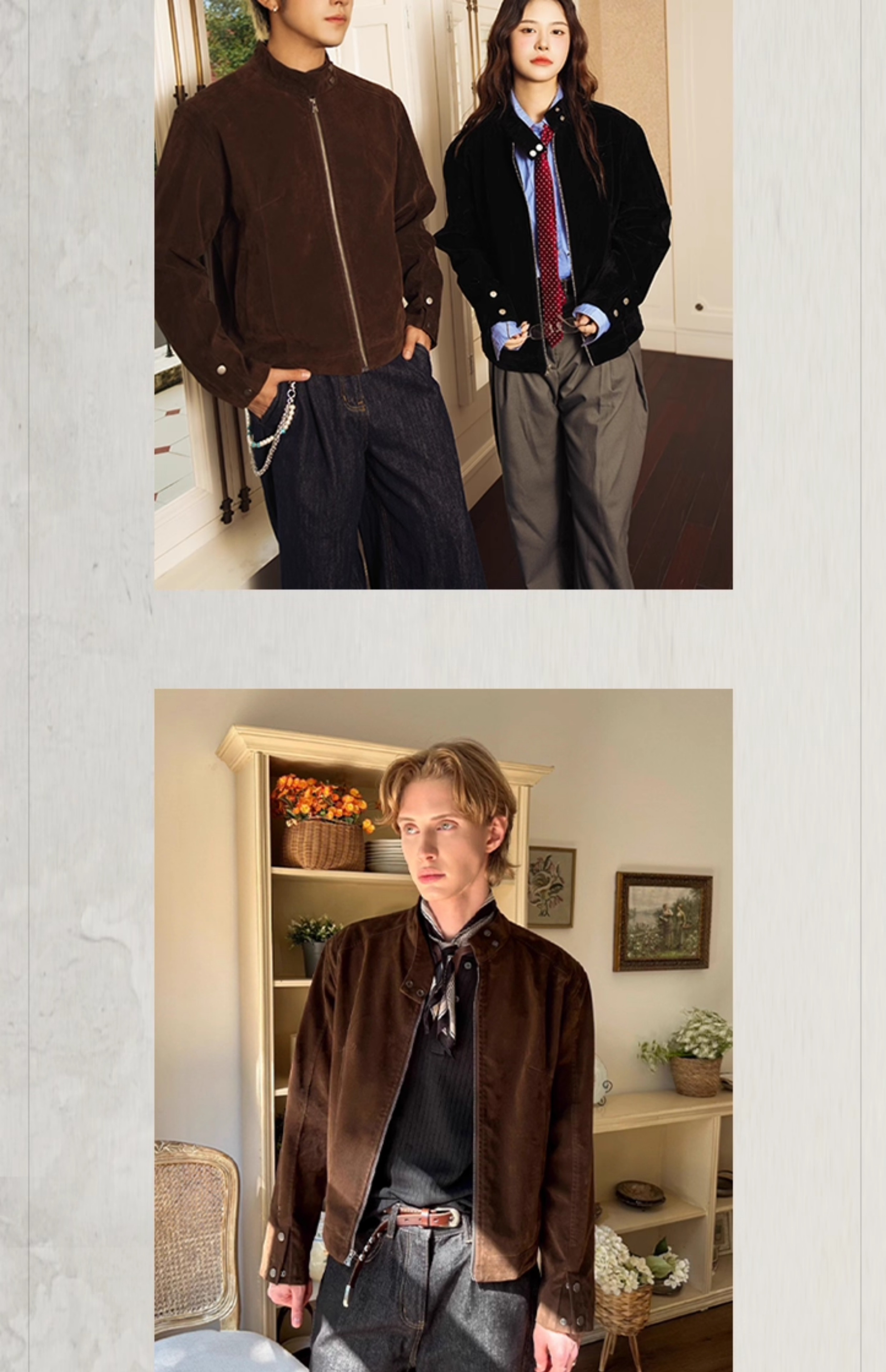 KONOOT Vintage Faux Suede Stand-Up Jacket