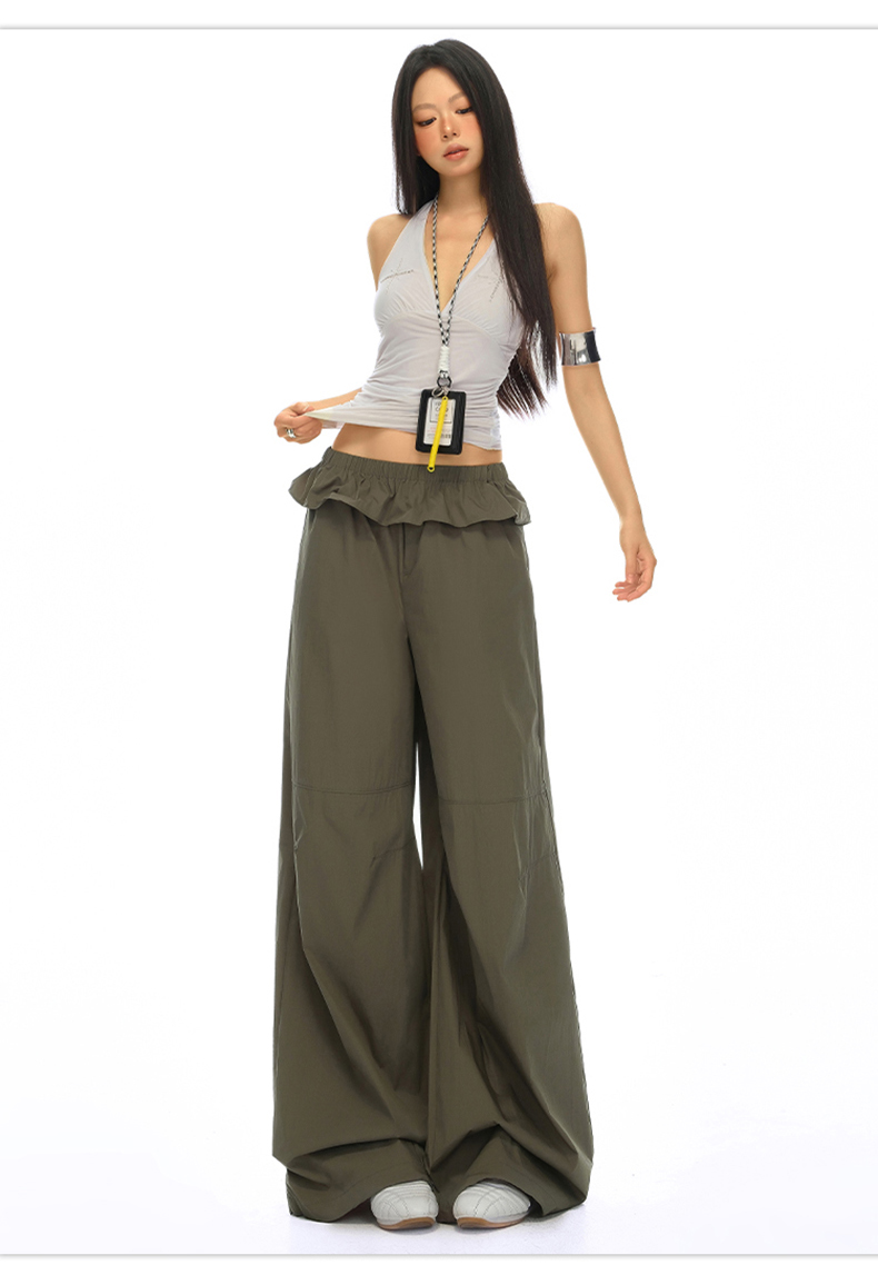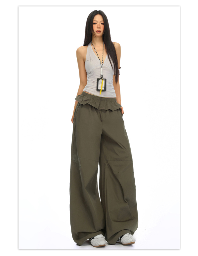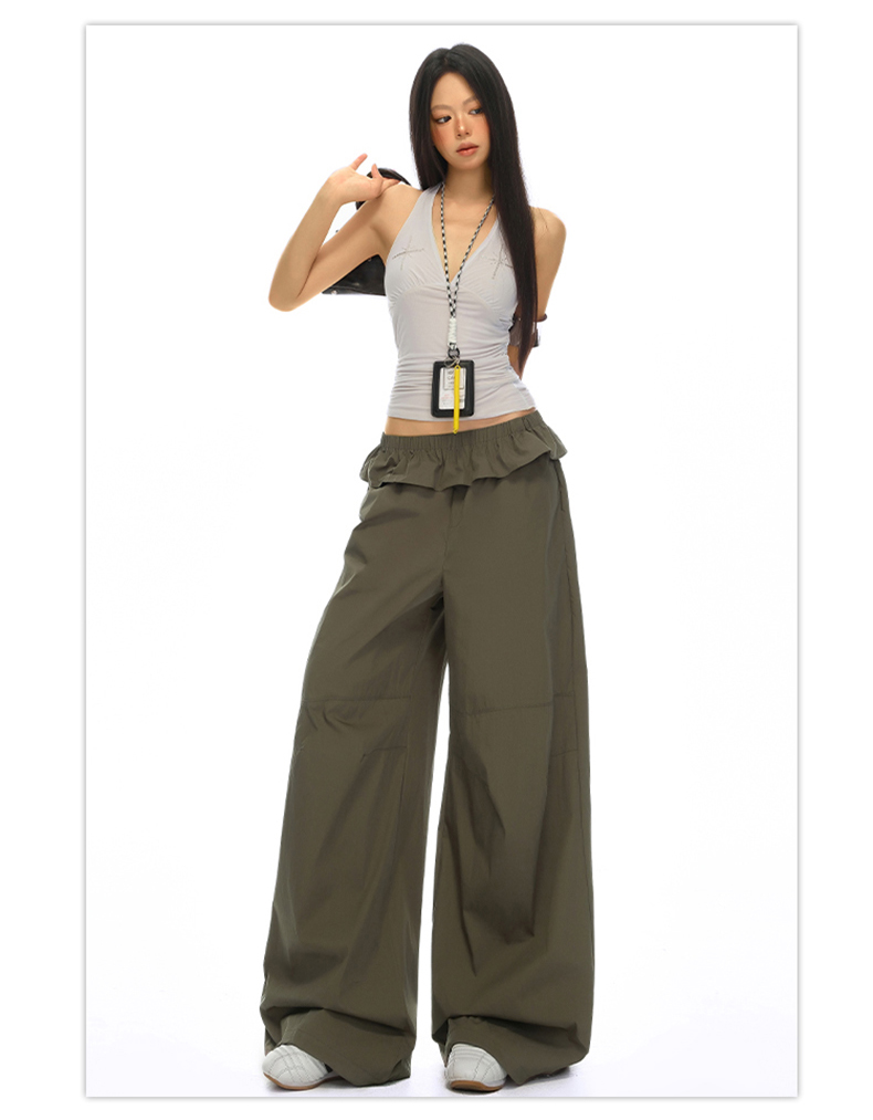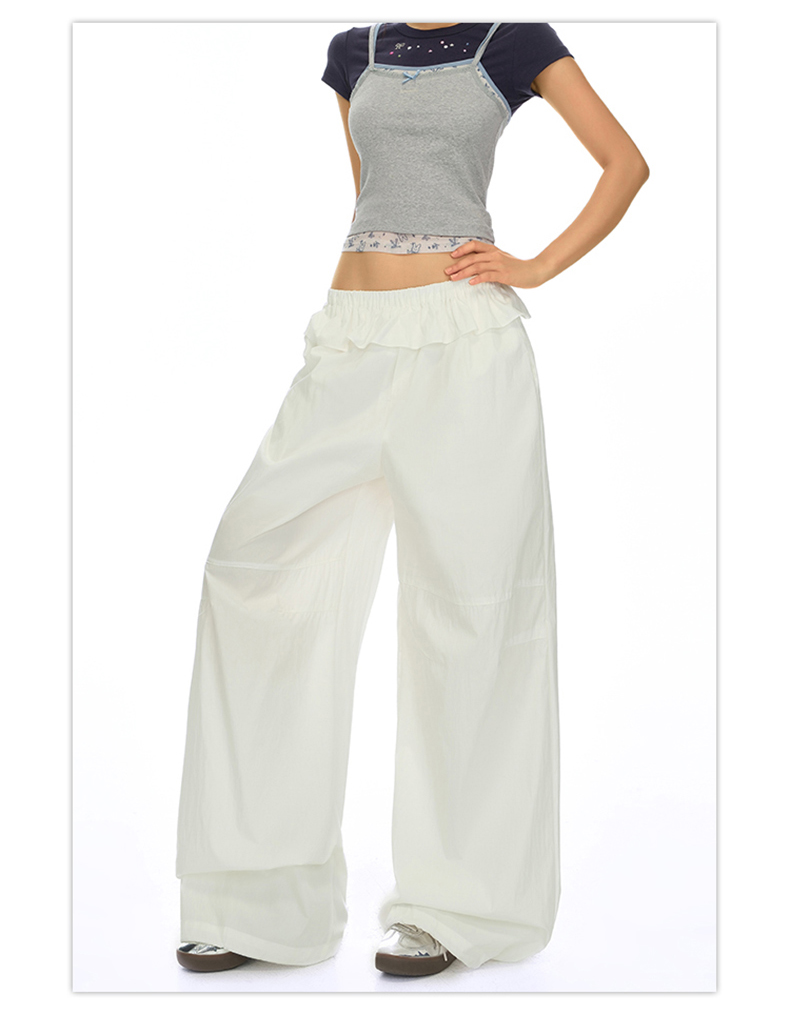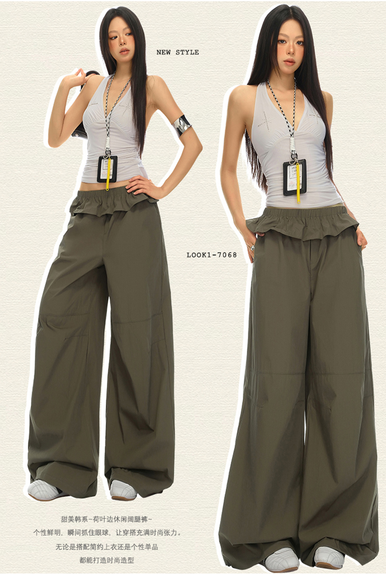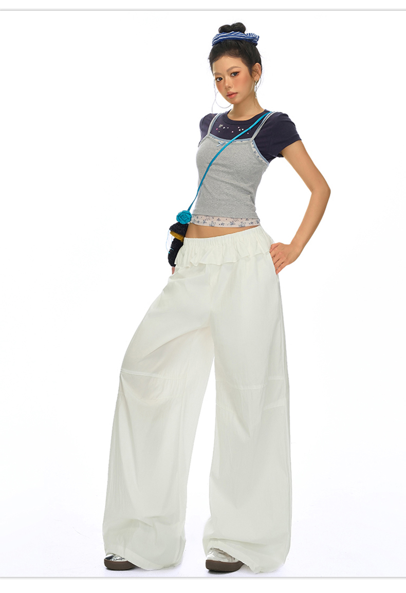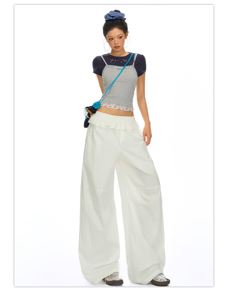 KPSR Lace Waist Casual Versatile Wide Leg Pants