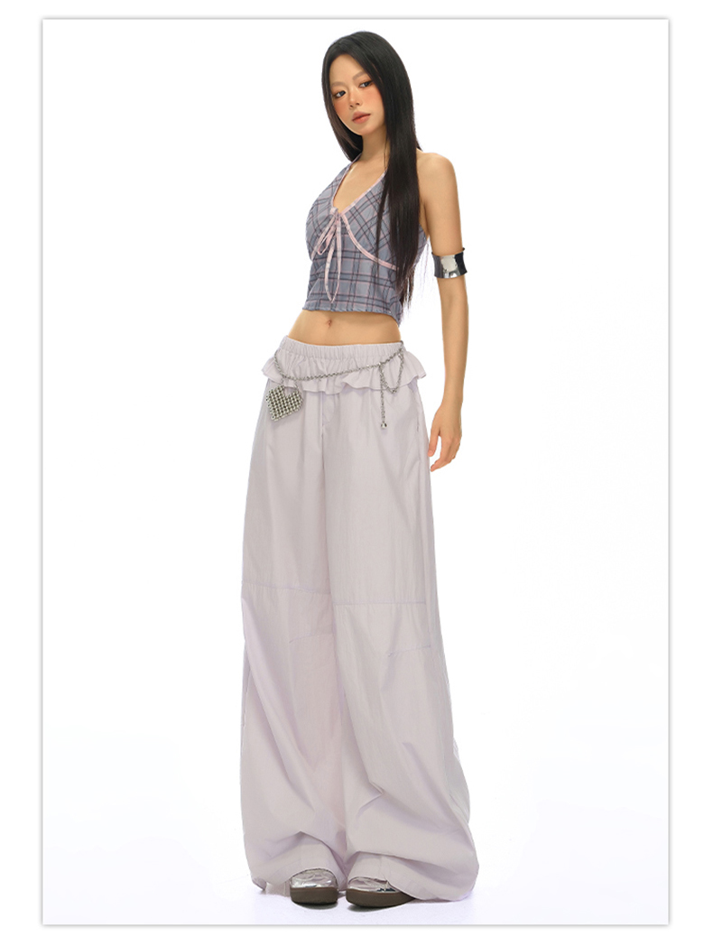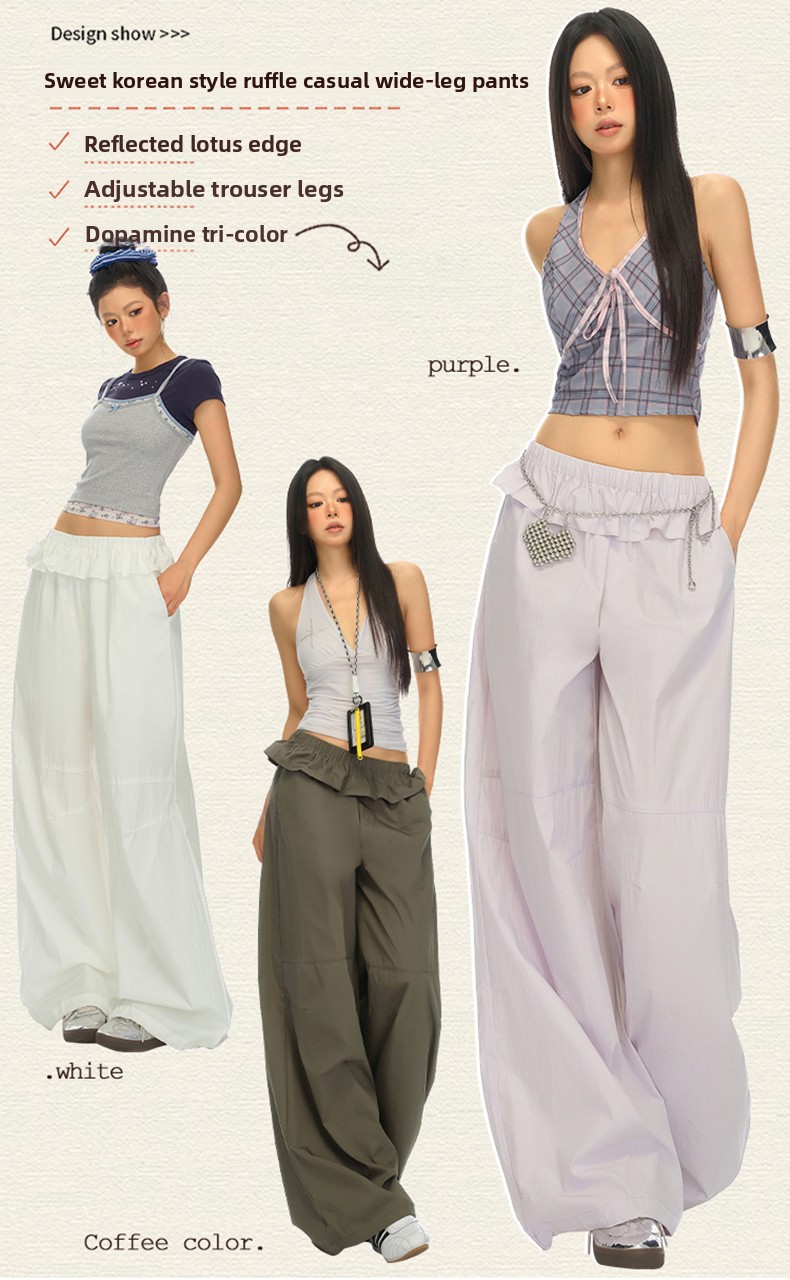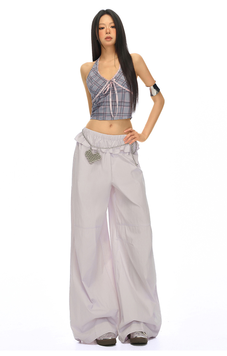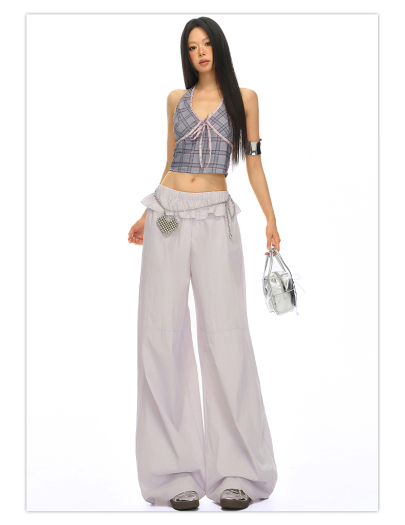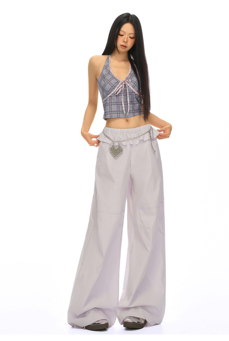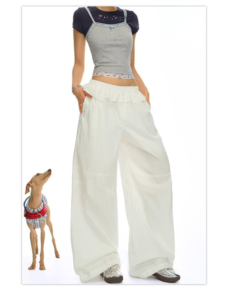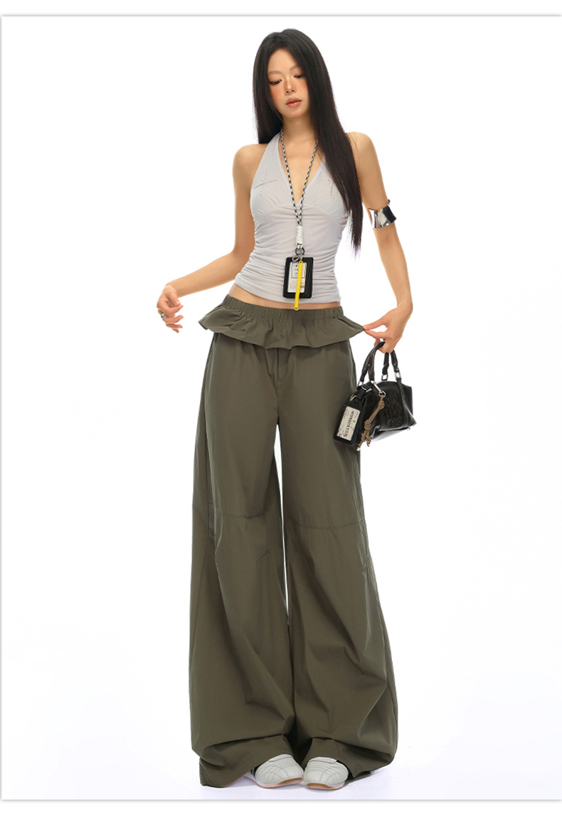 KPSR Lace Waist Casual Versatile Wide Leg Pants