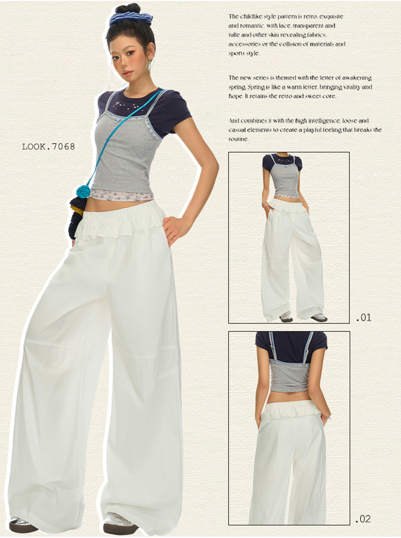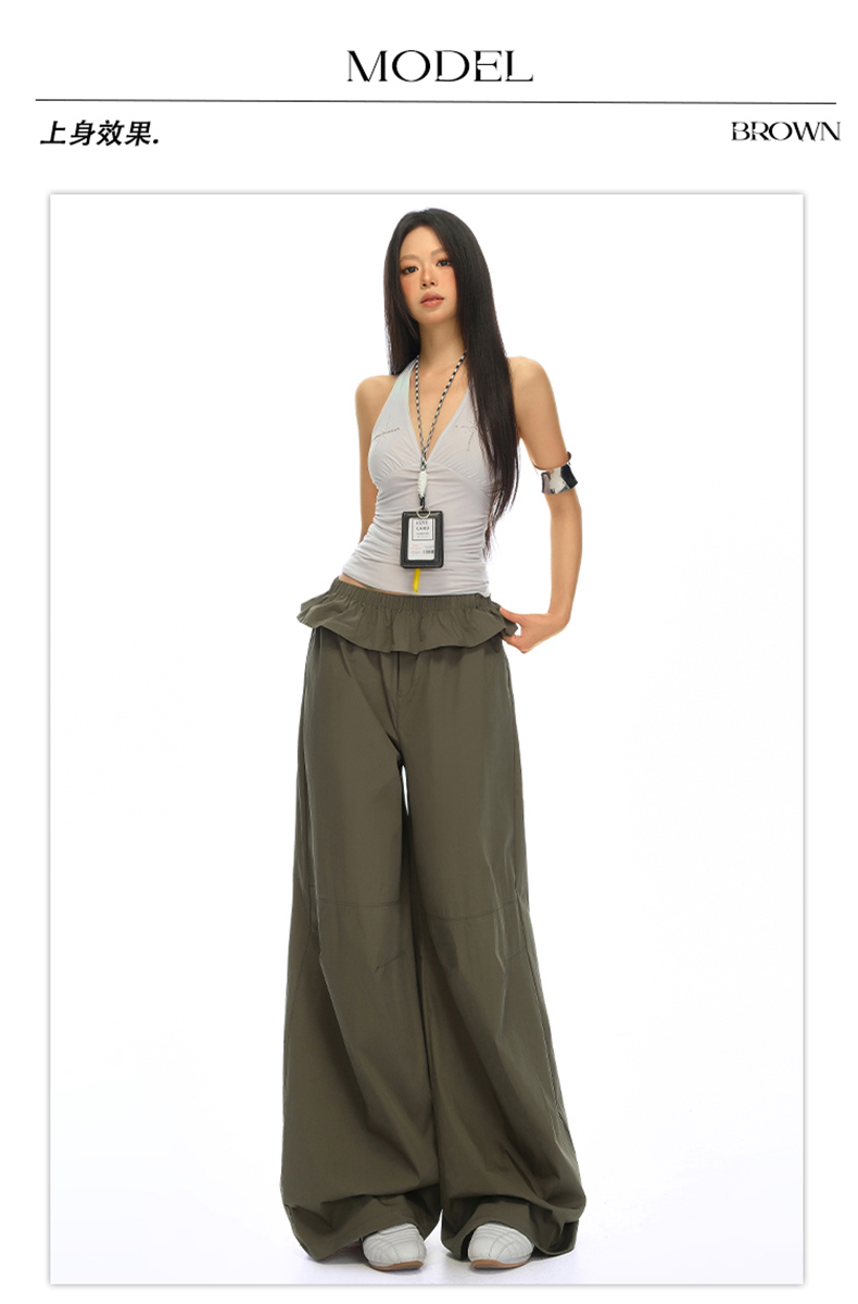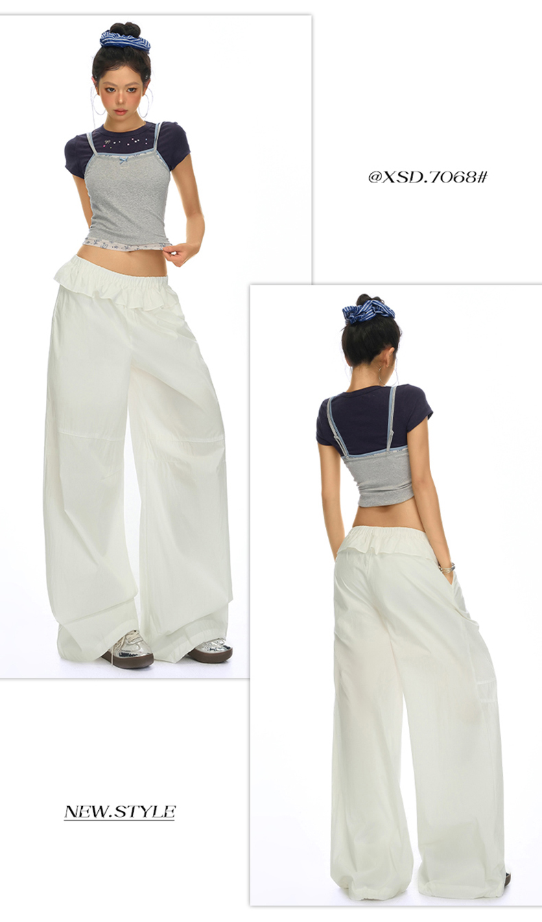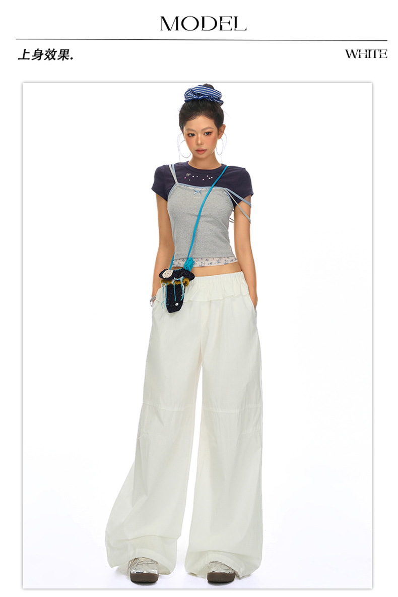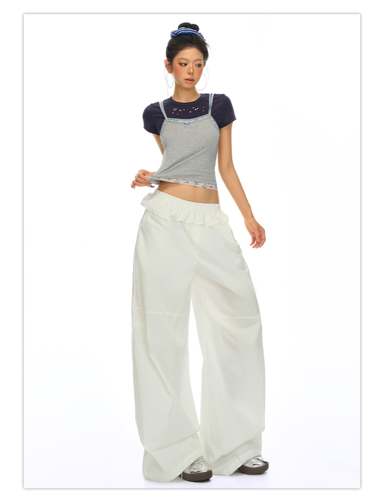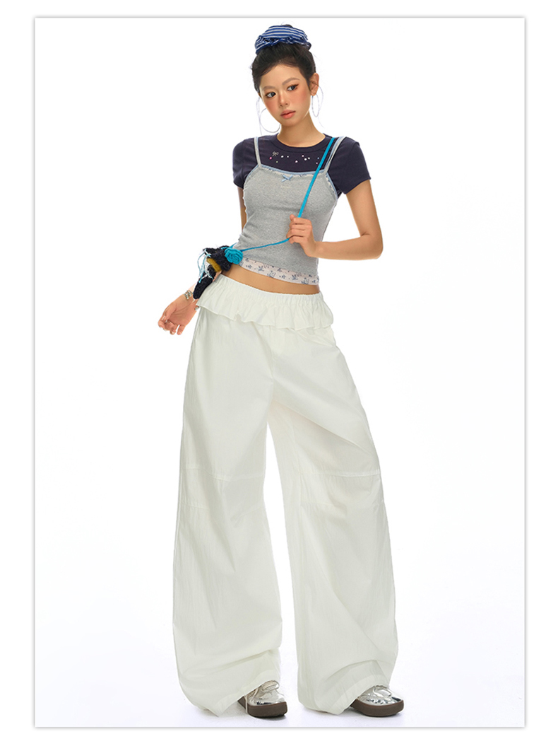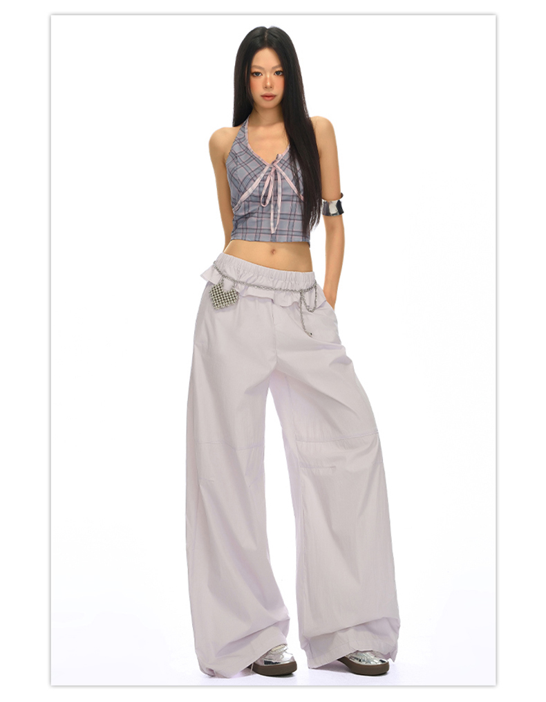 KPSR Lace Waist Casual Versatile Wide Leg Pants