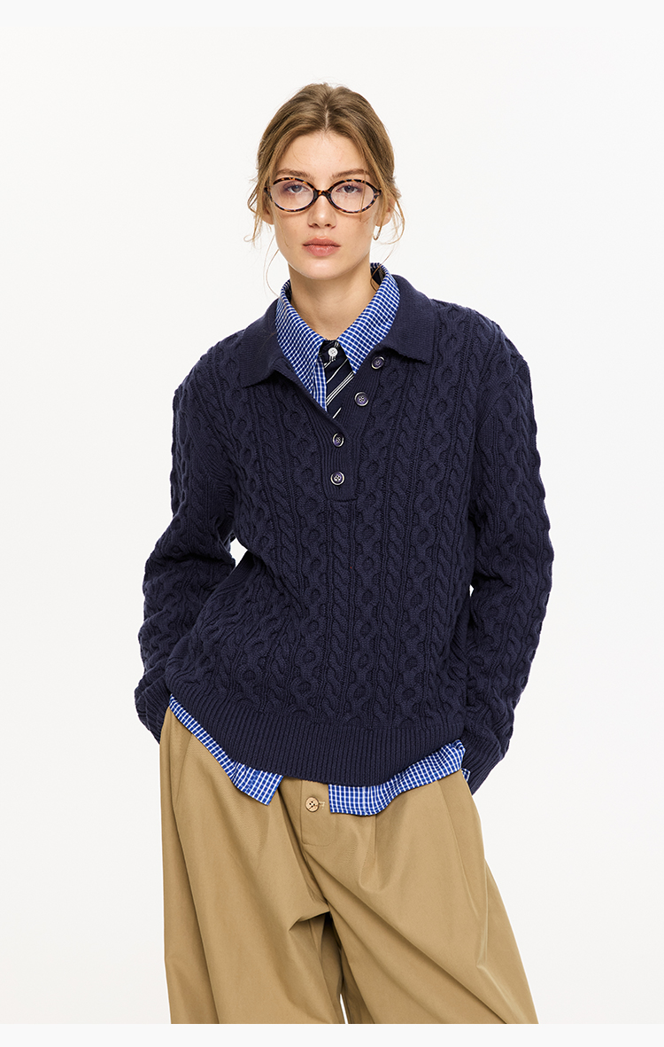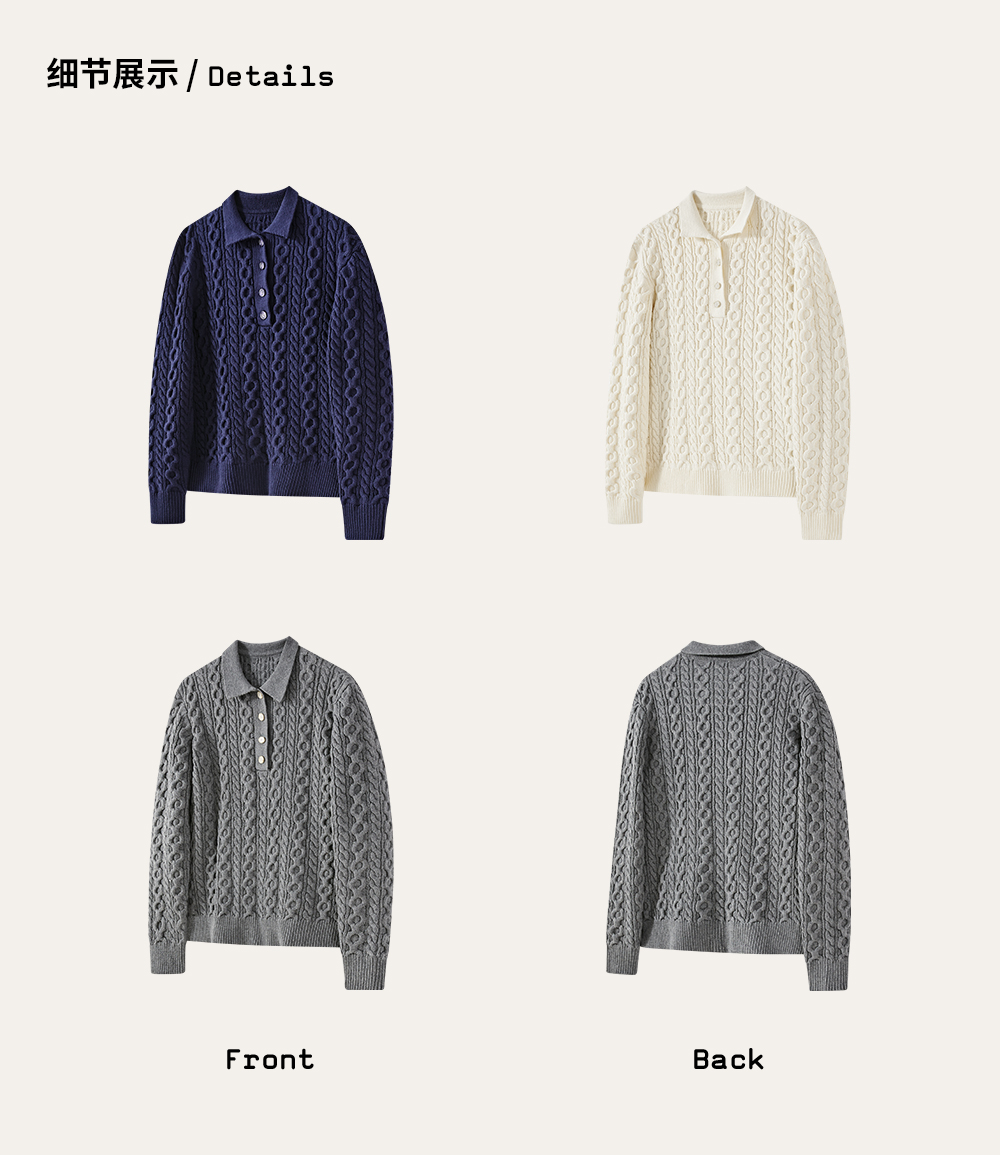KREATE Twist Lapel Three-dimensional Twisted Polo Sweater