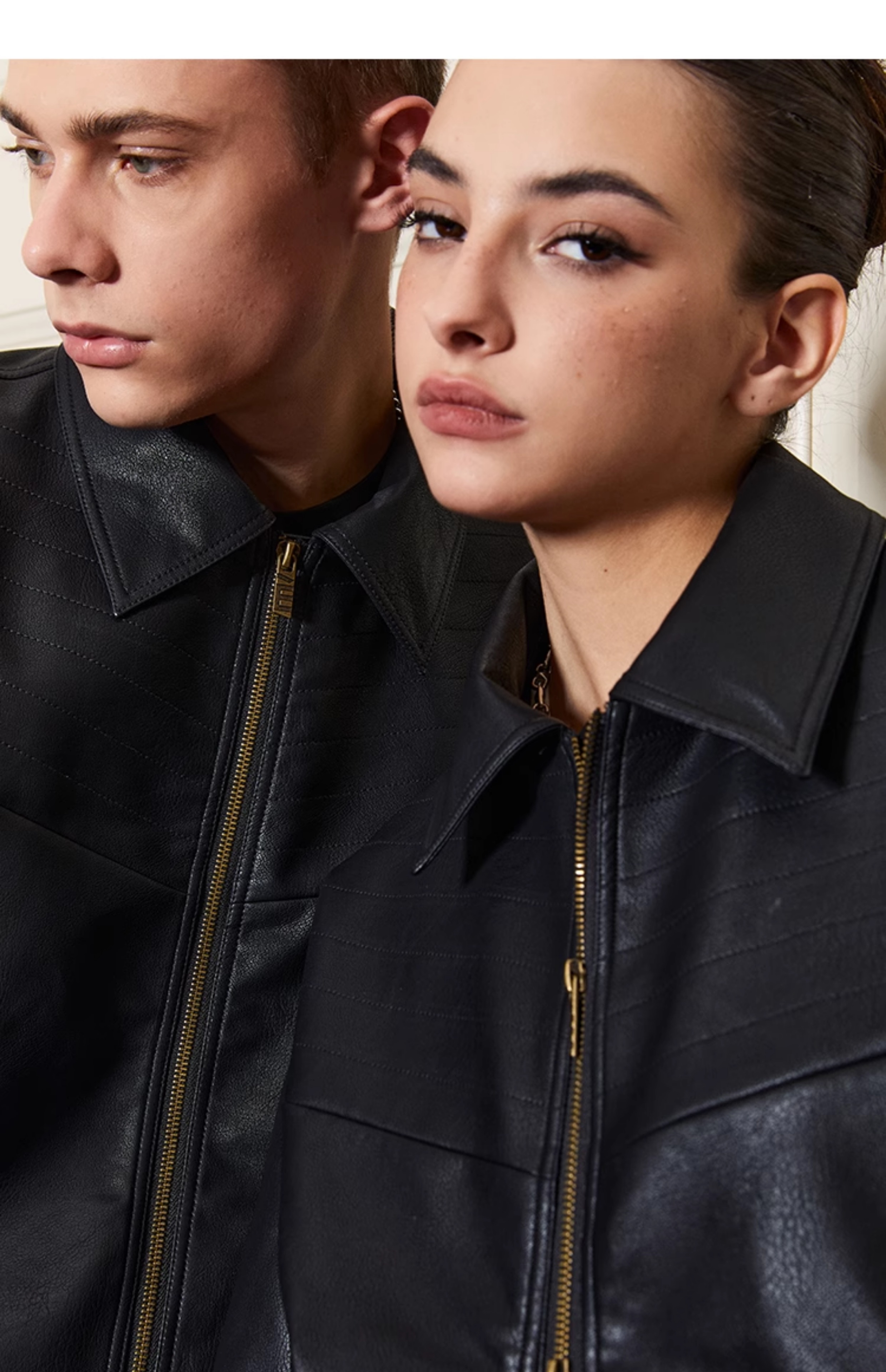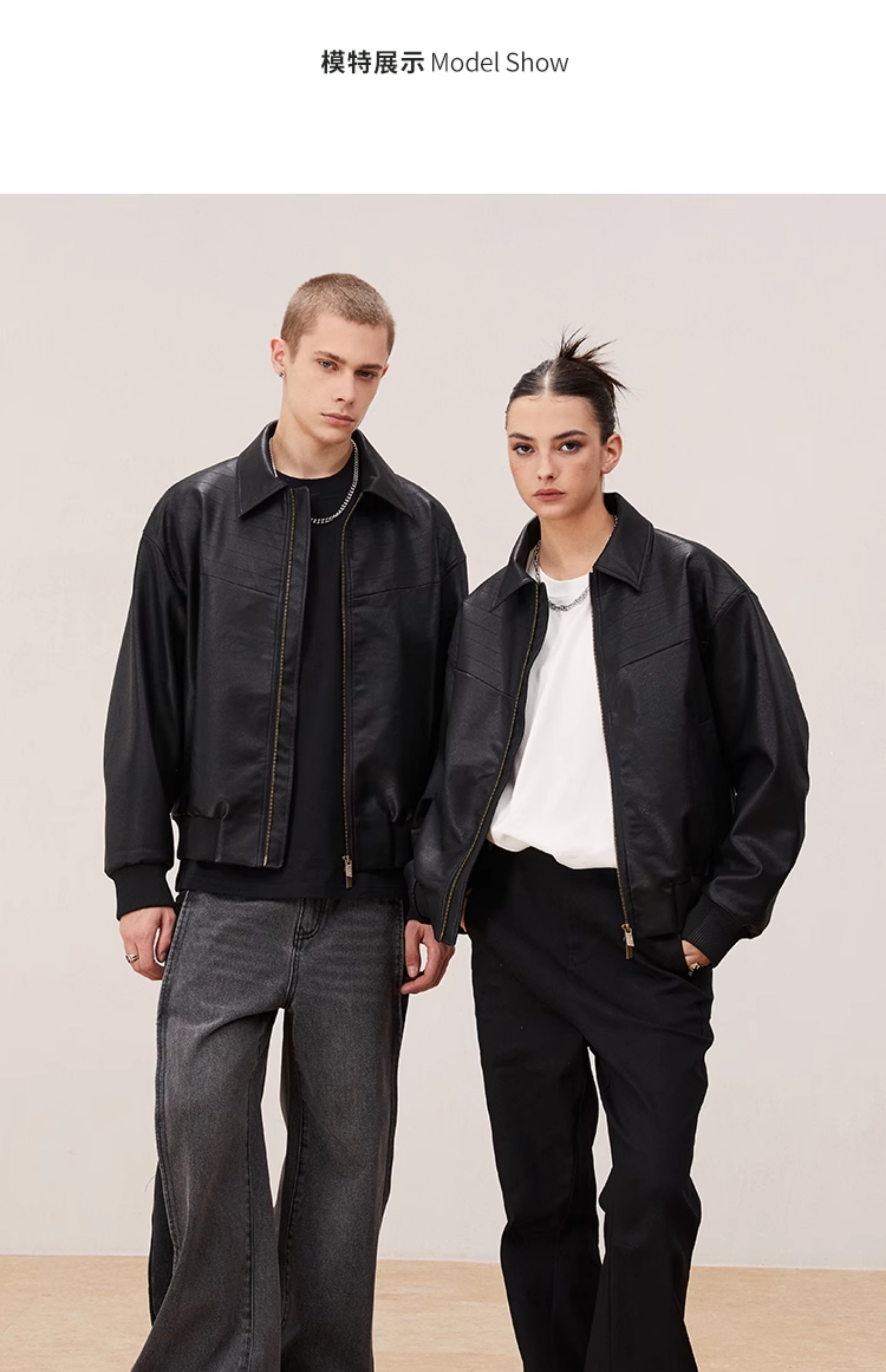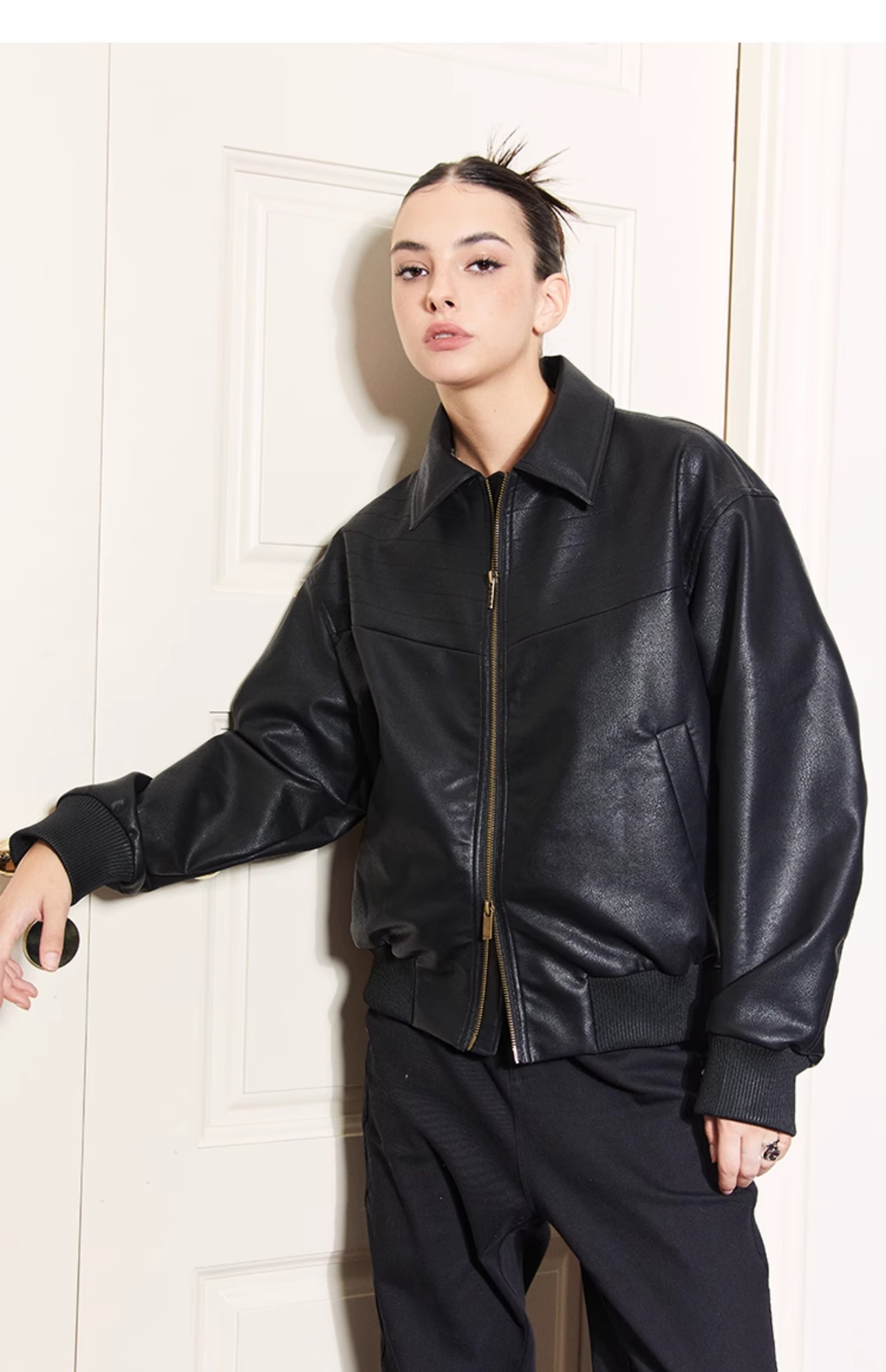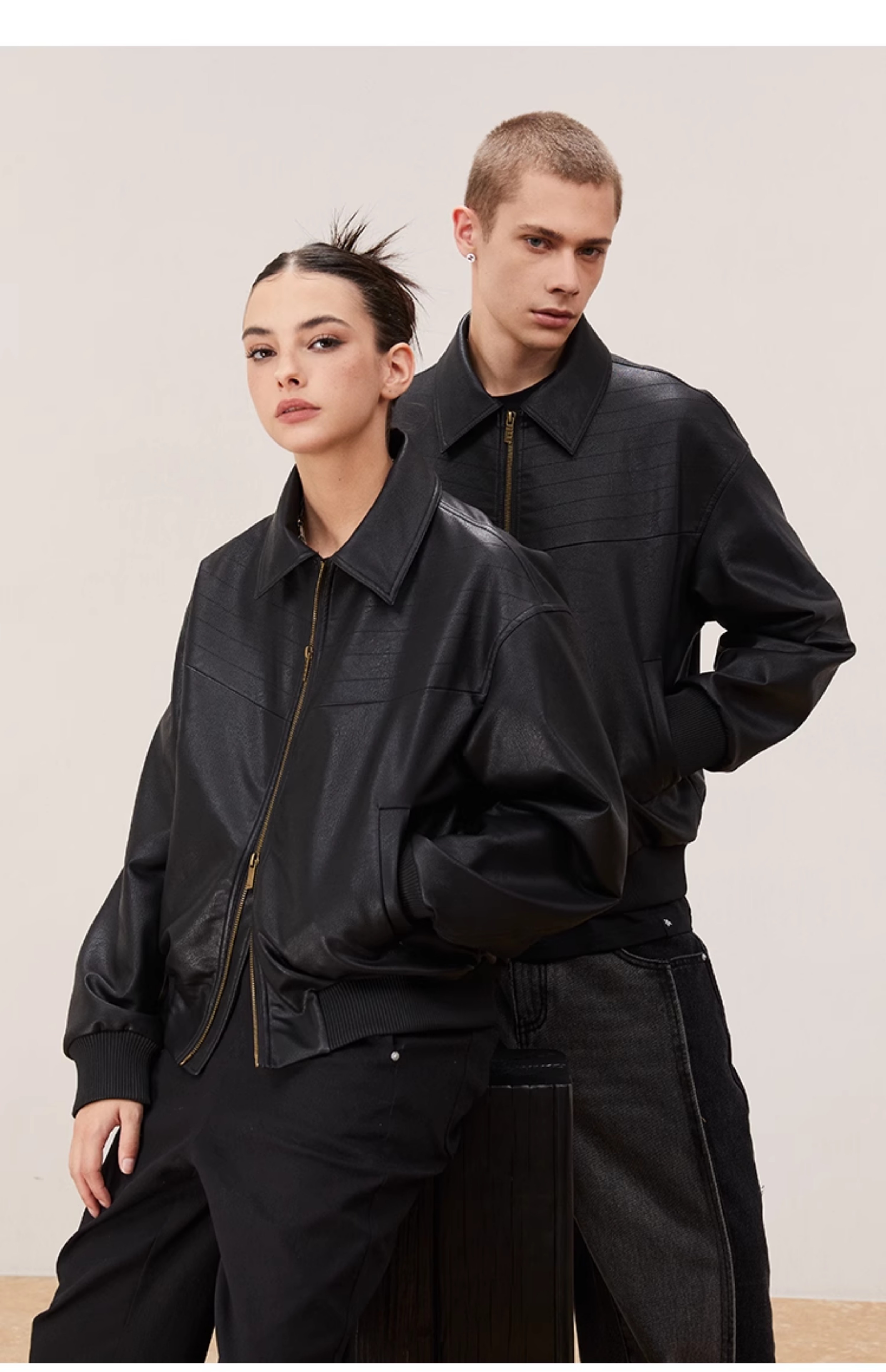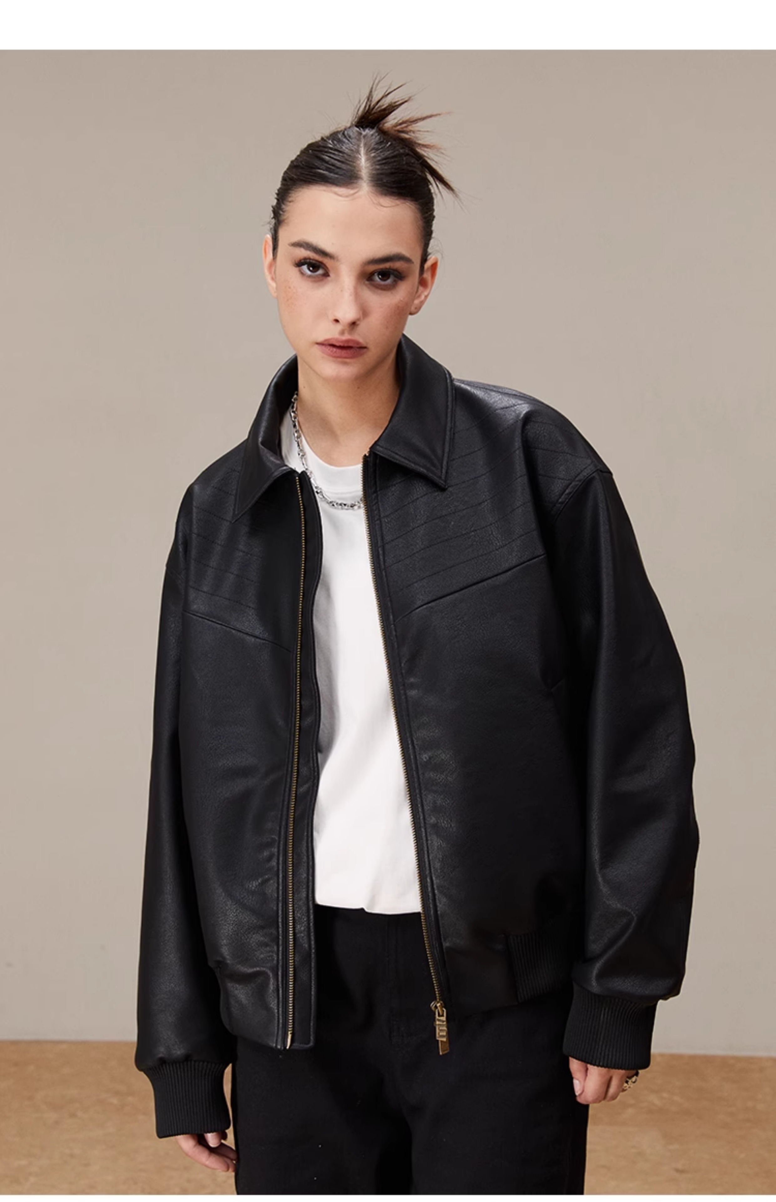 KREATE Vintage Matte Textured Split Shoulder Pu Leather Jacket
