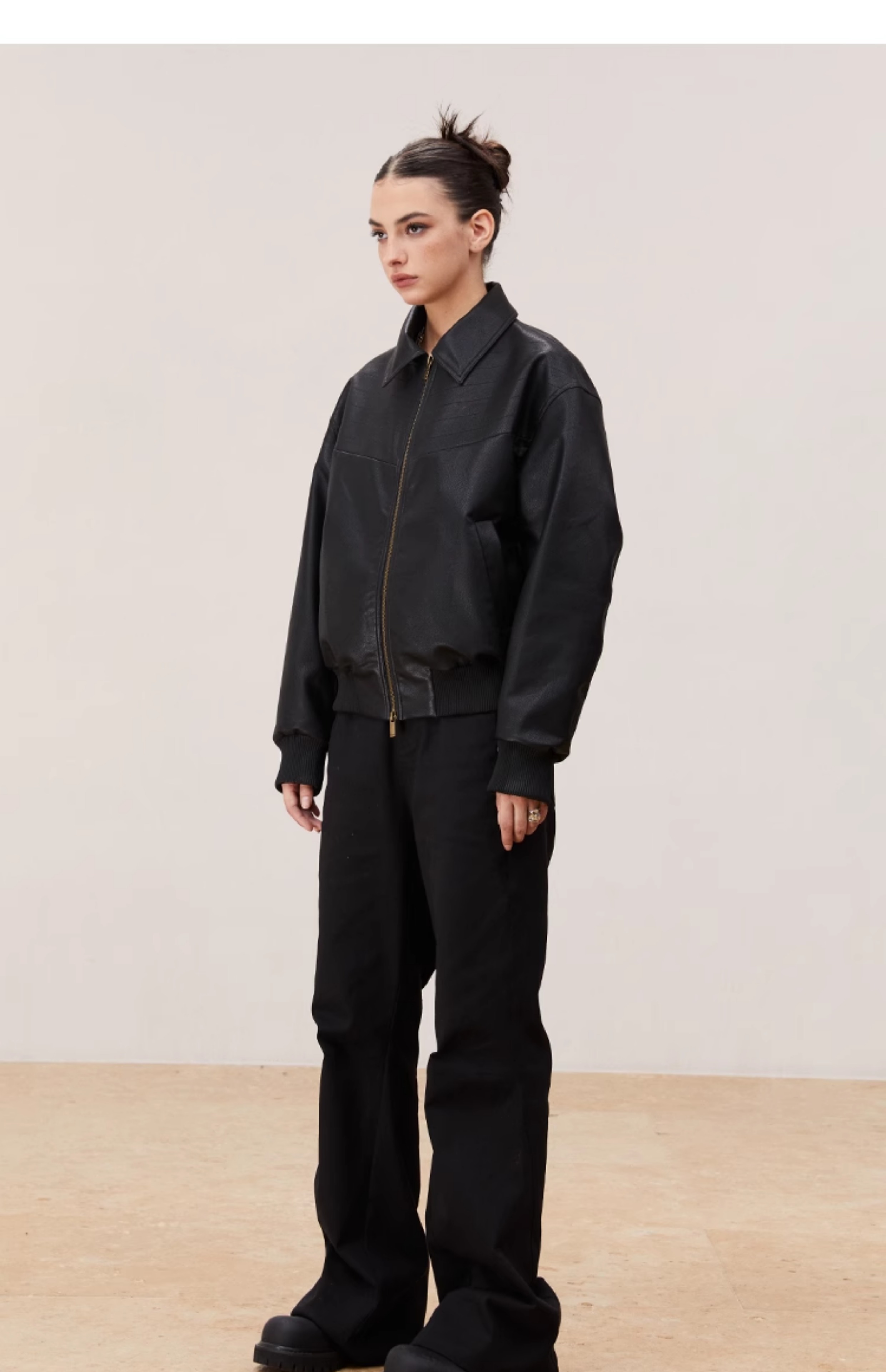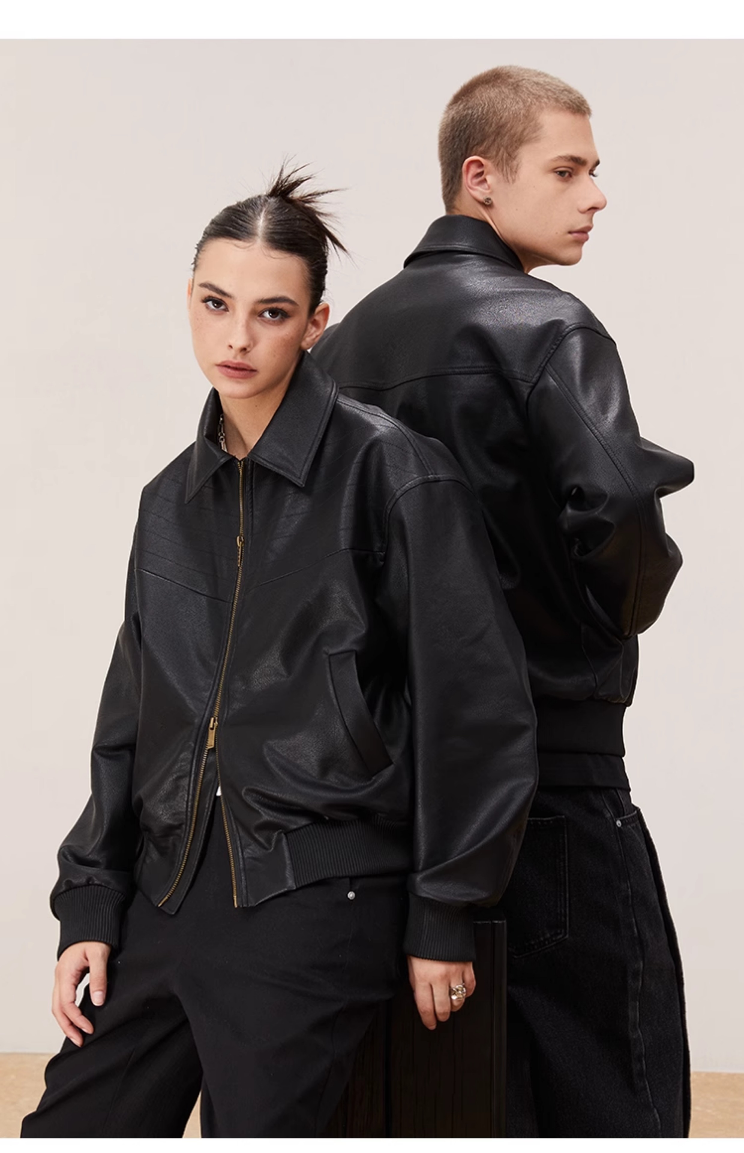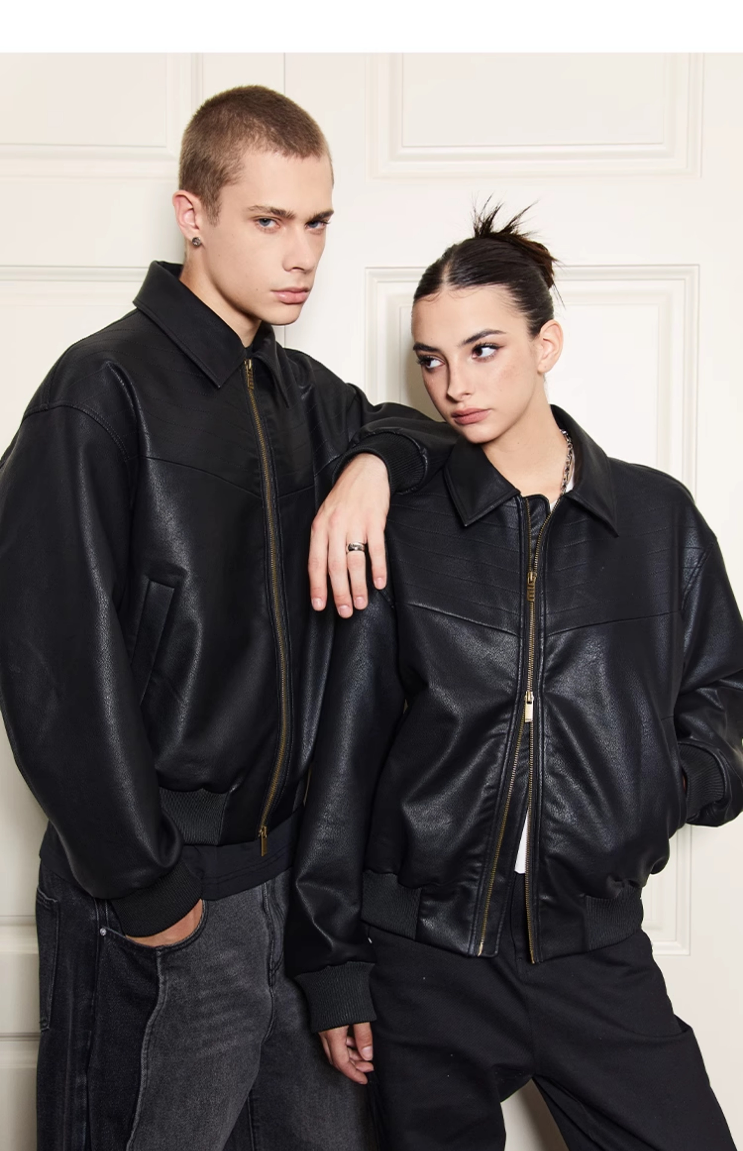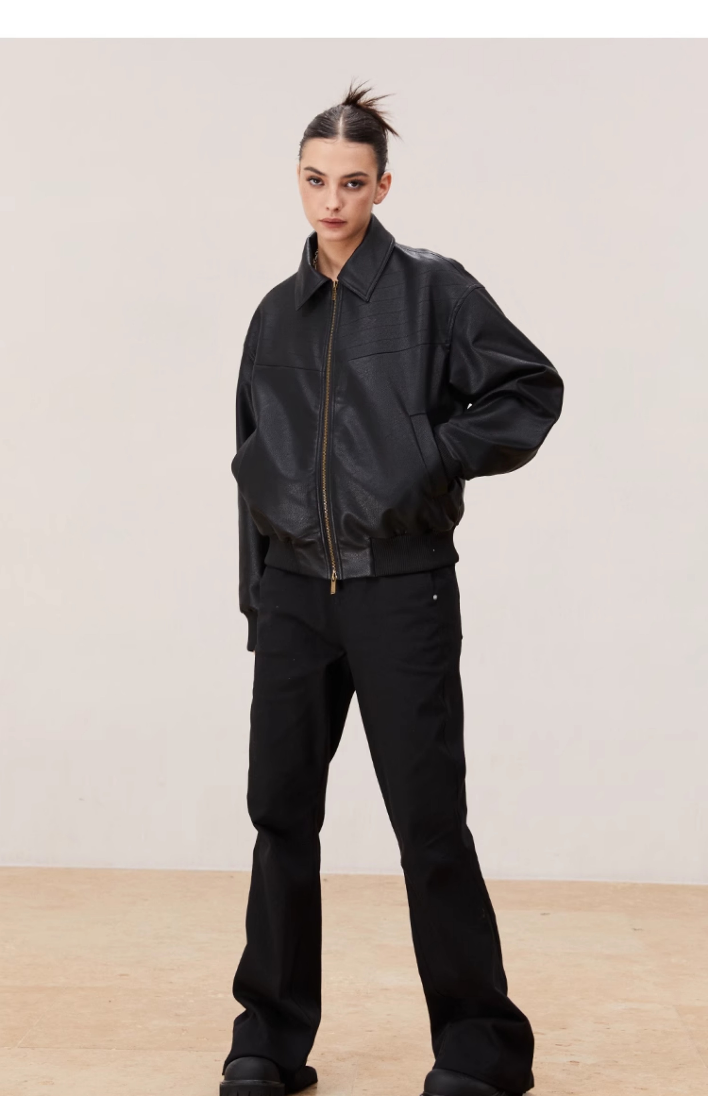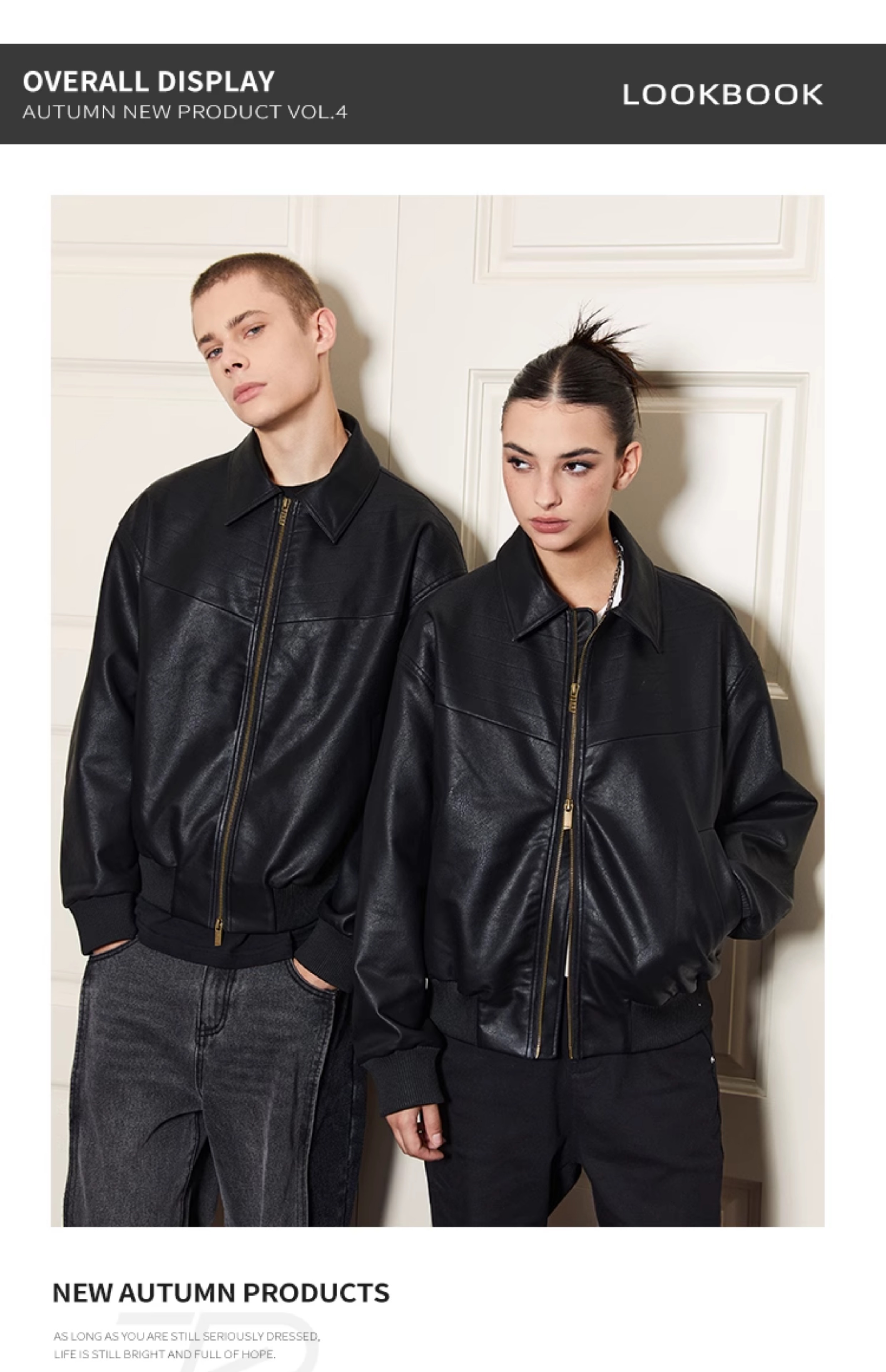 KREATE Vintage Matte Textured Split Shoulder Pu Leather Jacket