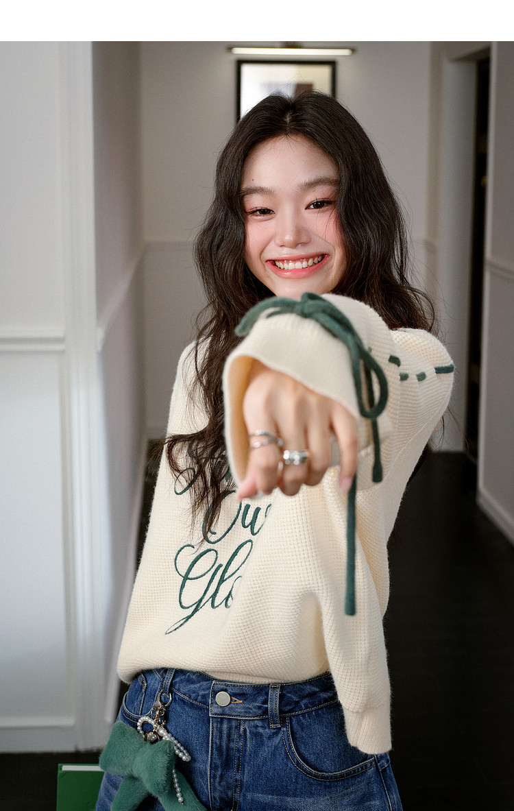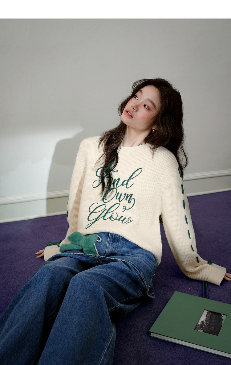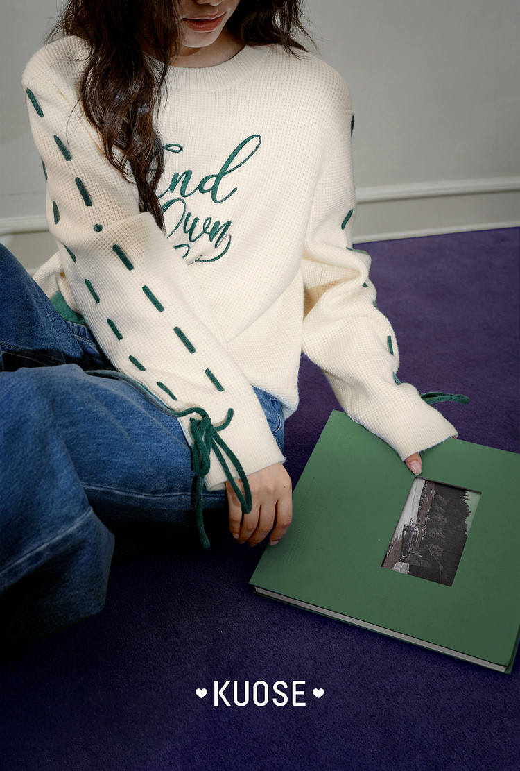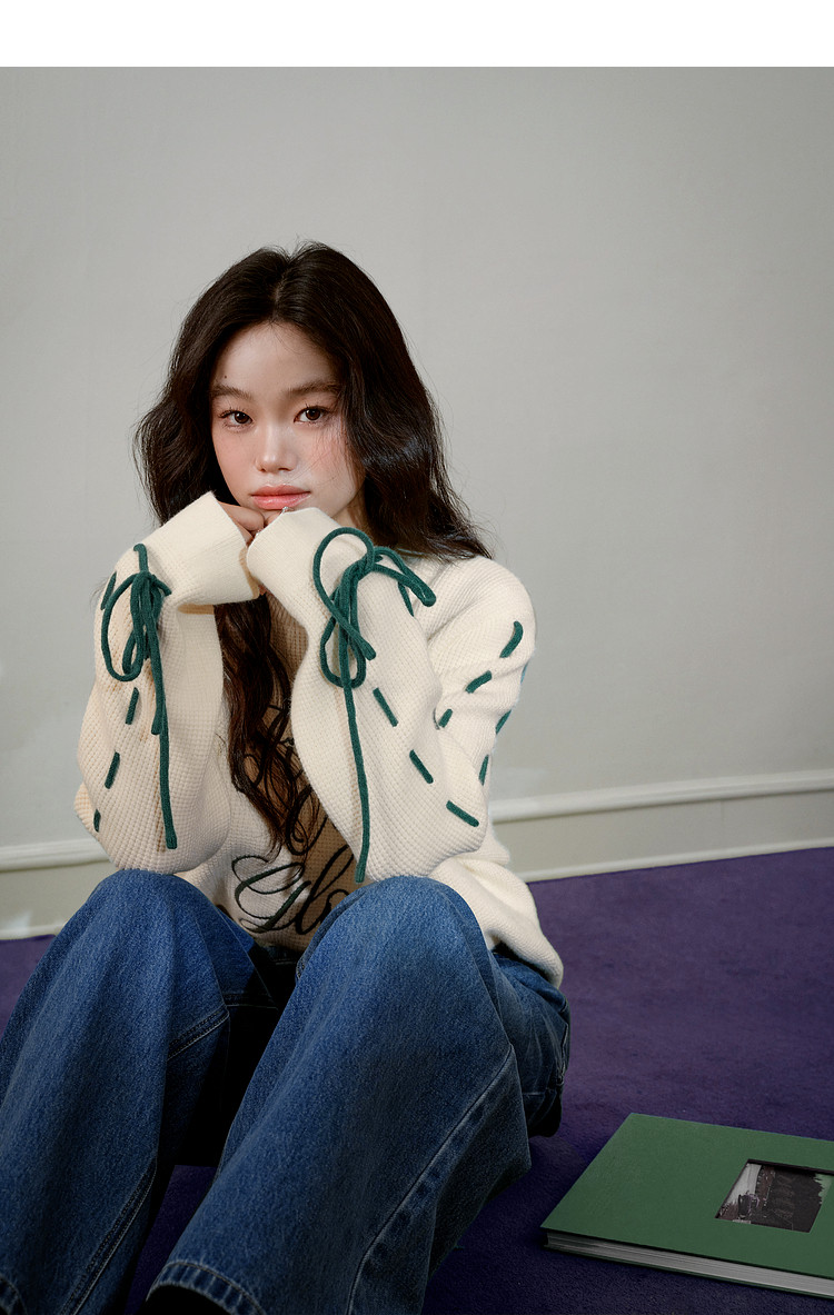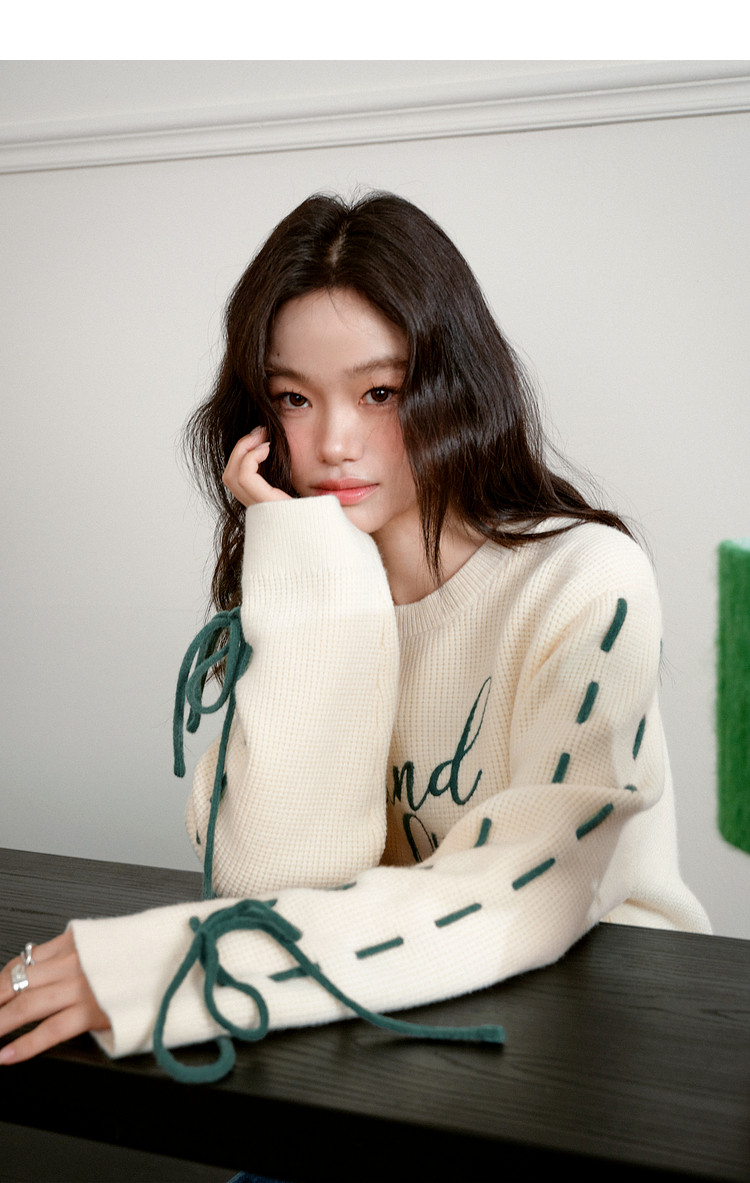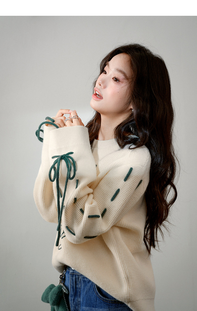 Kuose Bow Design Sense Embroidered Long Sleeve Knit