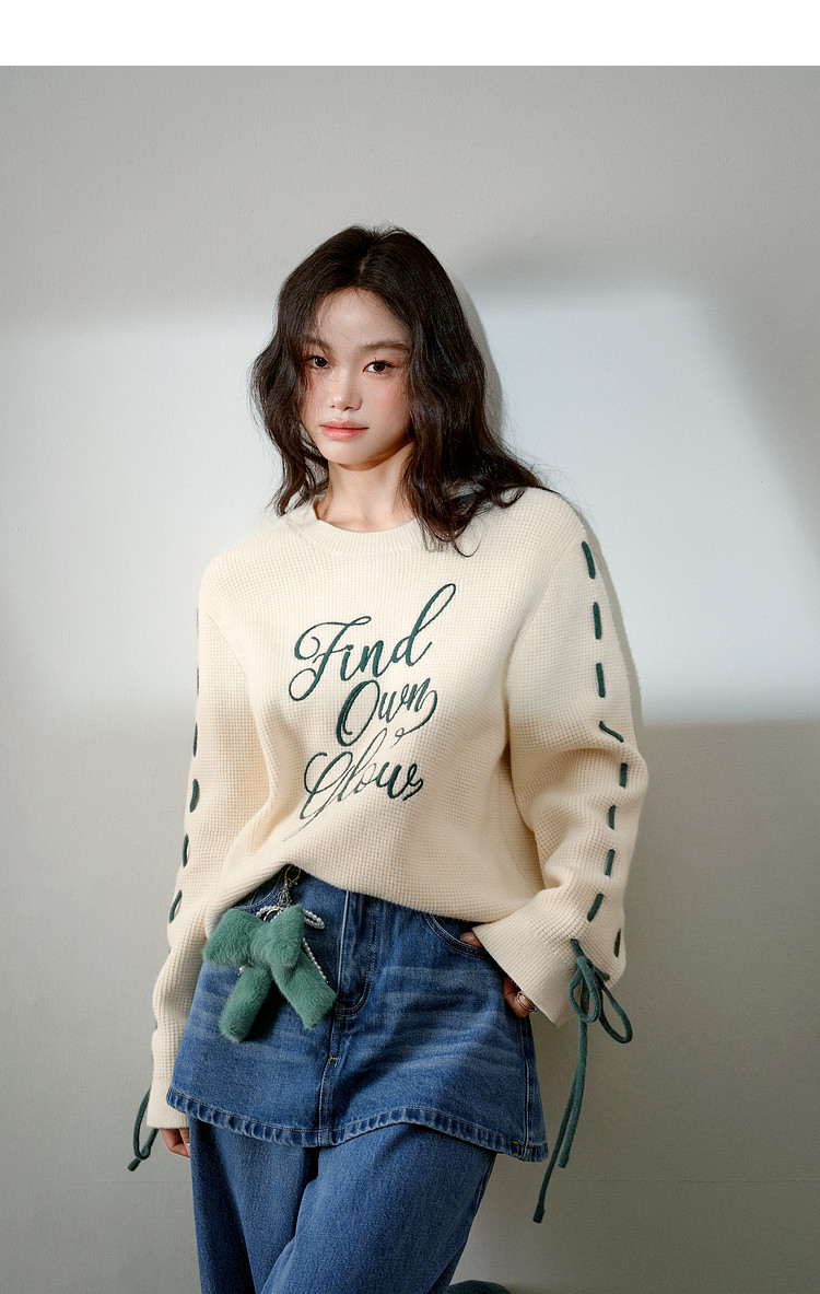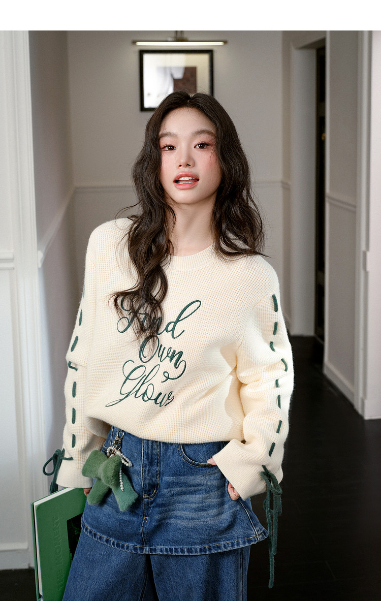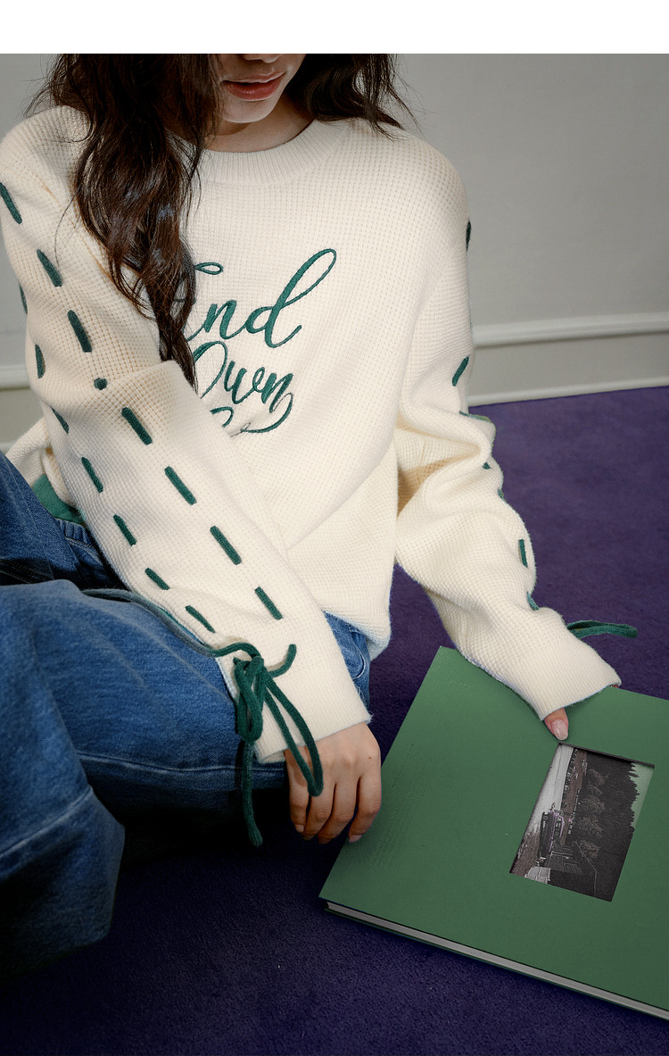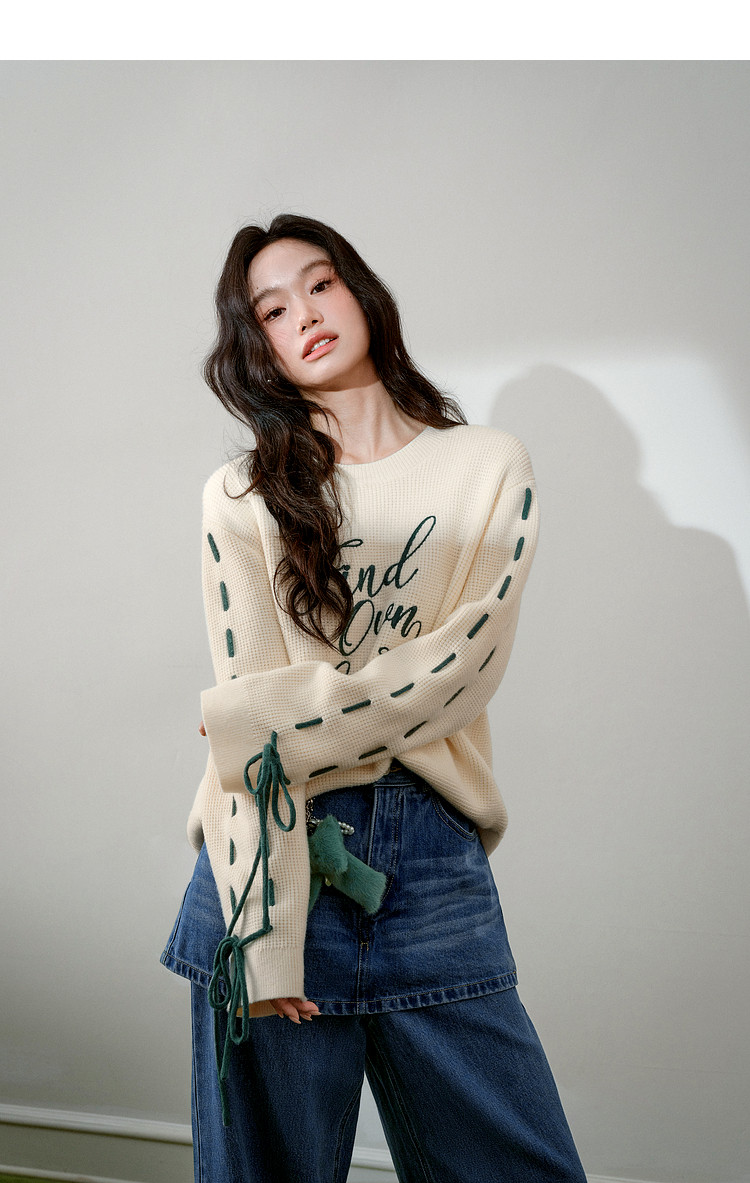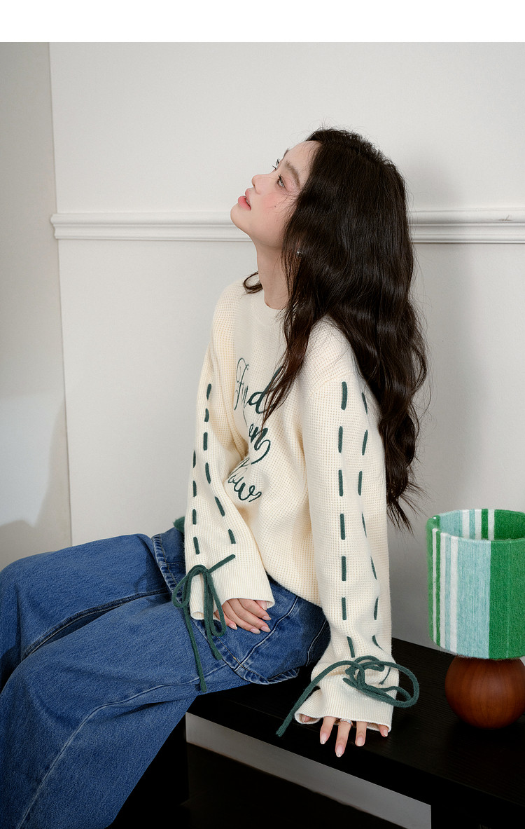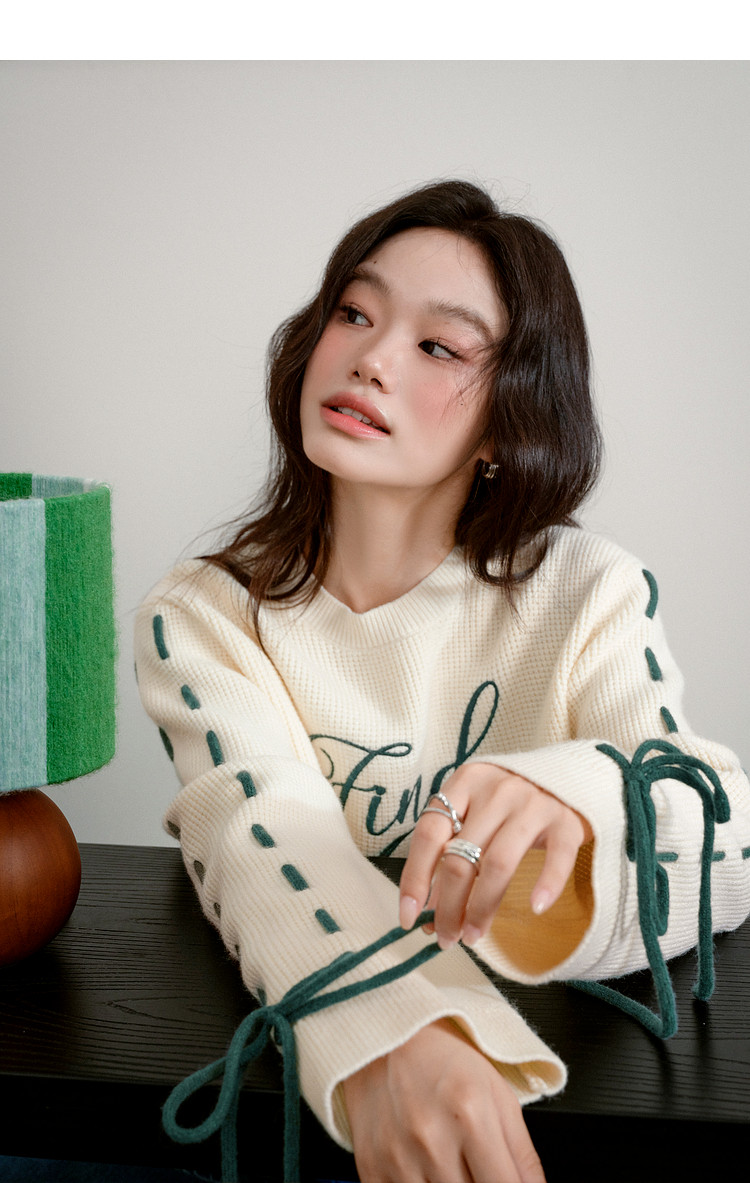 Kuose Bow Design Sense Embroidered Long Sleeve Knit