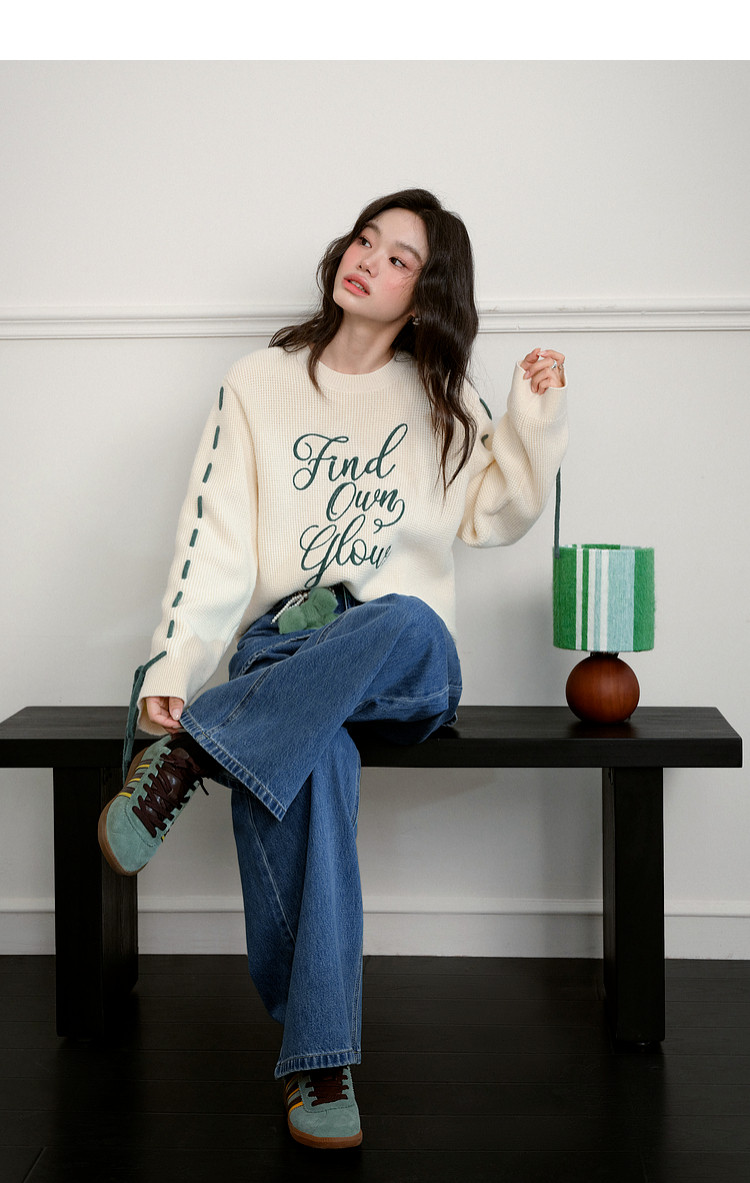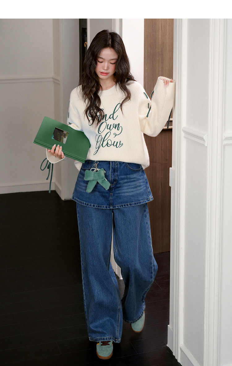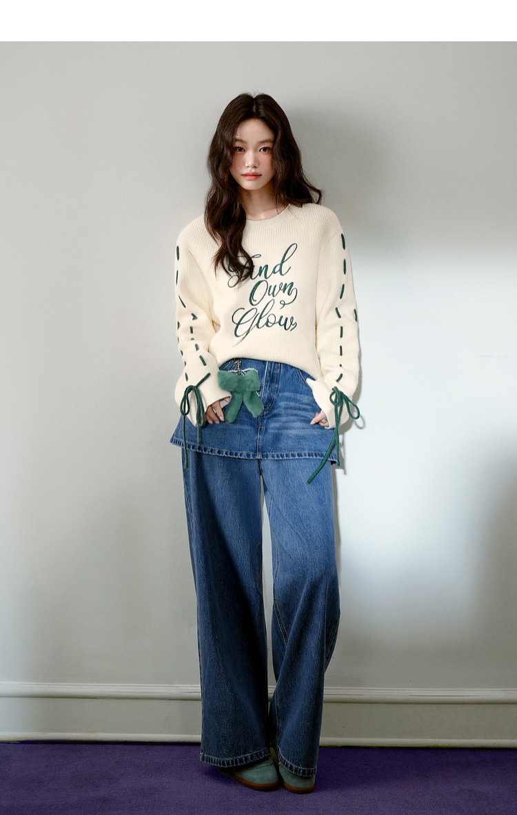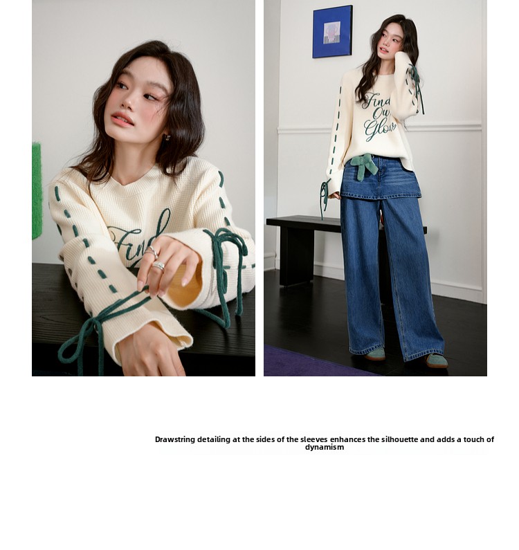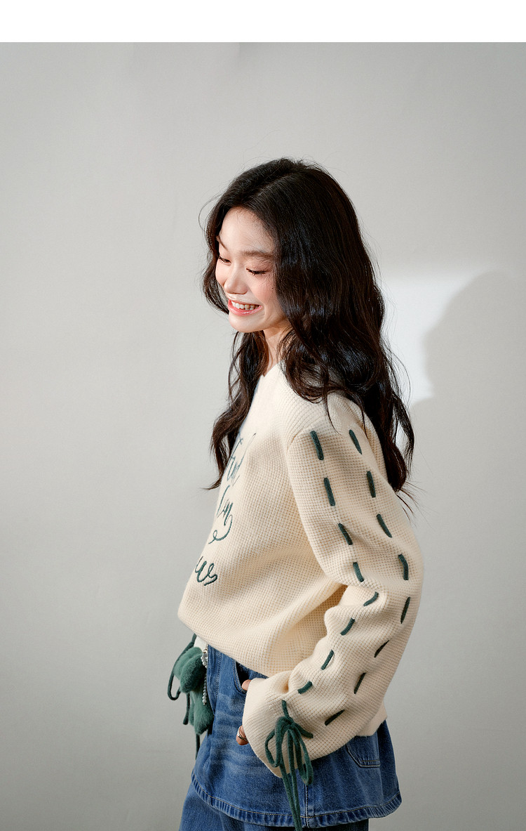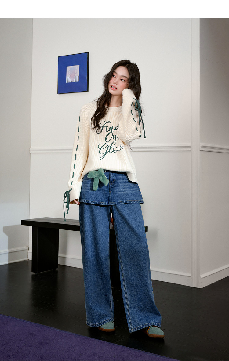 Kuose Bow Design Sense Embroidered Long Sleeve Knit