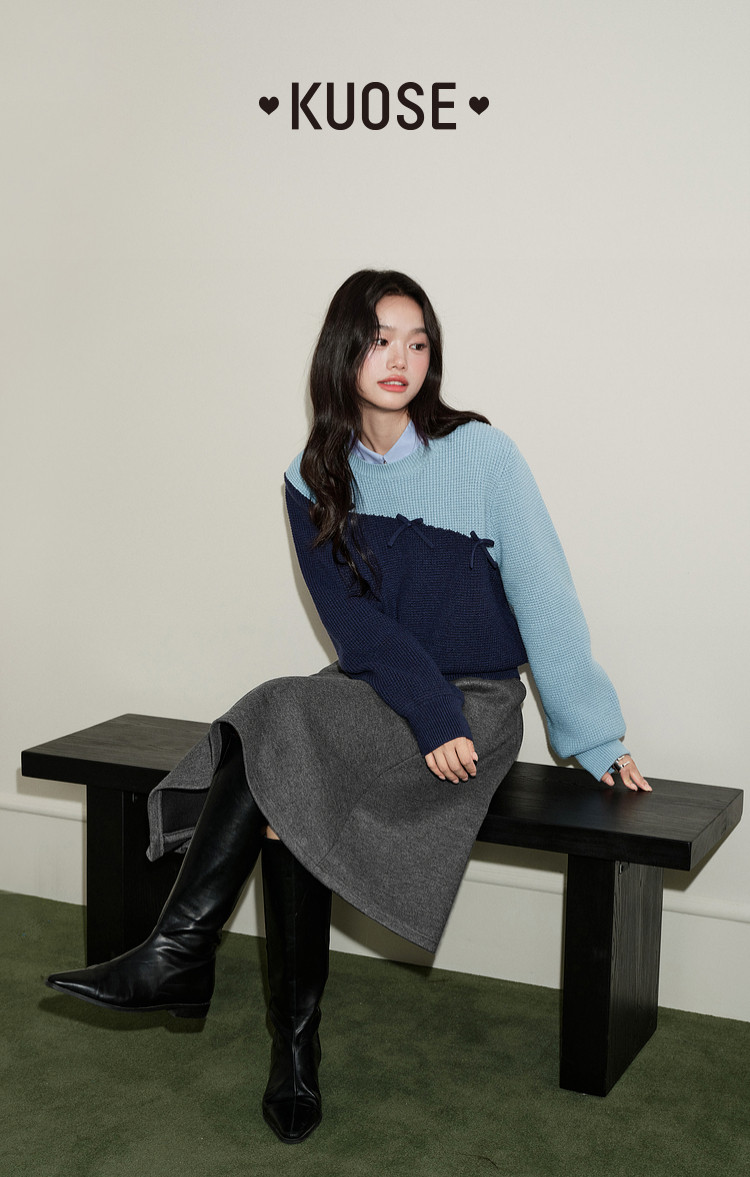 Kuose Color-blocking Long-sleeved Sweater Knit