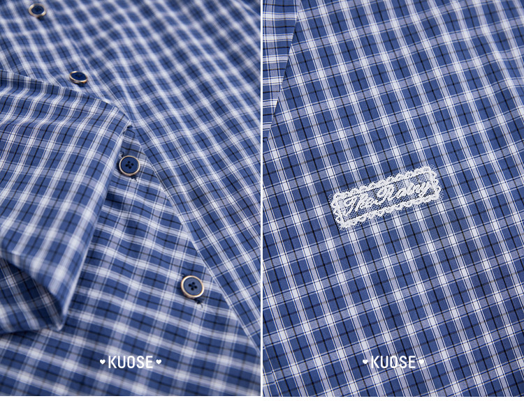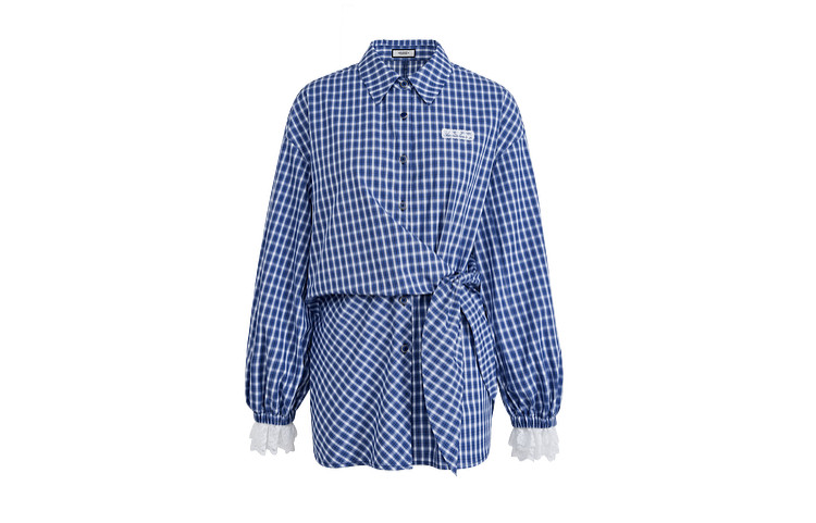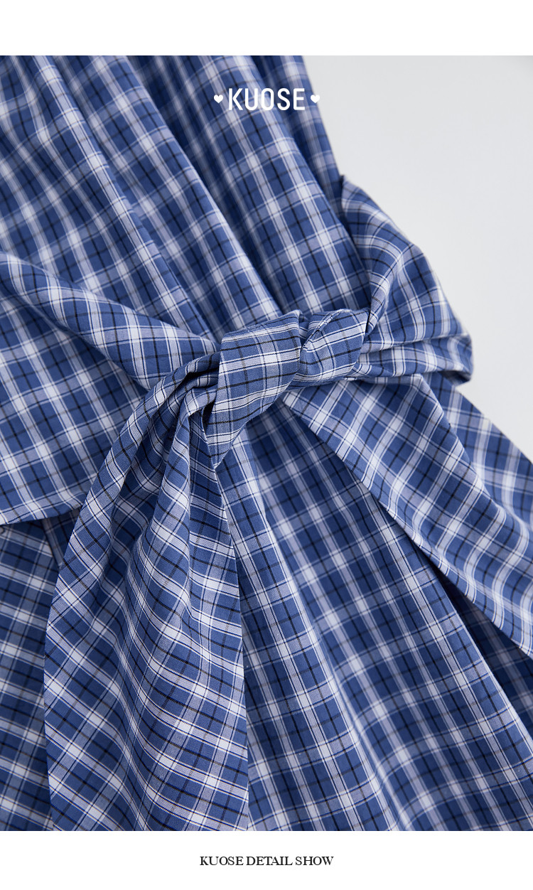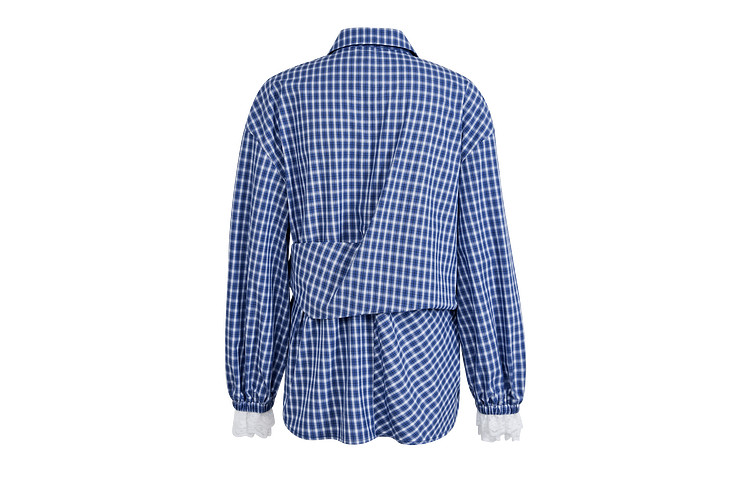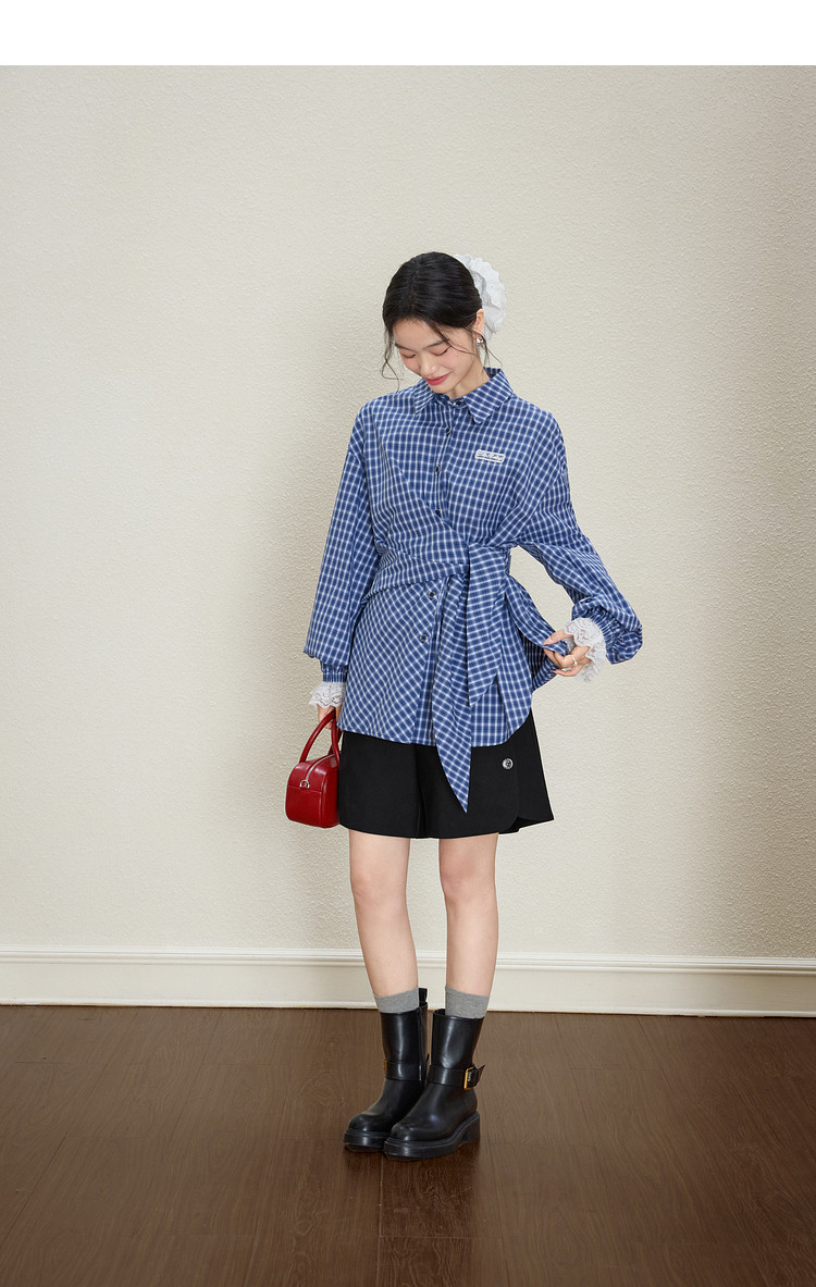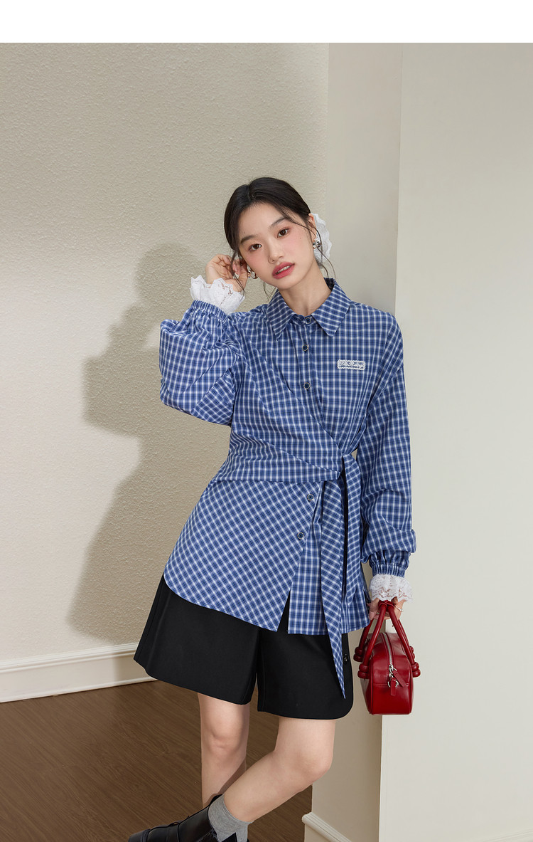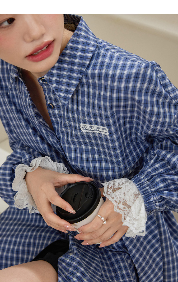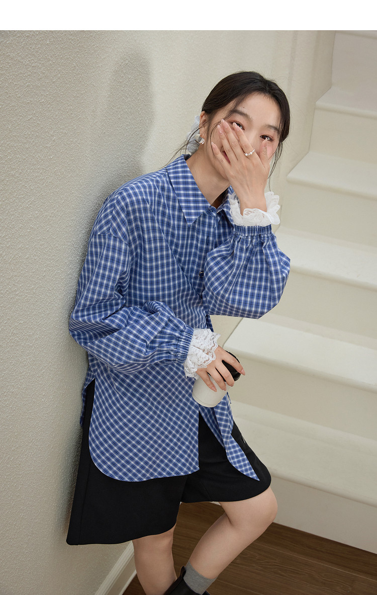 Kuose Lace Patchwork Waist Plaid Shirt