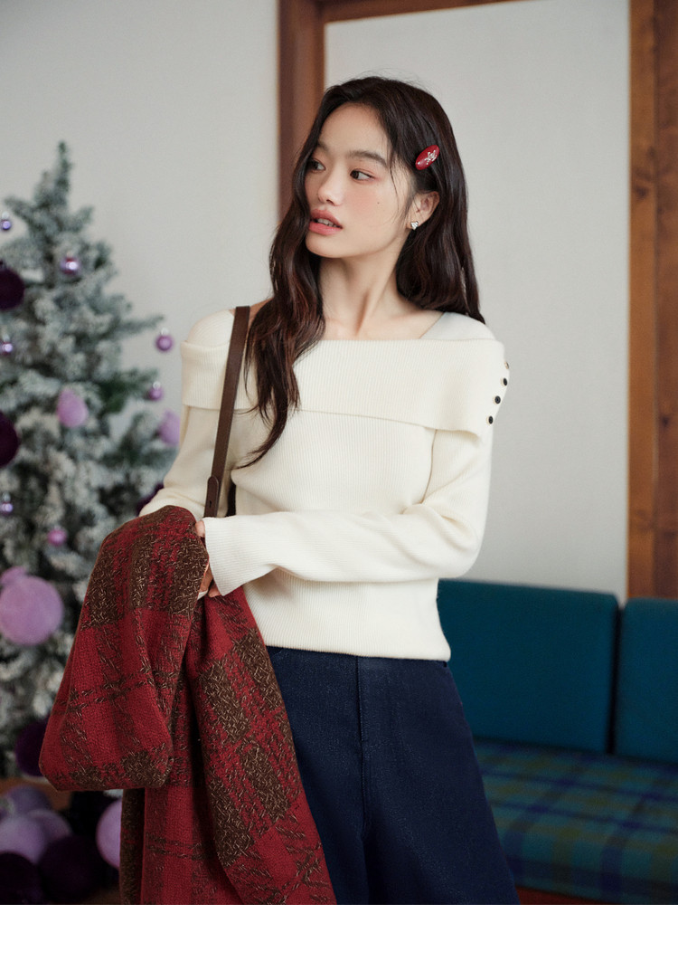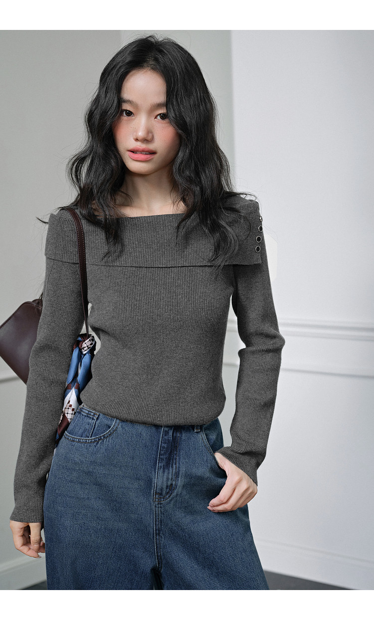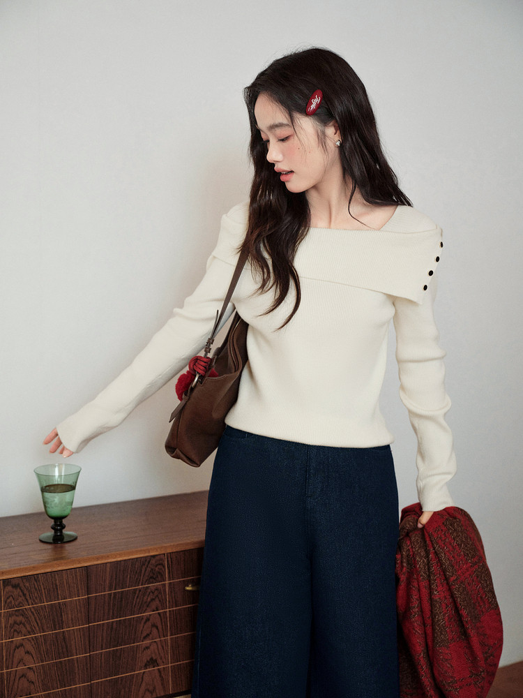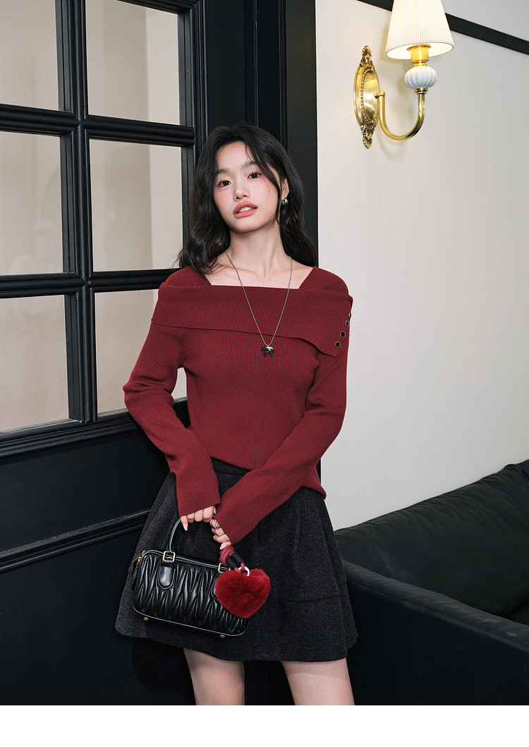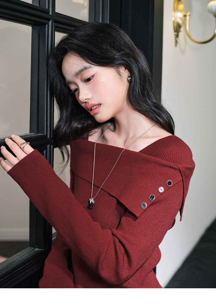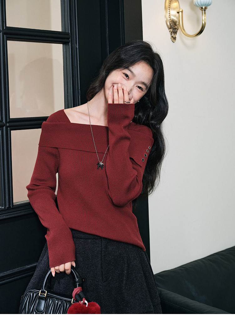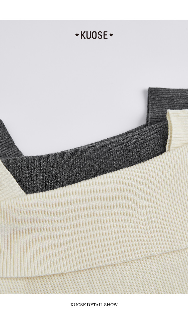 Kuose One-word Shoulder Thin Long-sleeved Knitted Sweater