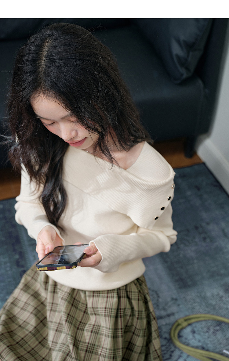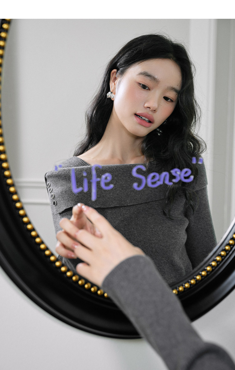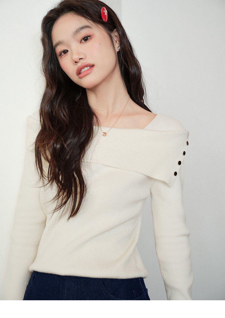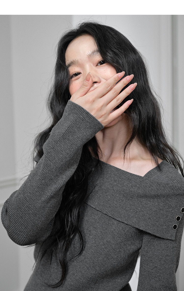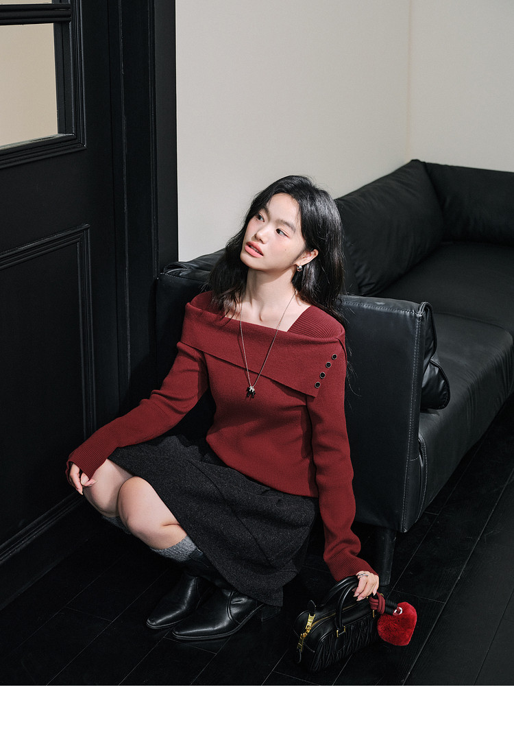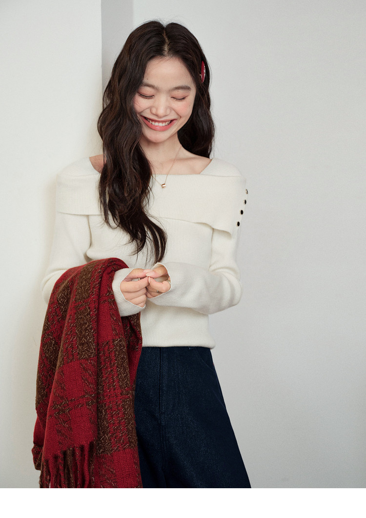 Kuose One-word Shoulder Thin Long-sleeved Knitted Sweater