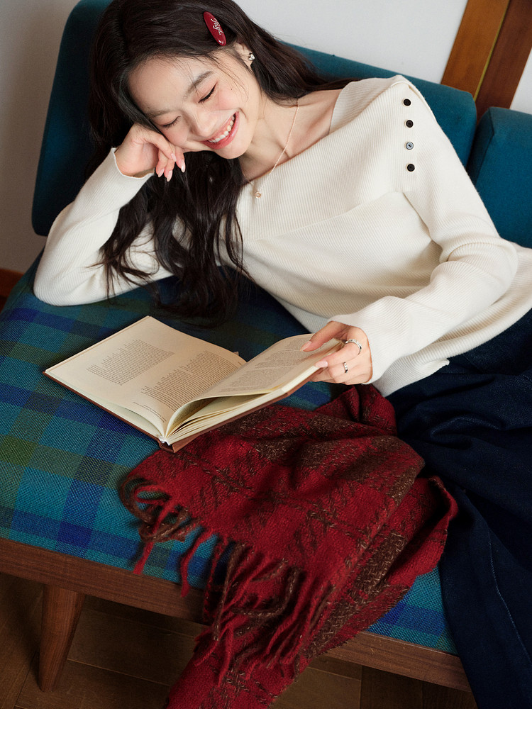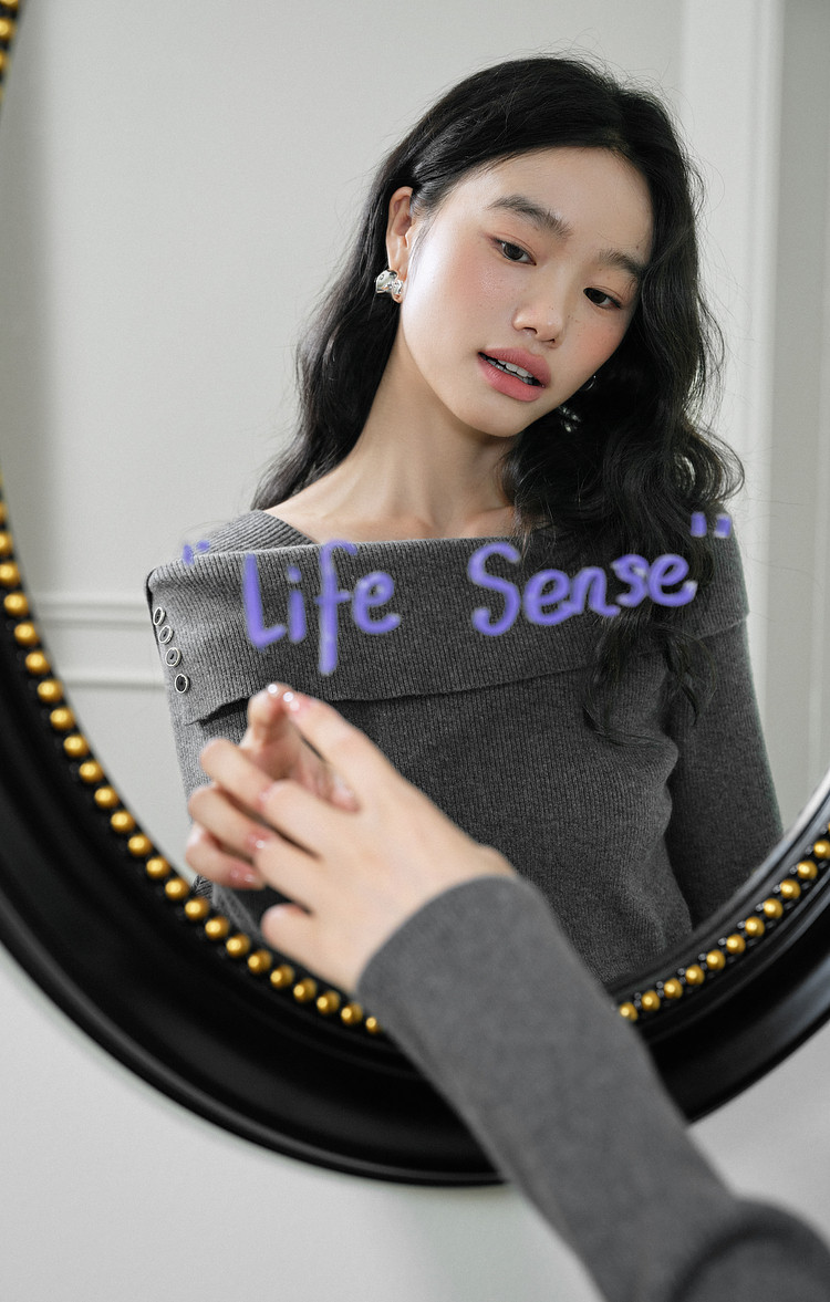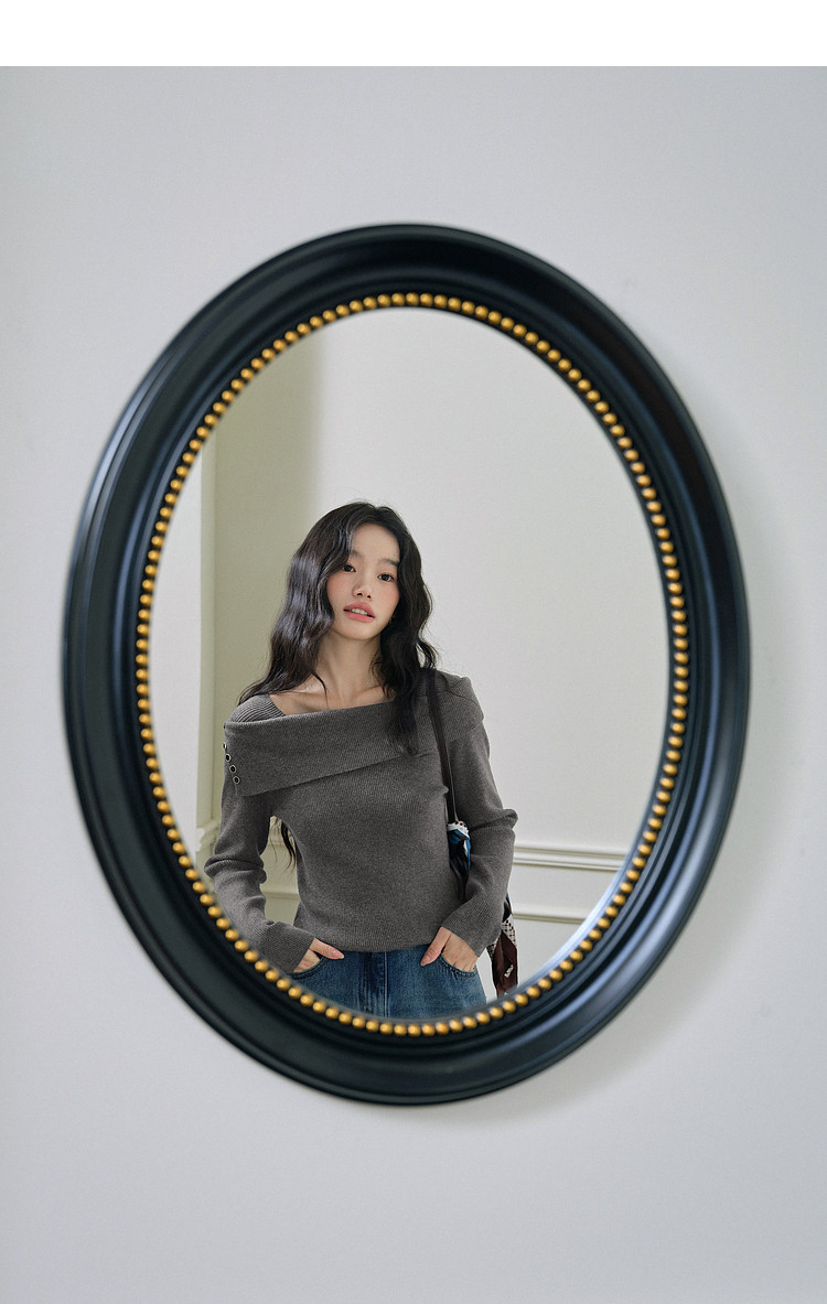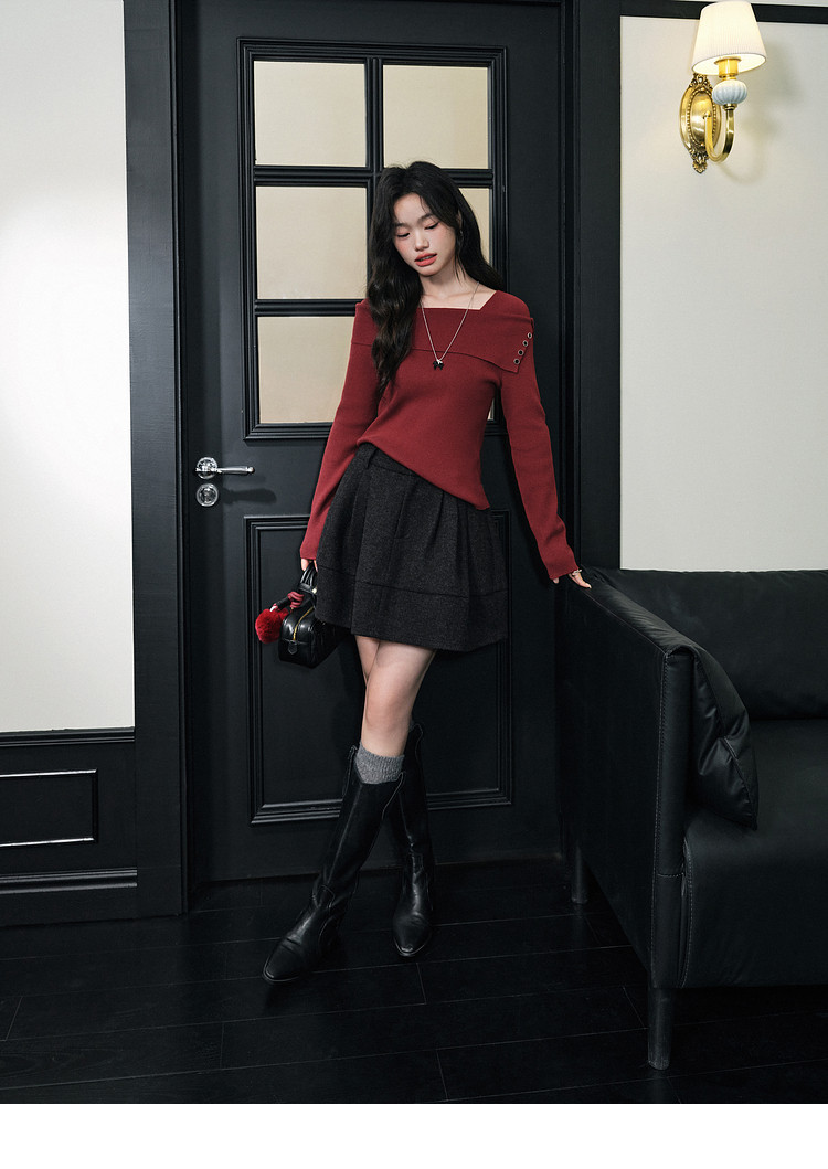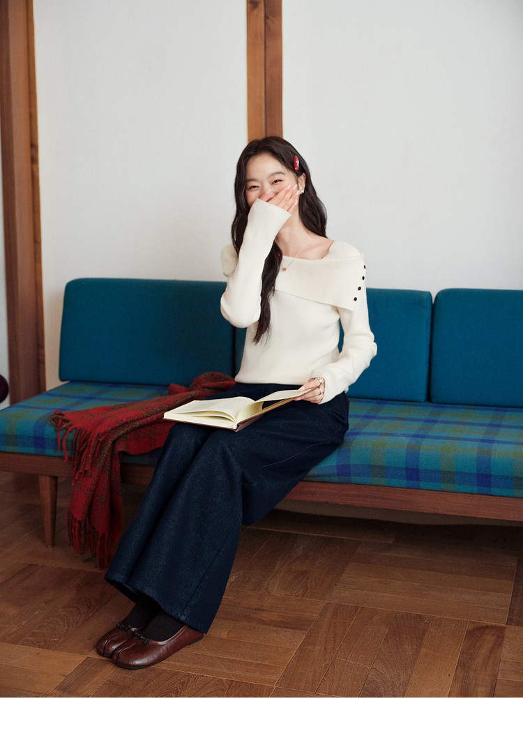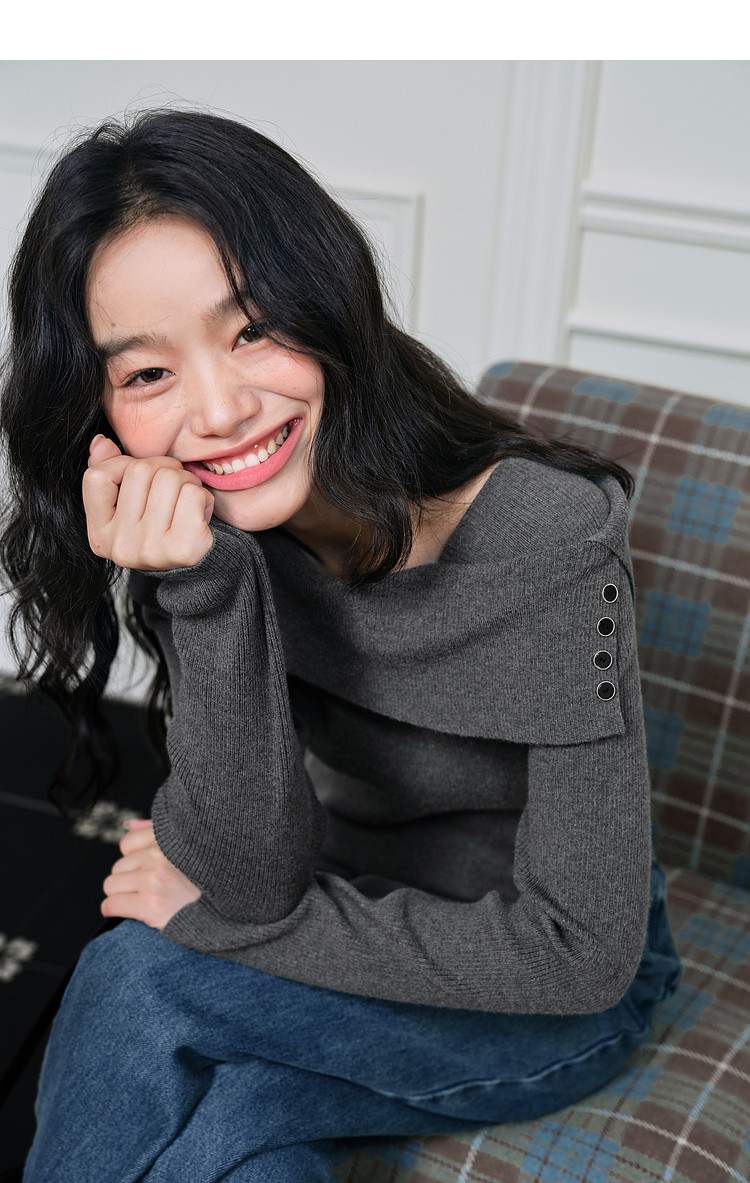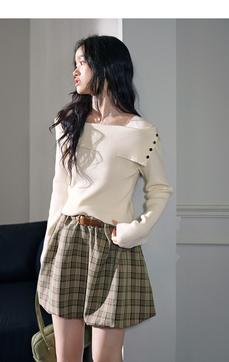 Kuose One-word Shoulder Thin Long-sleeved Knitted Sweater