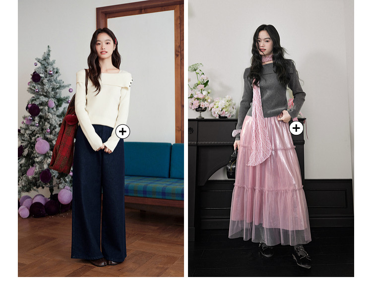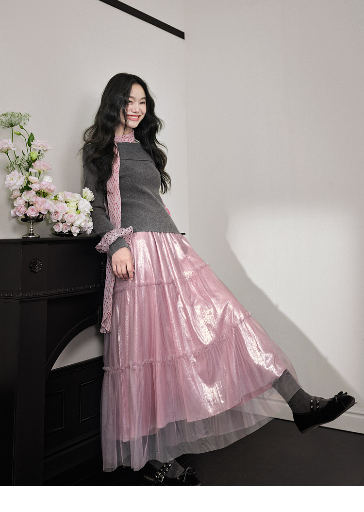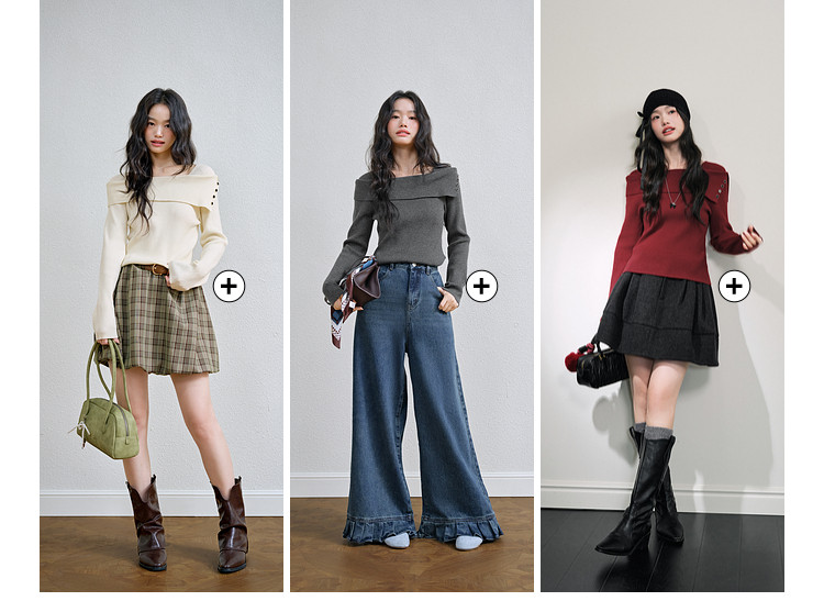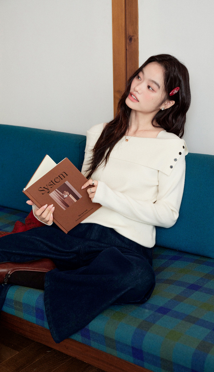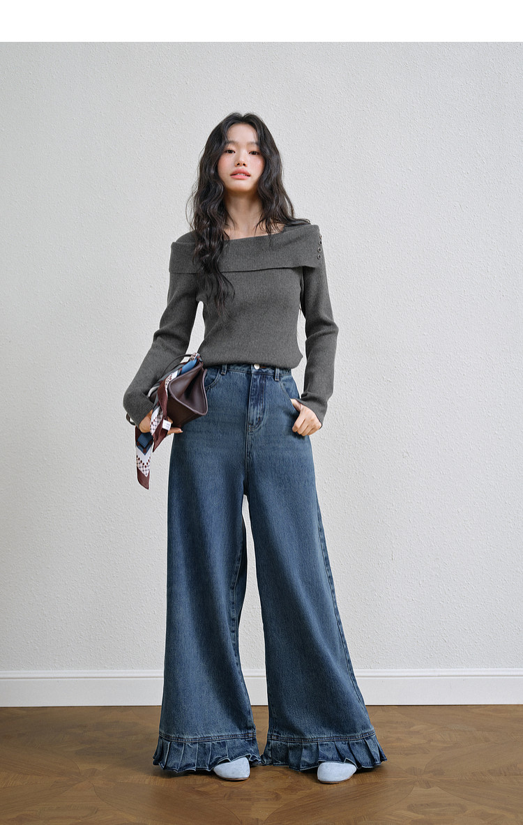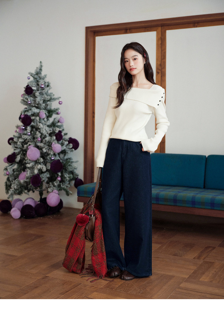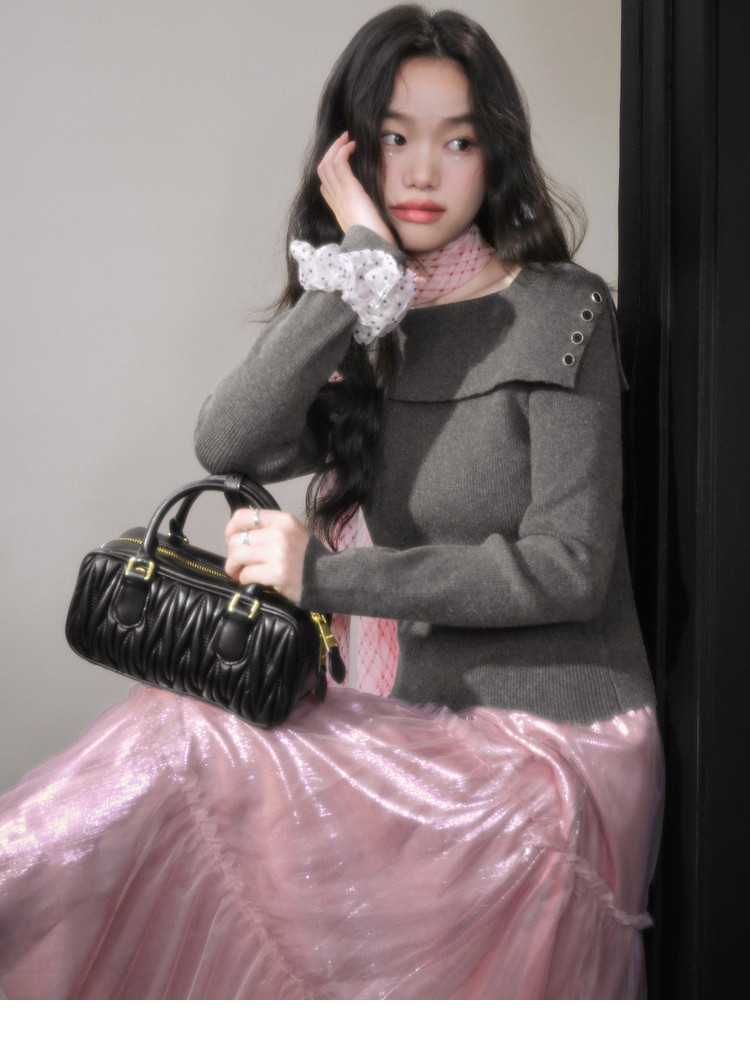 Kuose One-word Shoulder Thin Long-sleeved Knitted Sweater