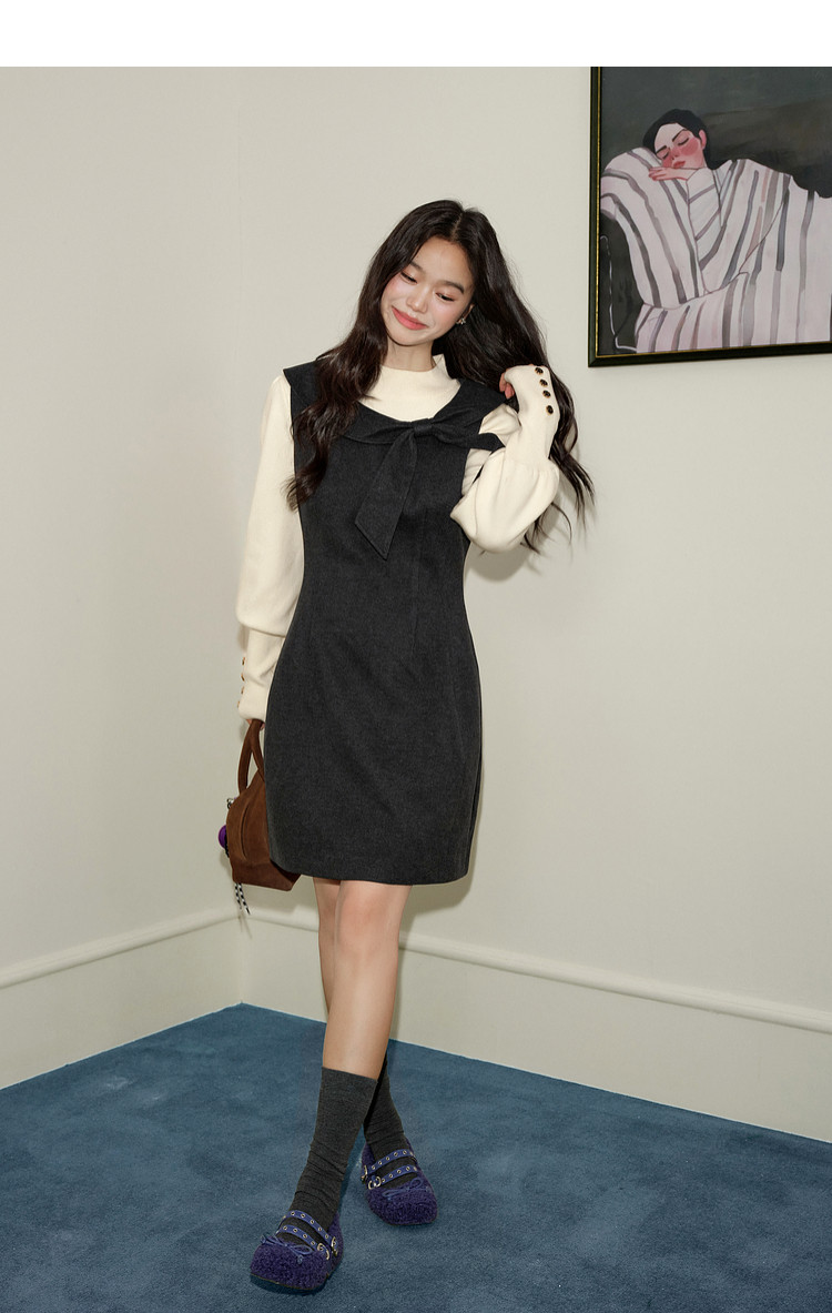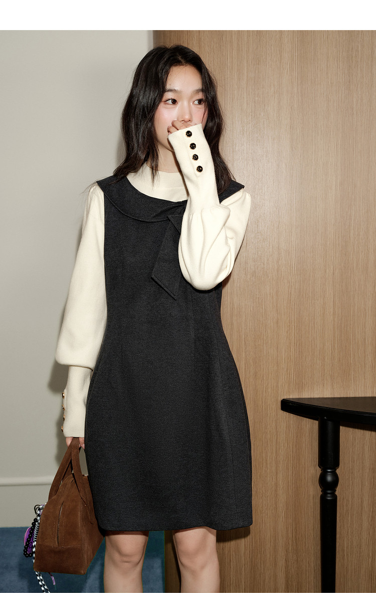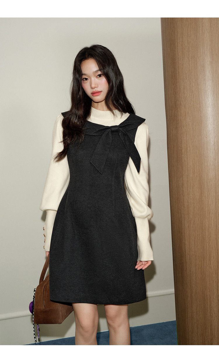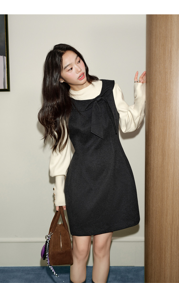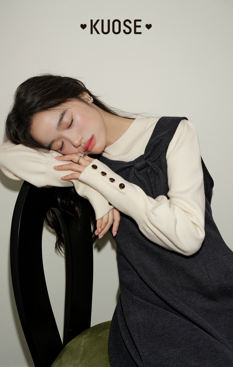 Kuose Waist and Inner Knitted Sweater Dress Two-piece Set
