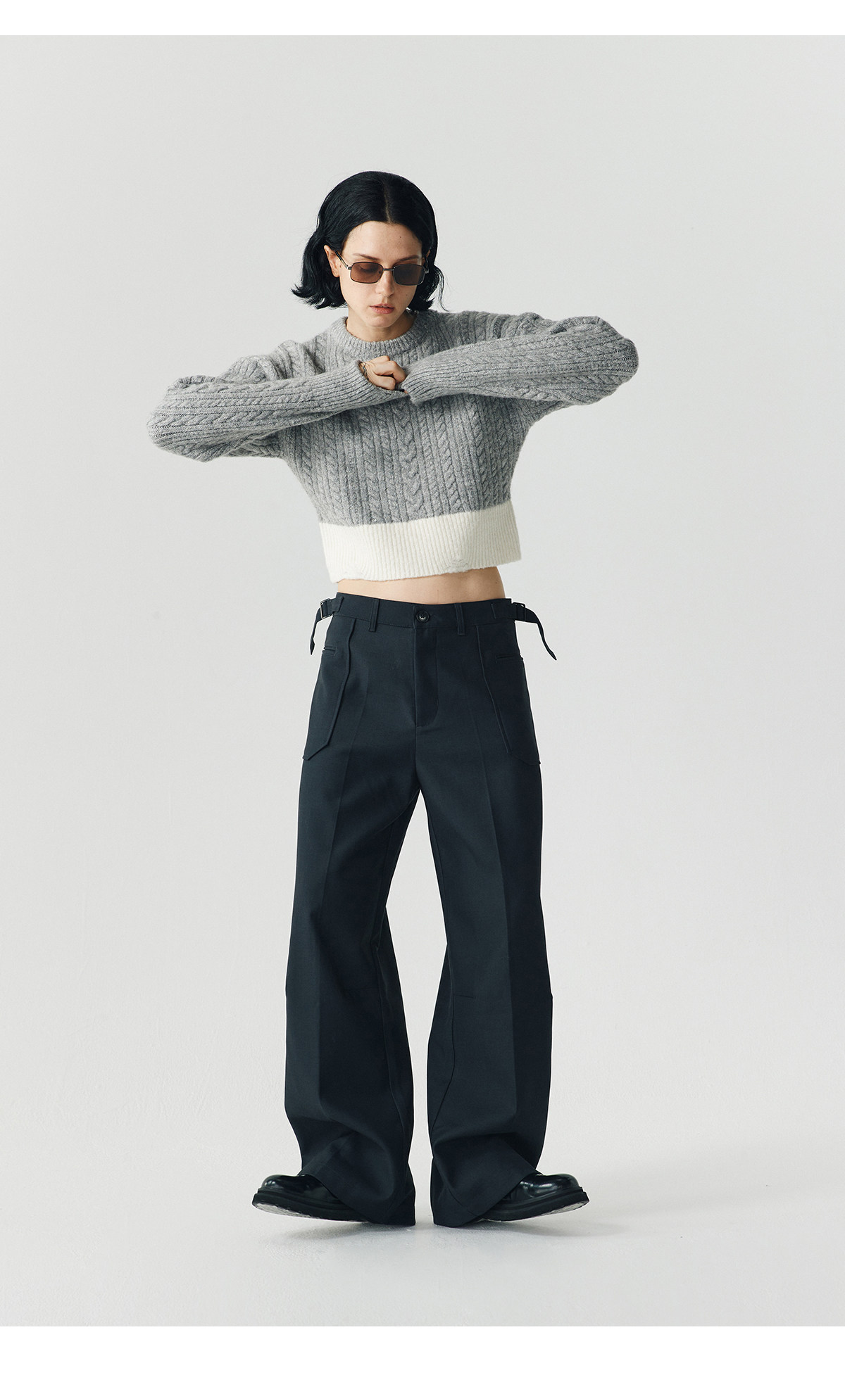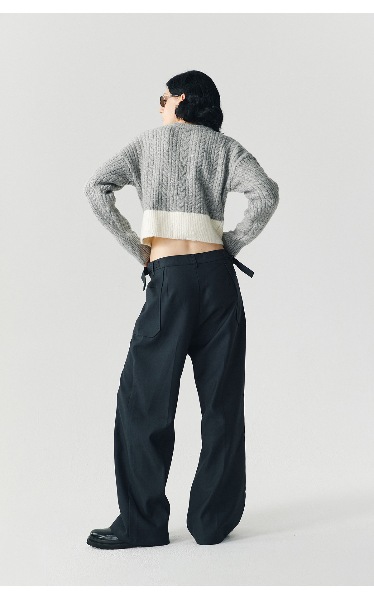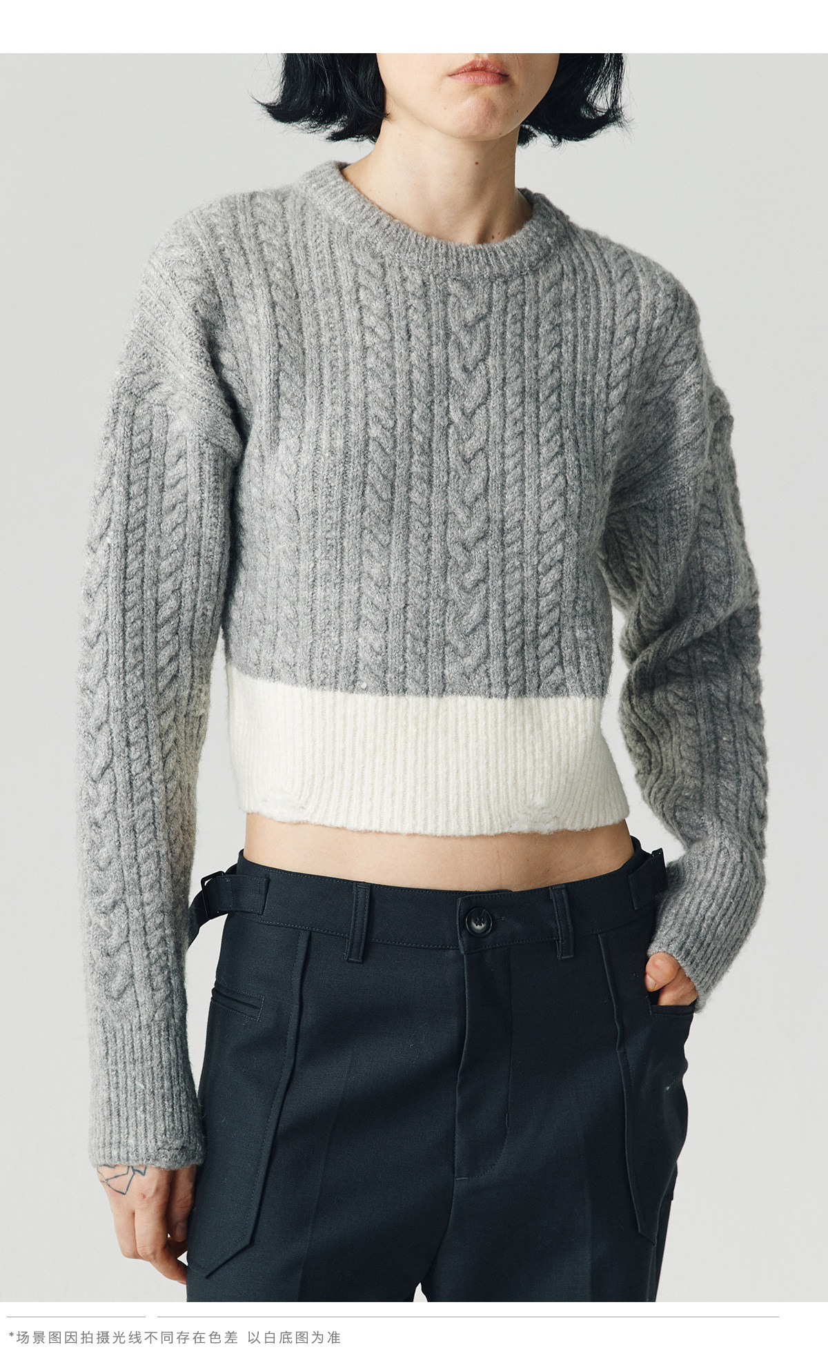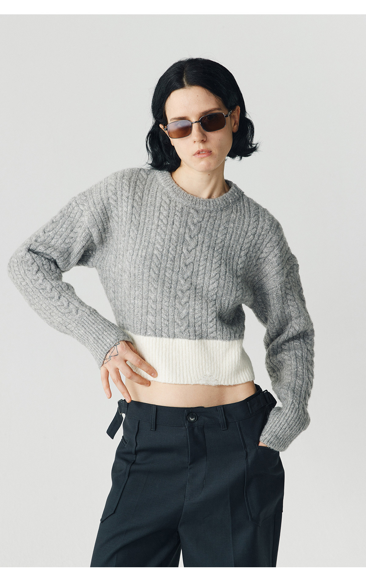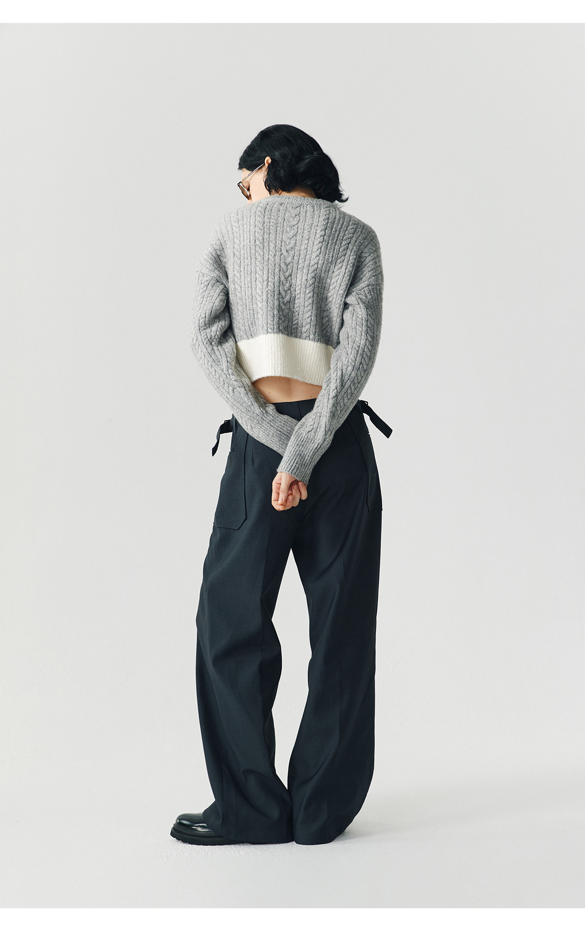 LIMPIDOCULUS Contrasting Color Retro Twisted Waist Crew Neck Sweater