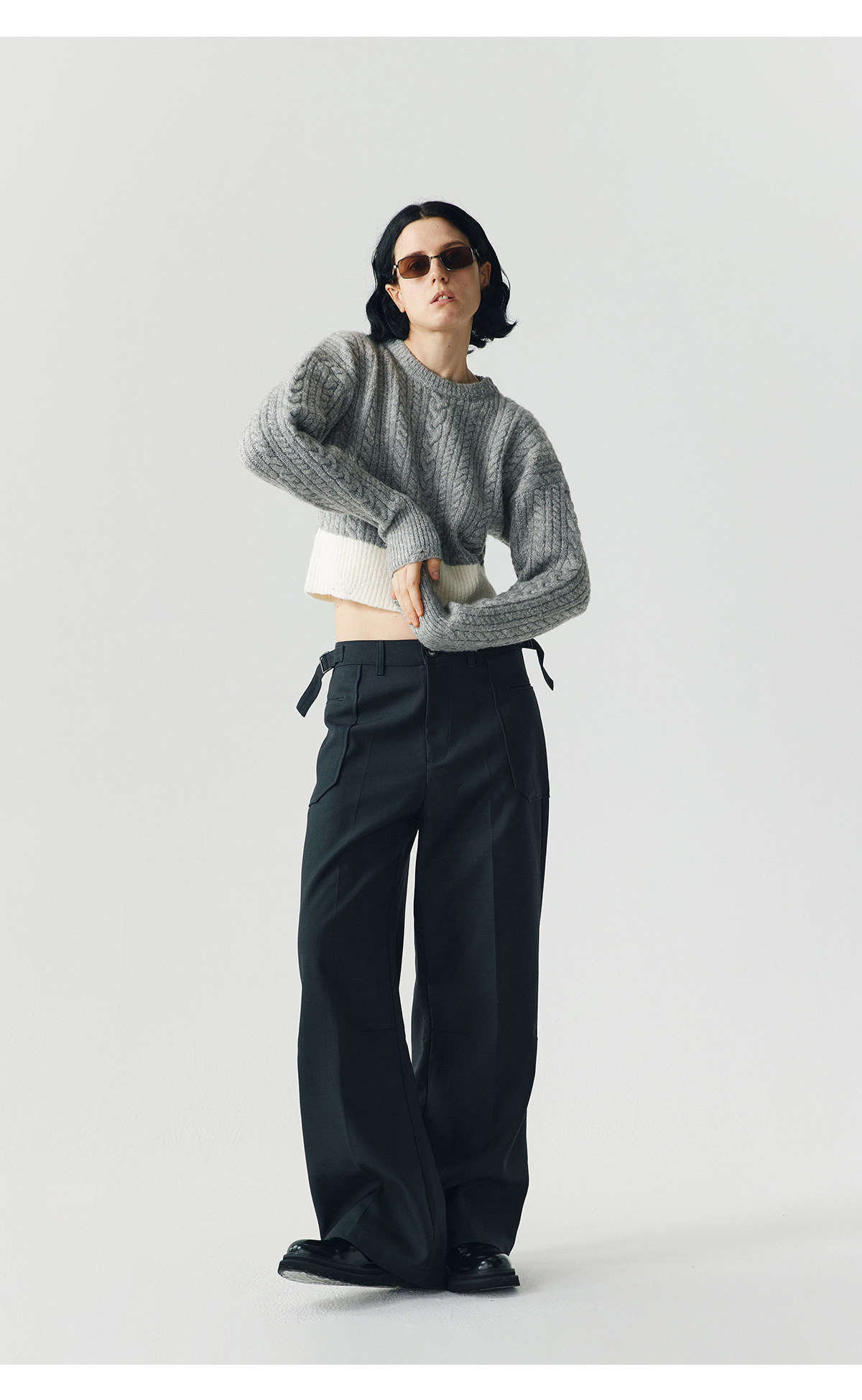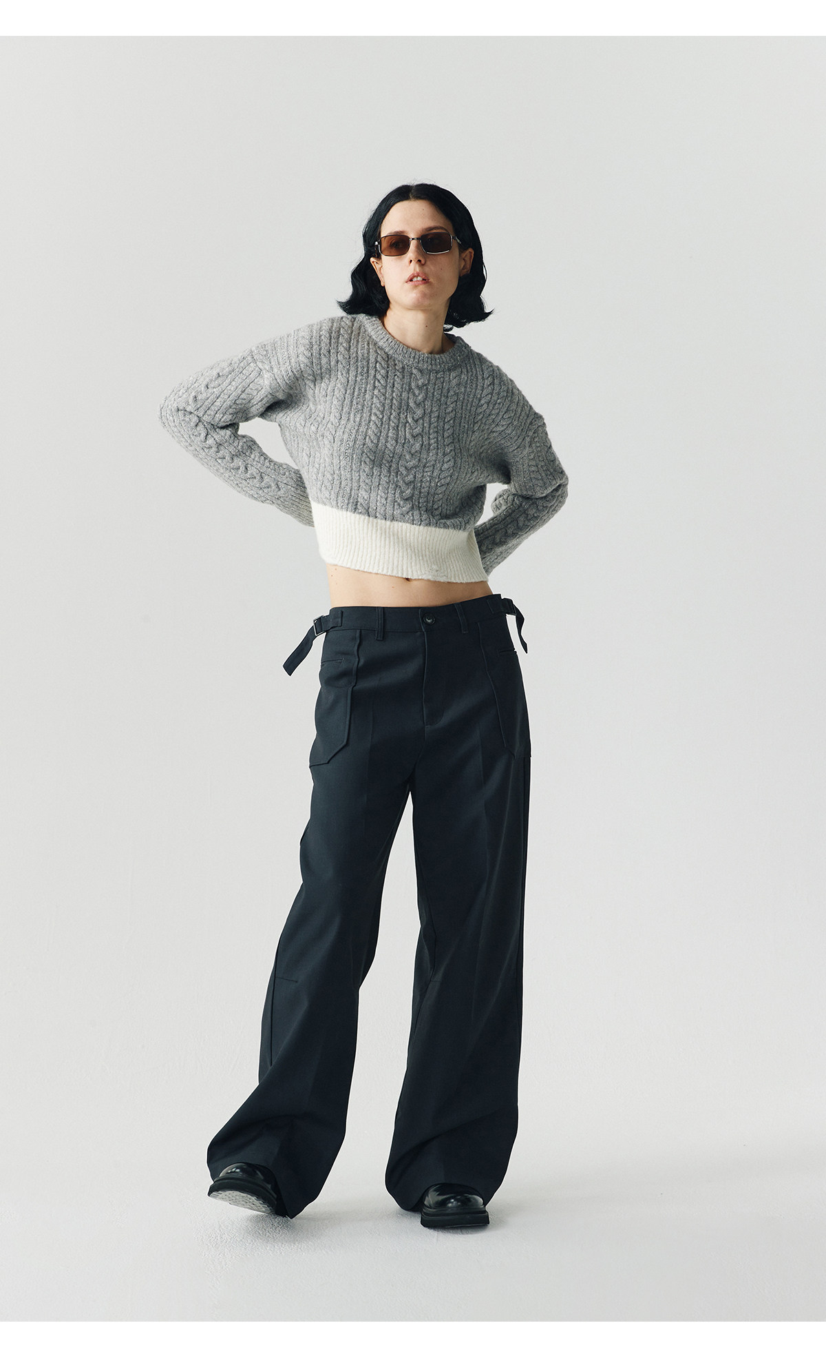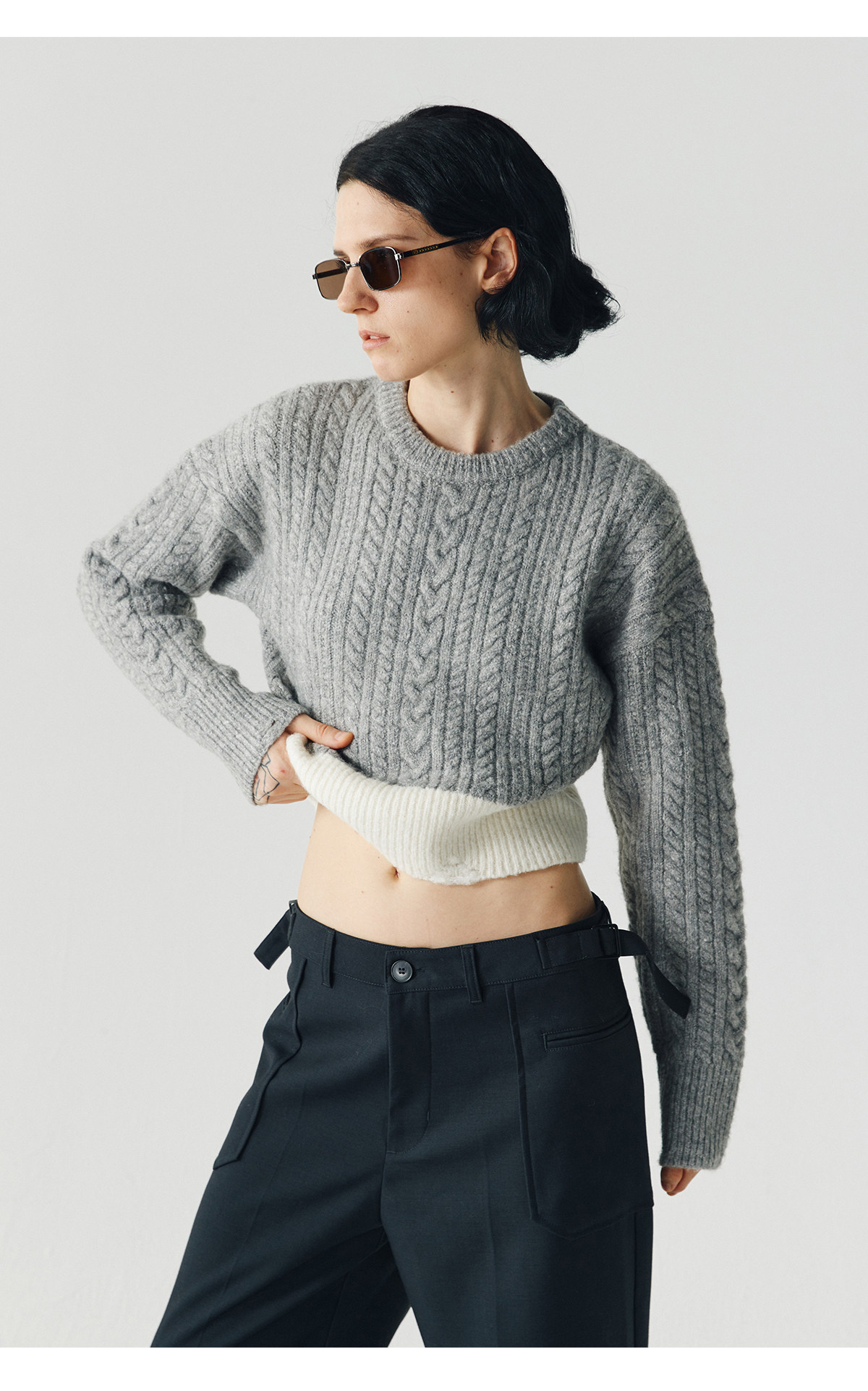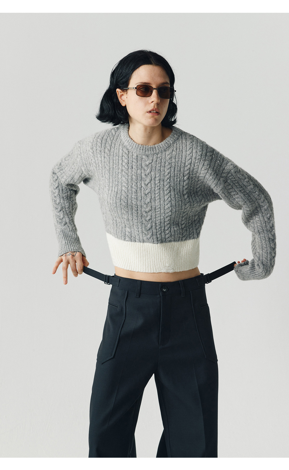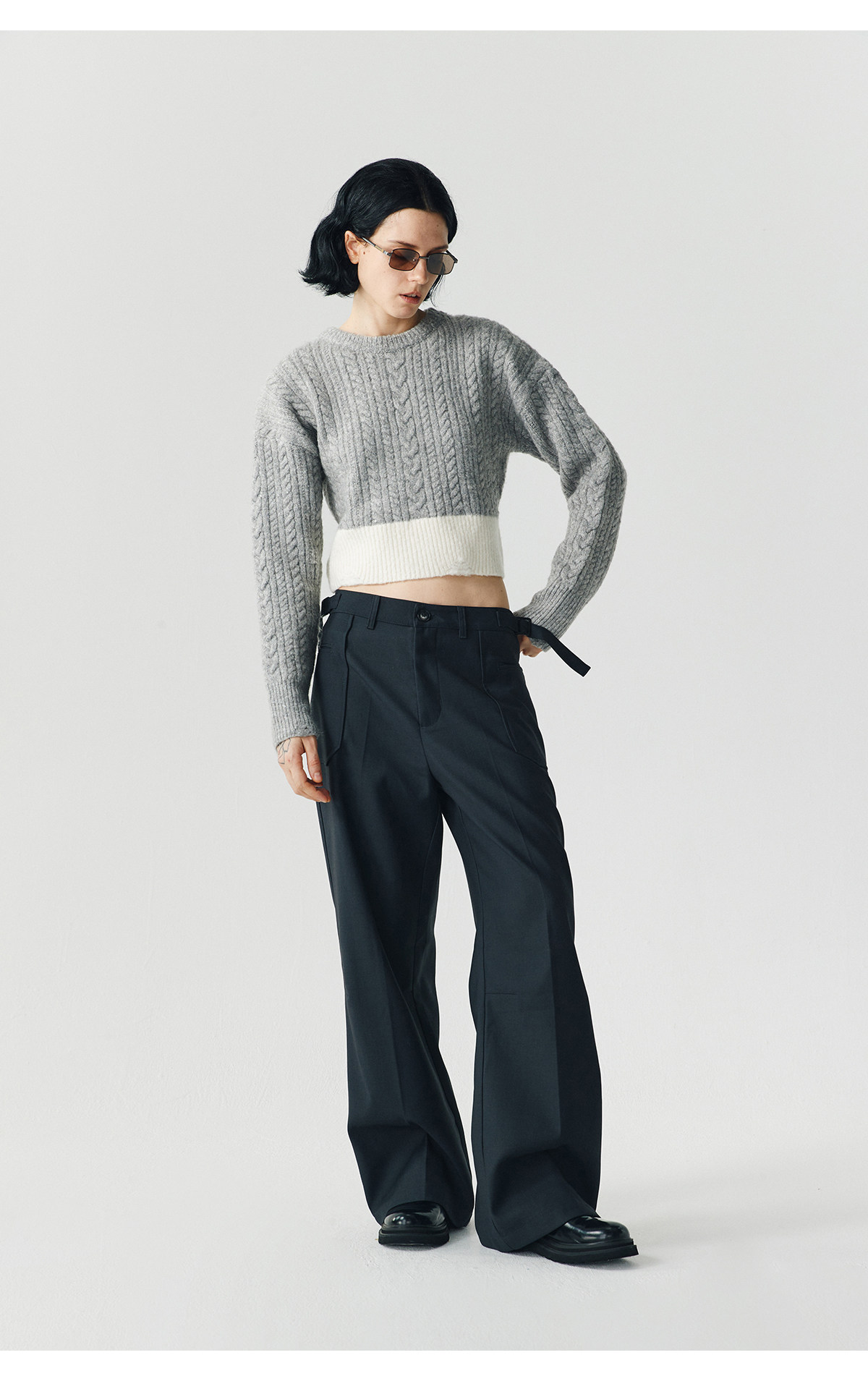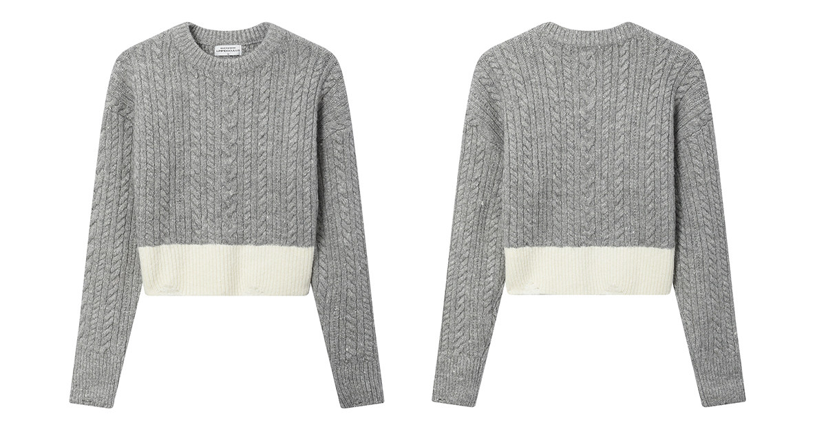 LIMPIDOCULUS Contrasting Color Retro Twisted Waist Crew Neck Sweater
