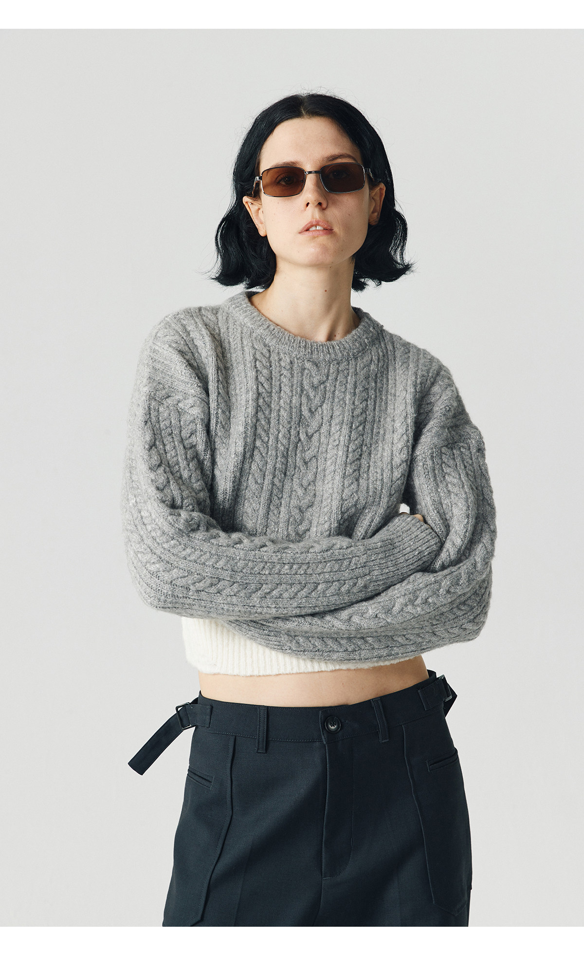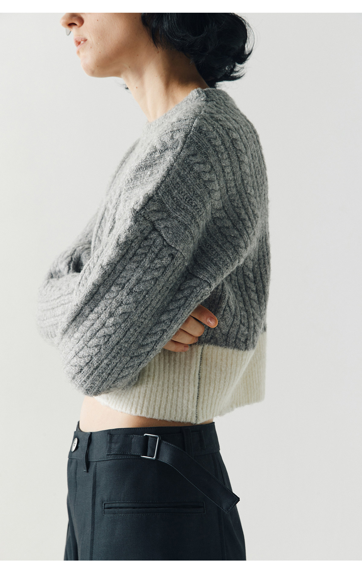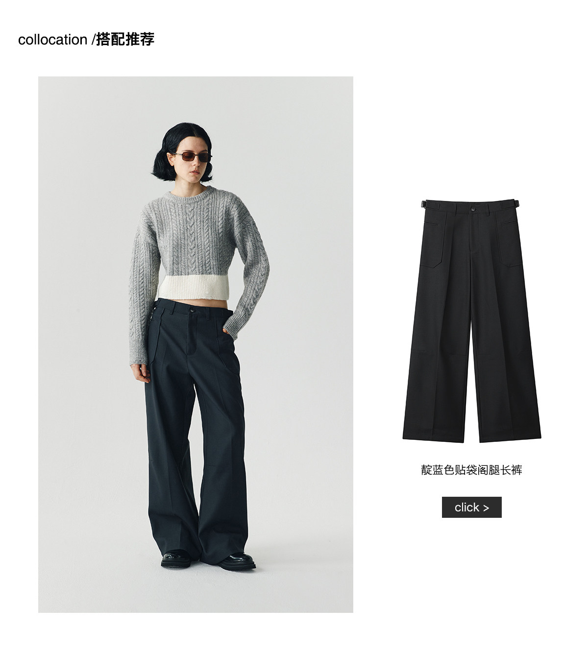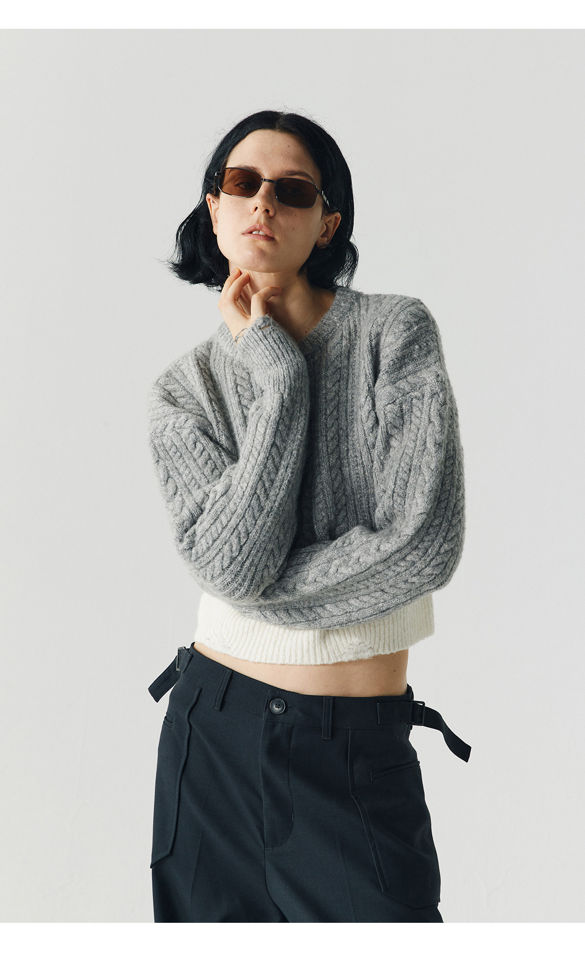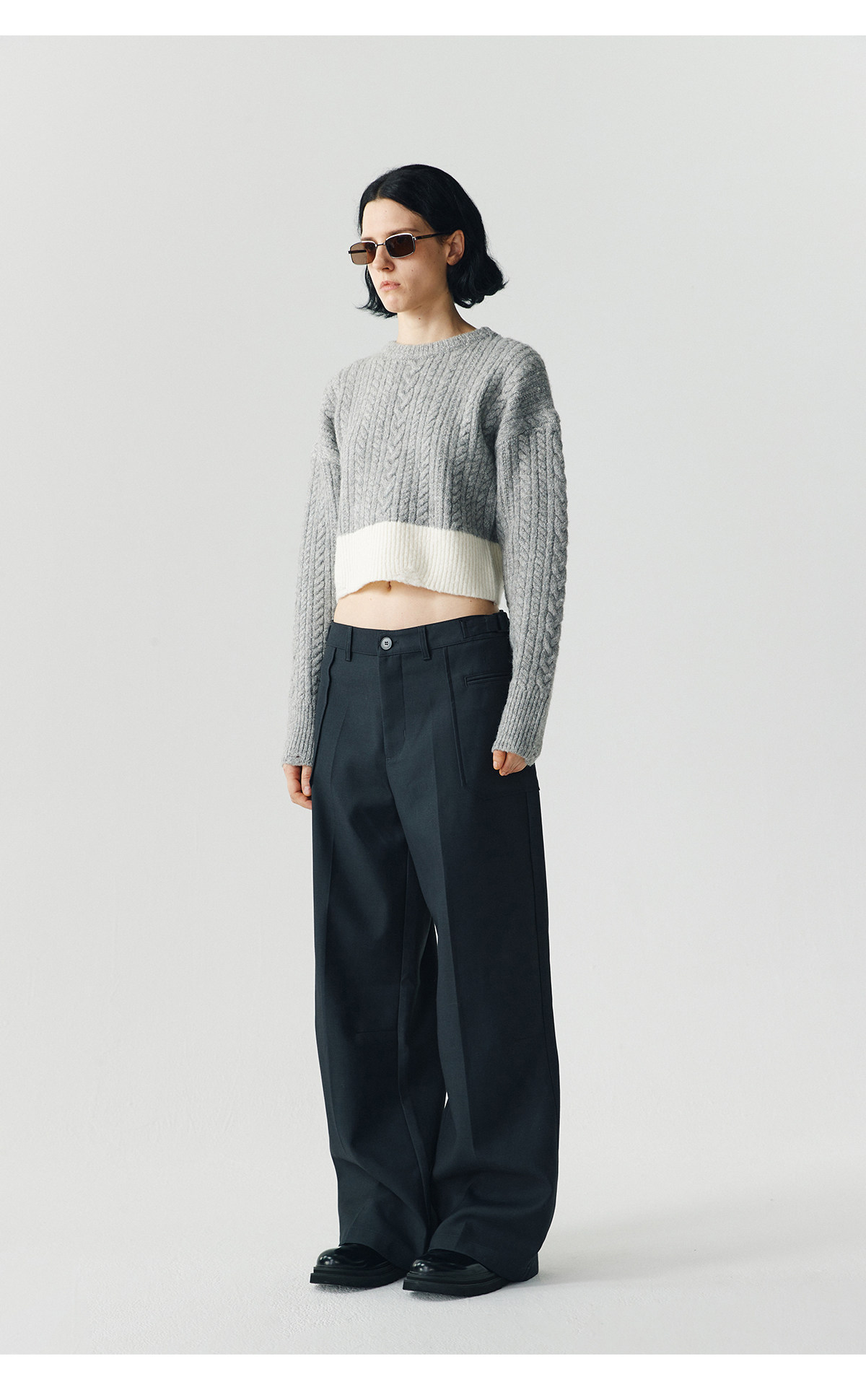 LIMPIDOCULUS Contrasting Color Retro Twisted Waist Crew Neck Sweater