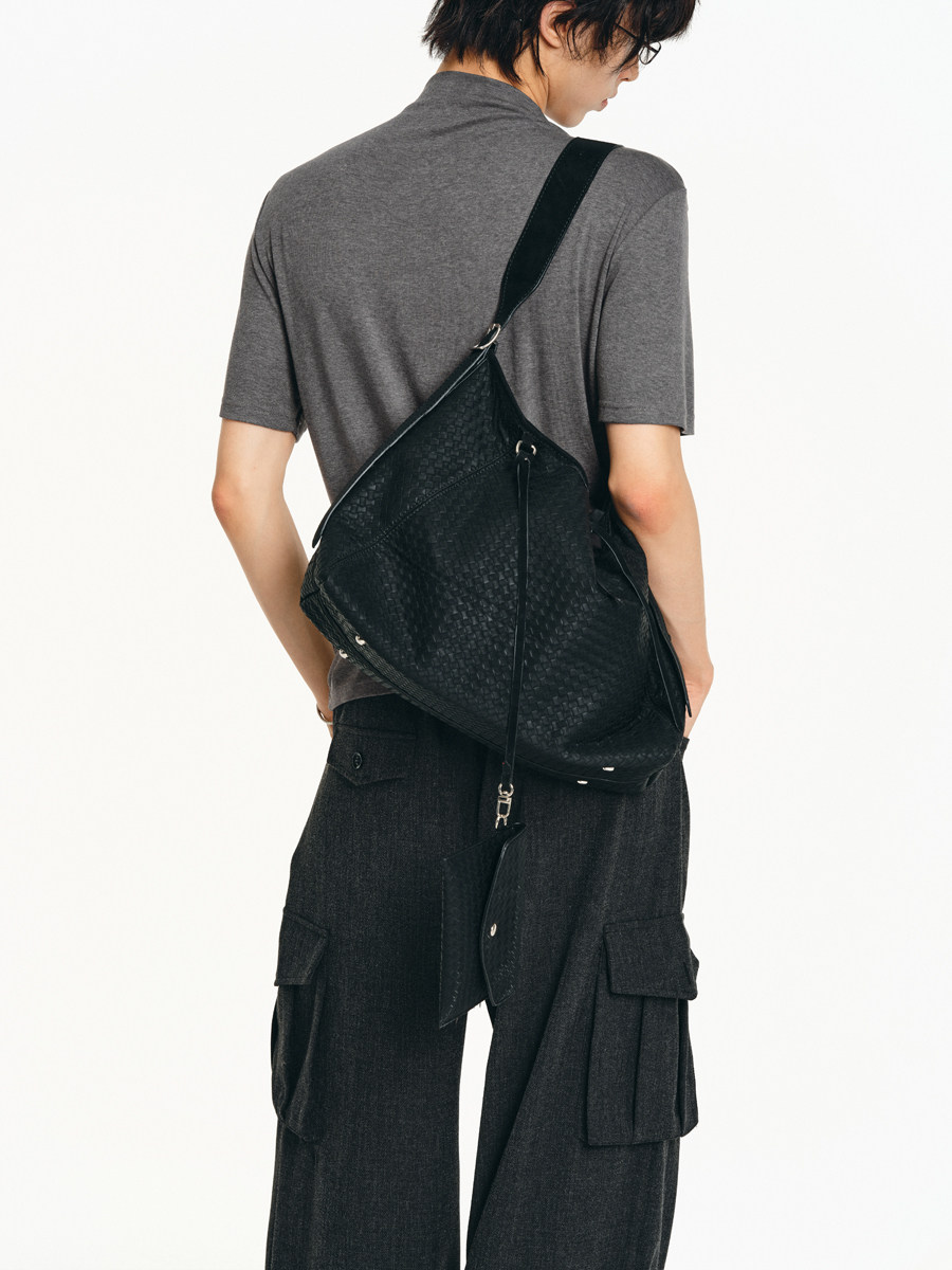 LIMPIDOCULUS Suede Woven Matte Shoulder Diagonal Span Bag