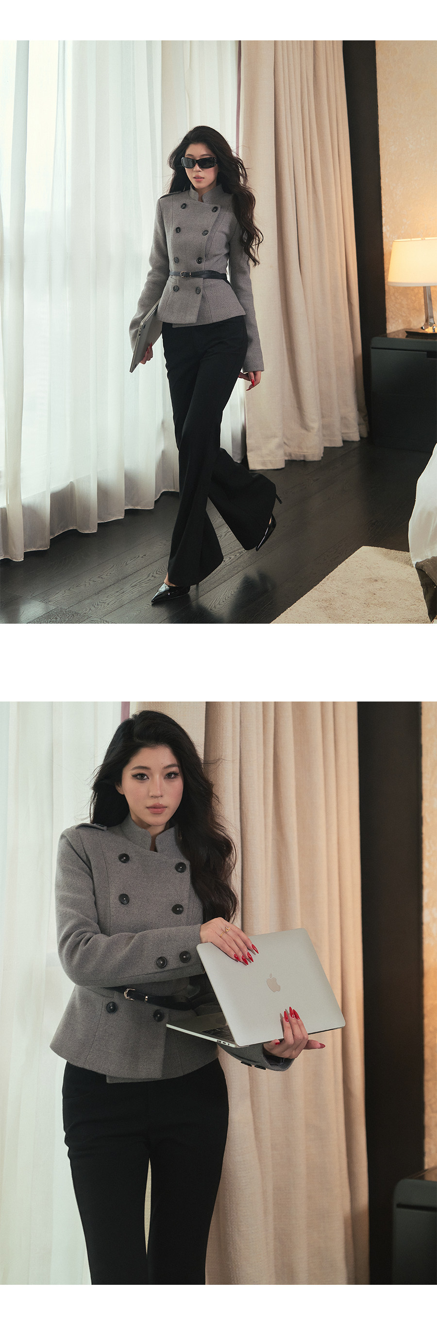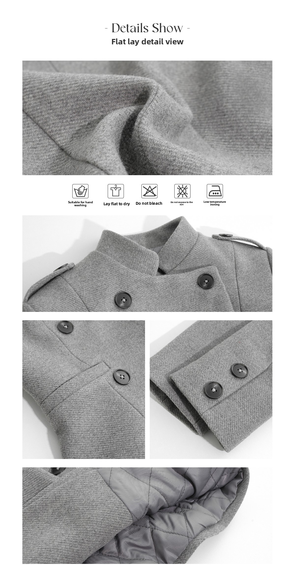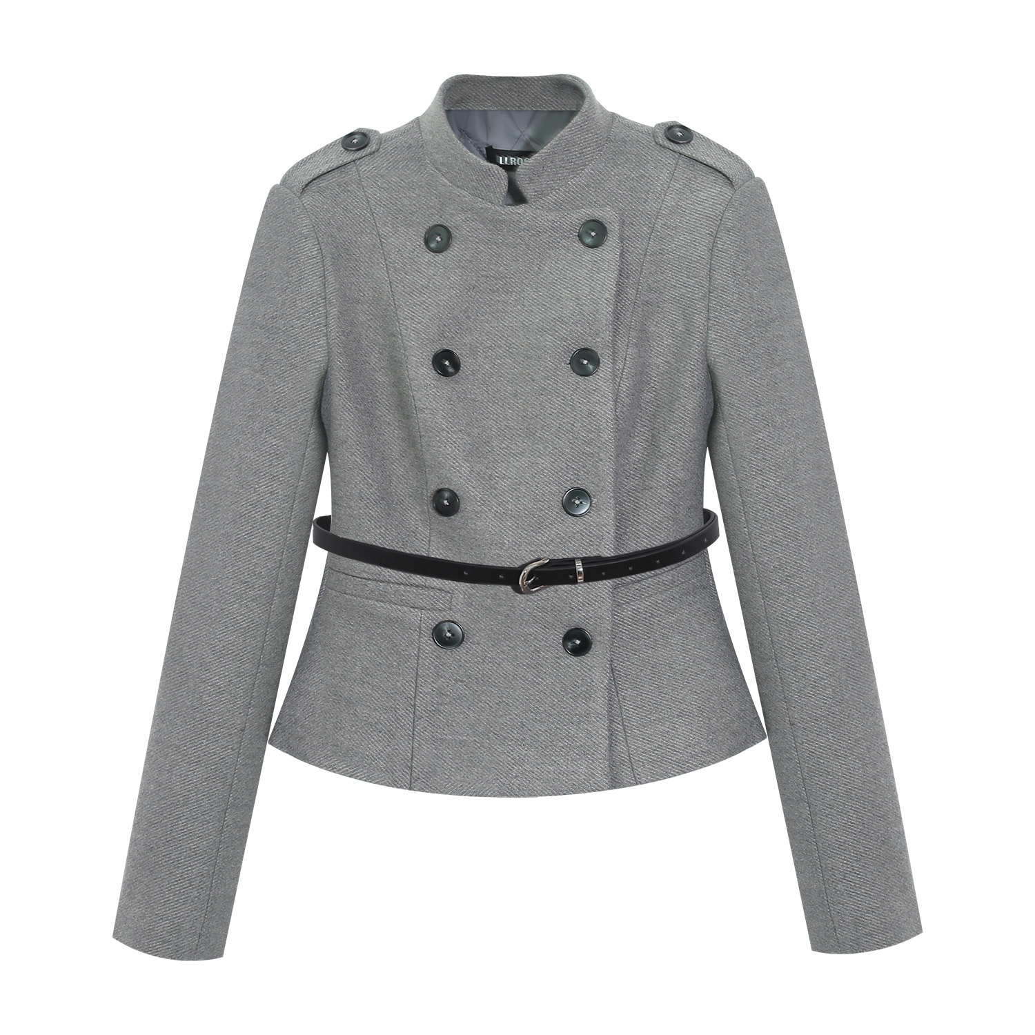 LLROGE Versatile Slim-fitting Gray Stand-up Collar Cropped Woolen Jacket