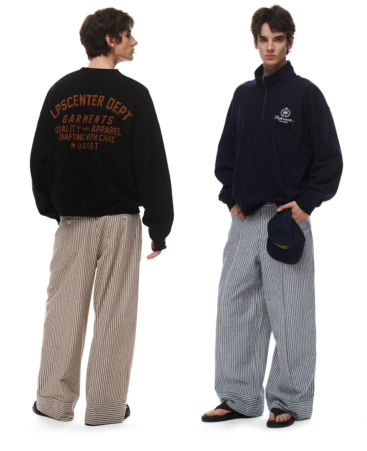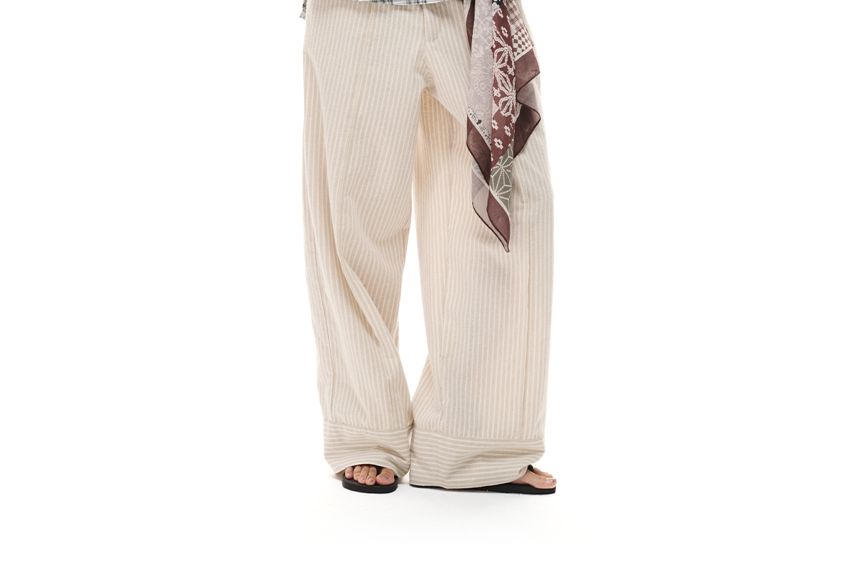 Loopsoon Vintage Striped Casual Versatile Straight Wide Leg Pants