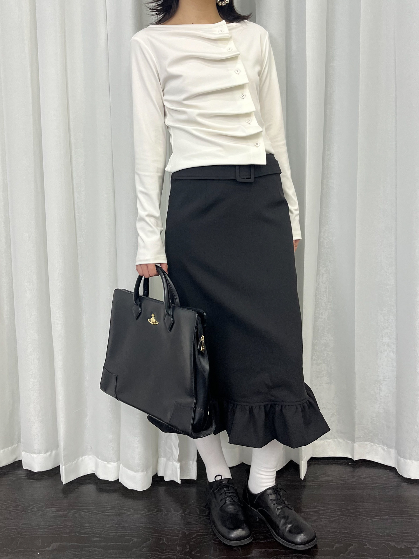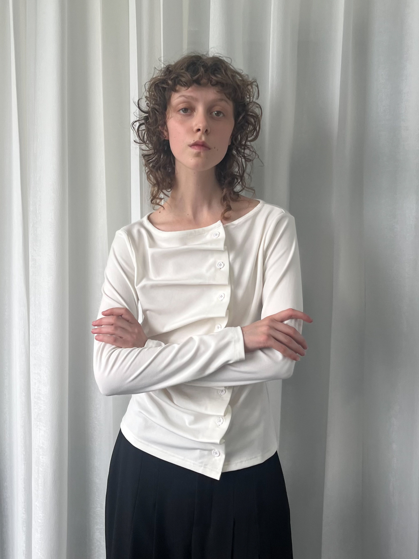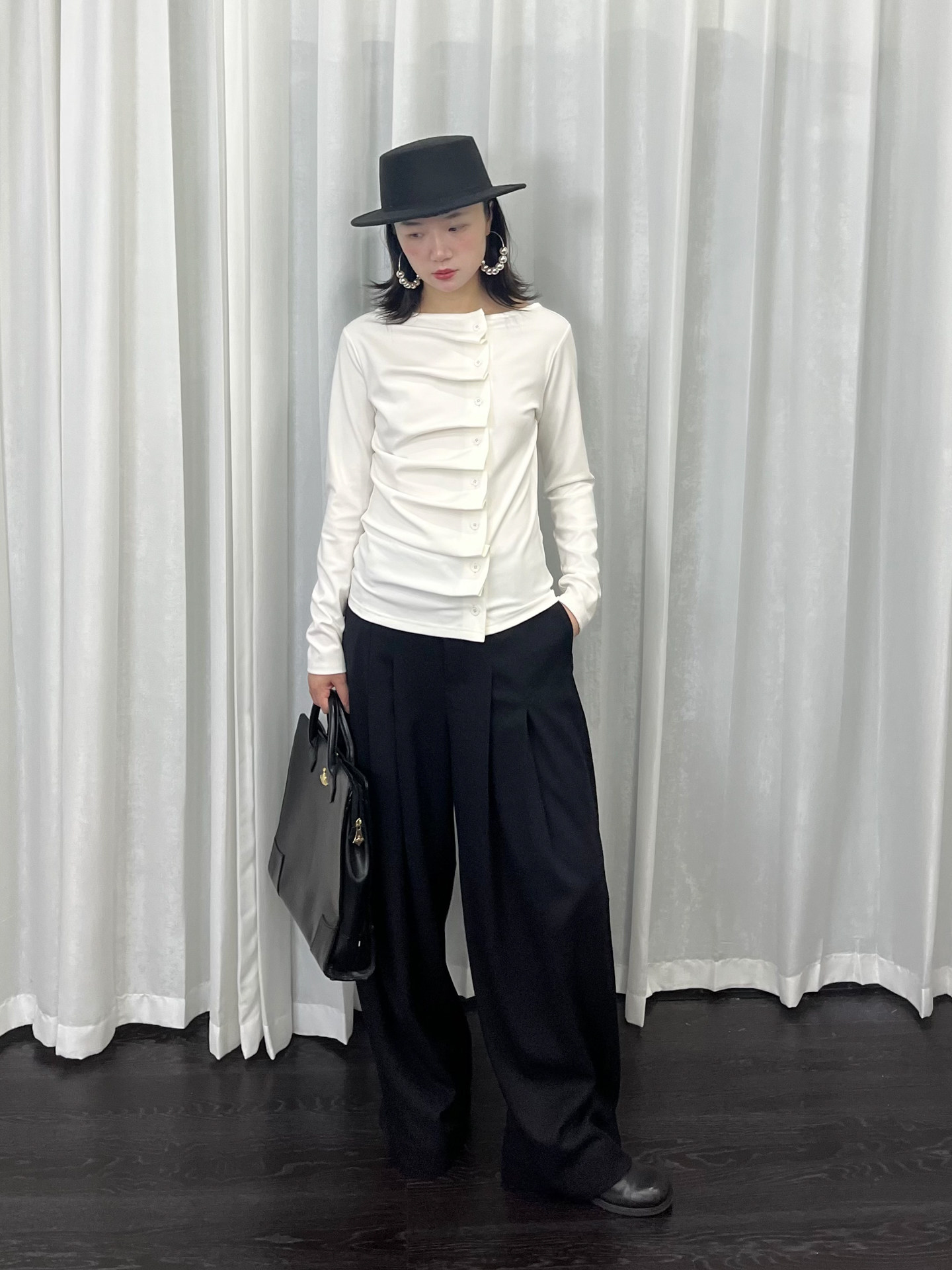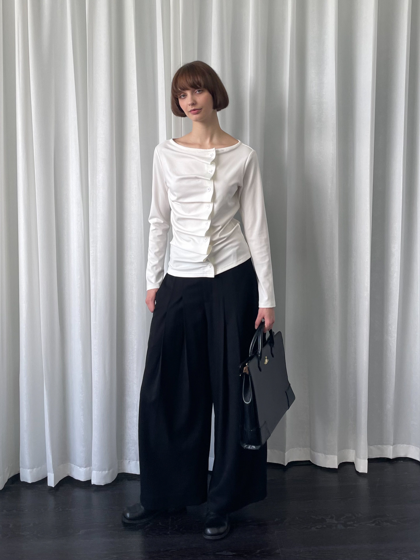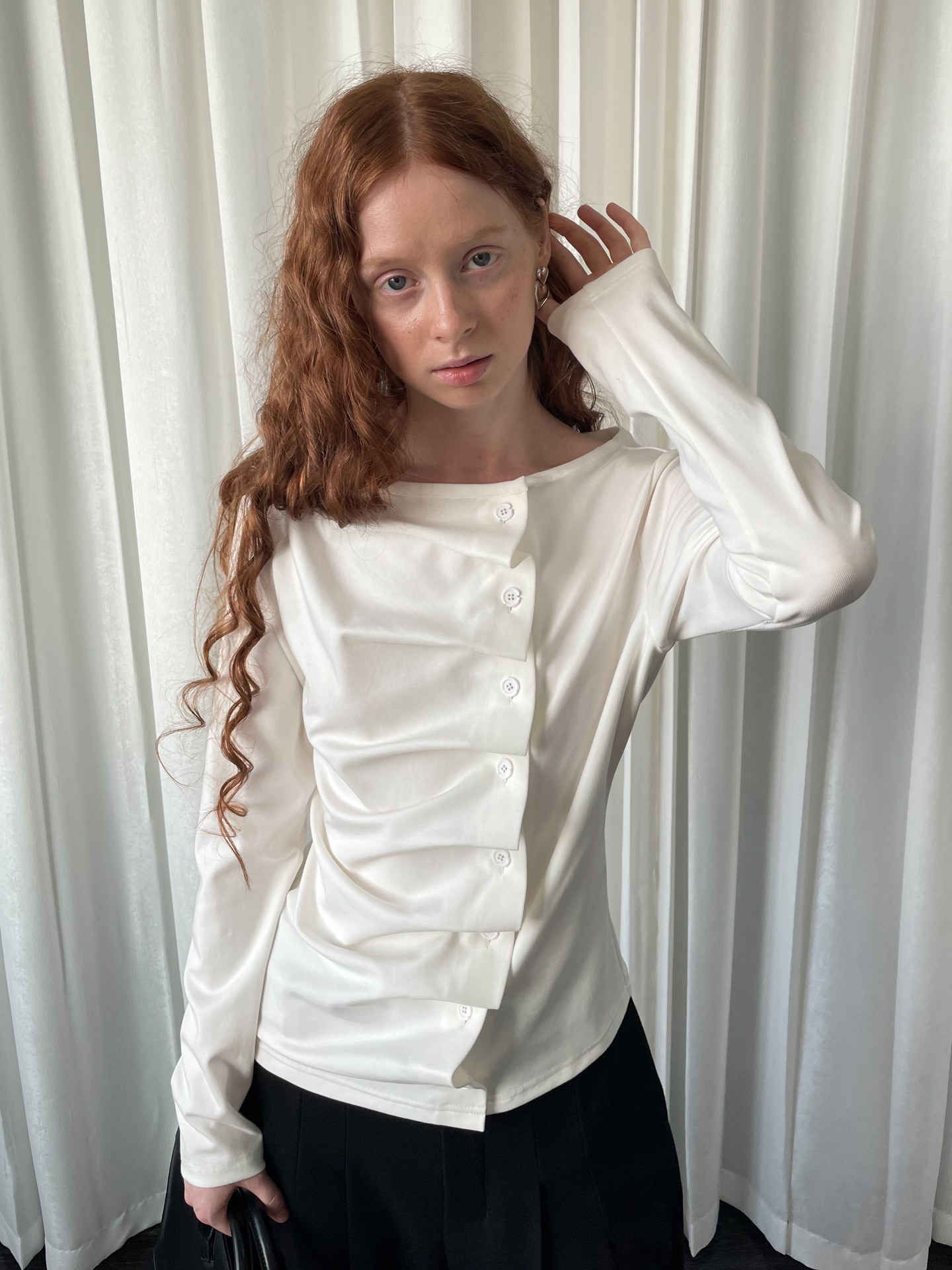 Loosesmell Pleated Versatile Simple Long Sleeves