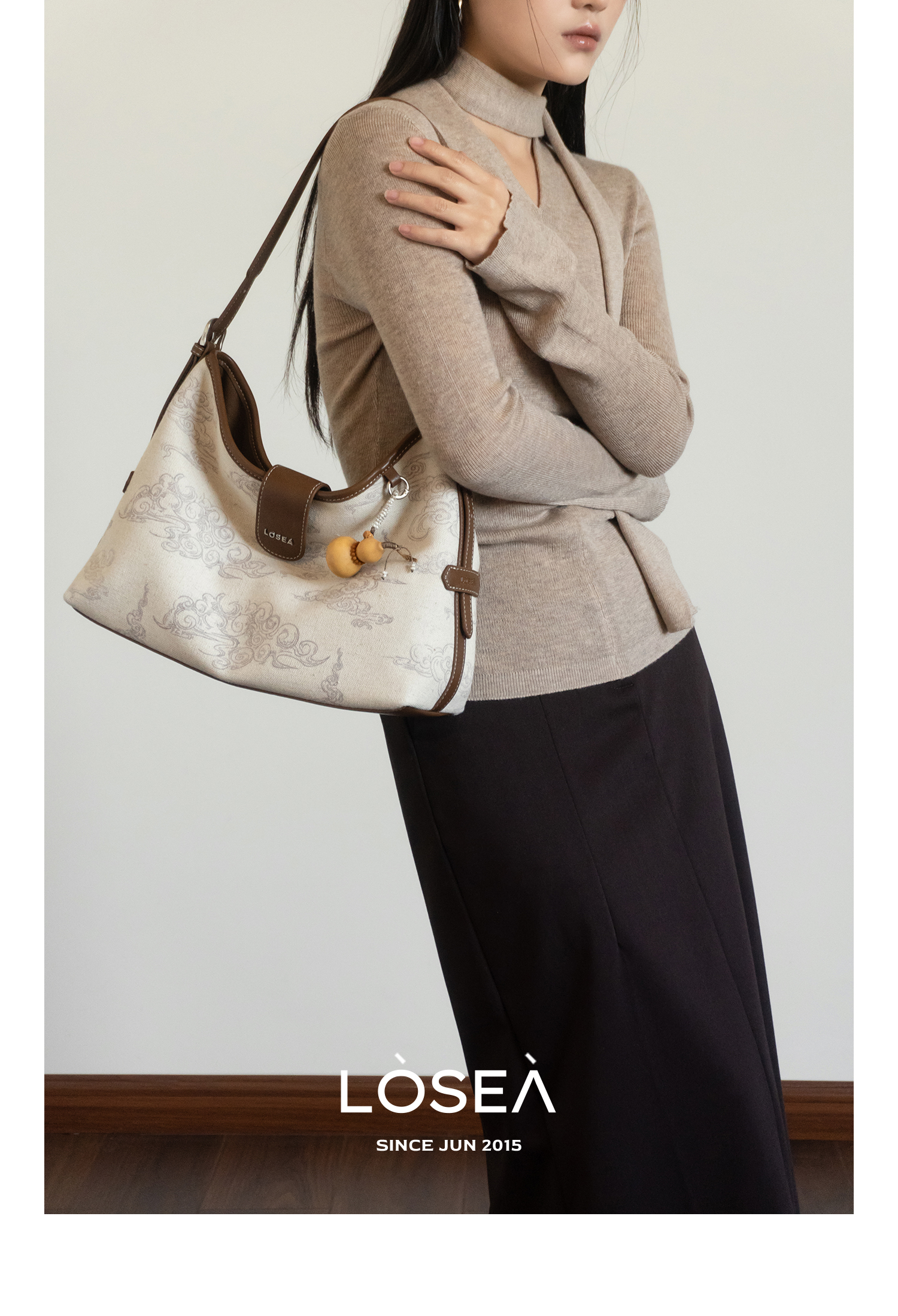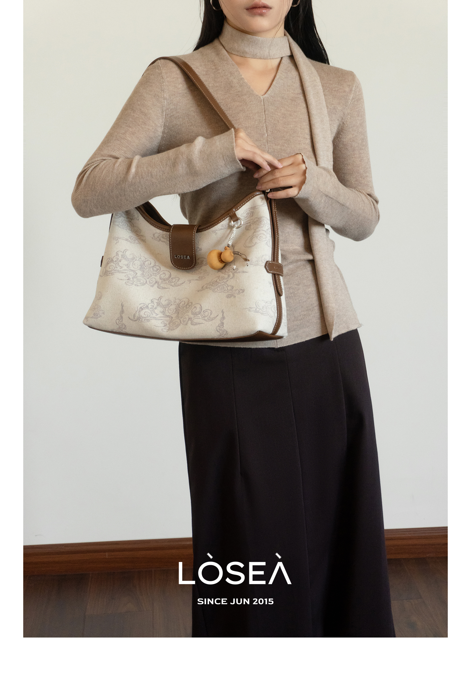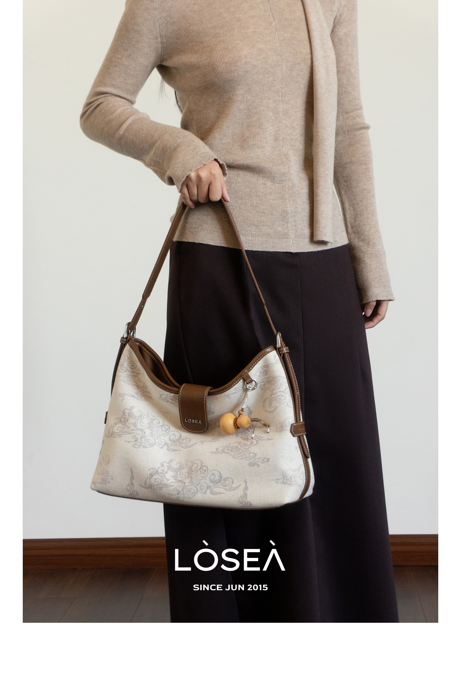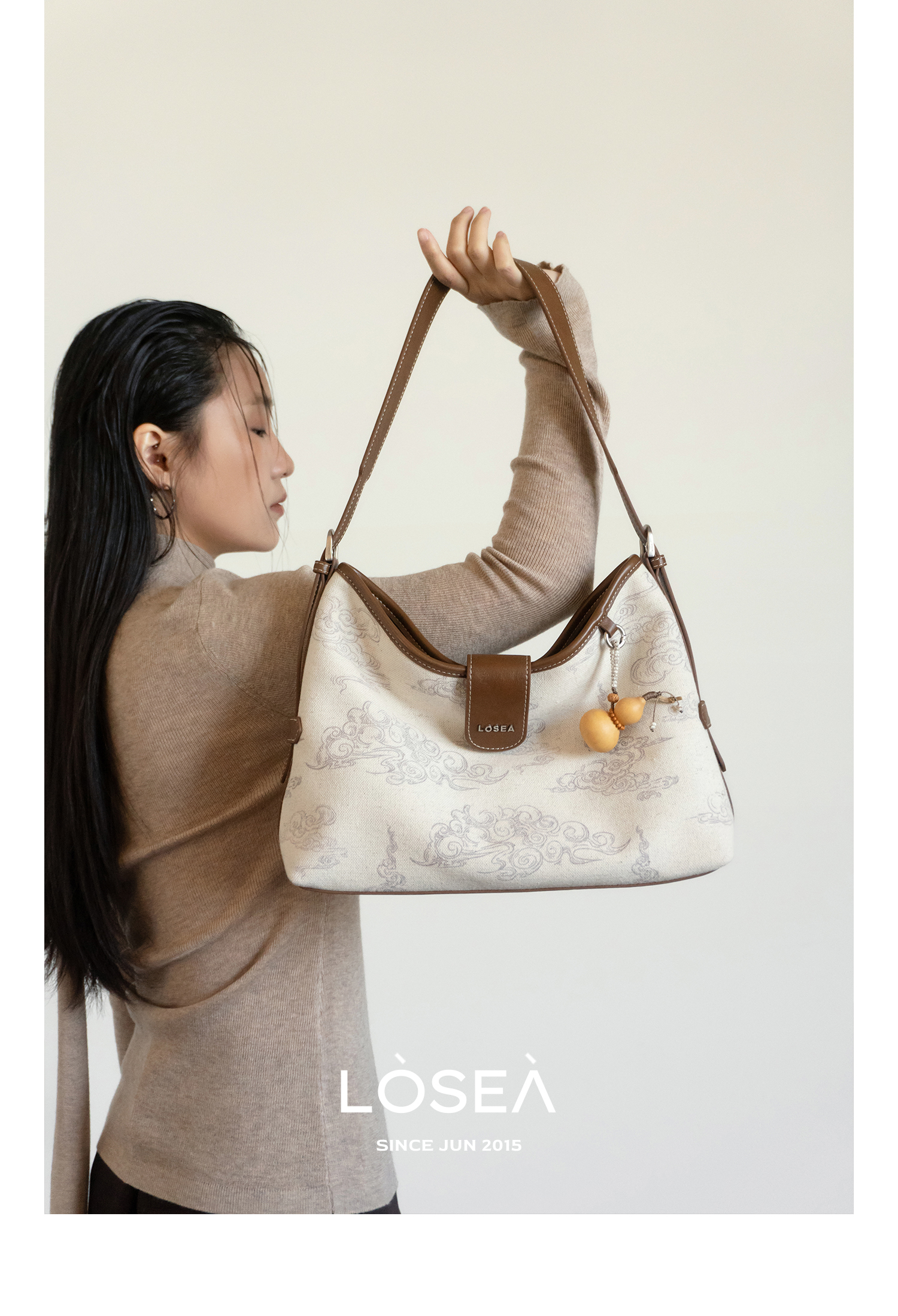 LOSEA Auspicious Cloud Pattern Single Shoulder Underarm Gourd Bag