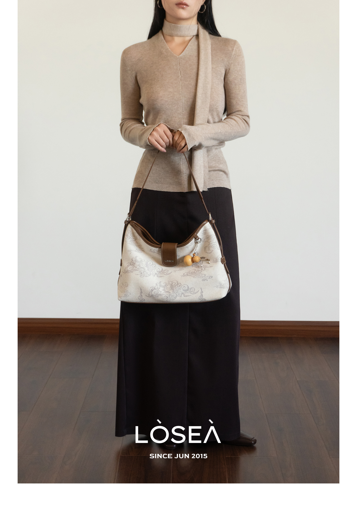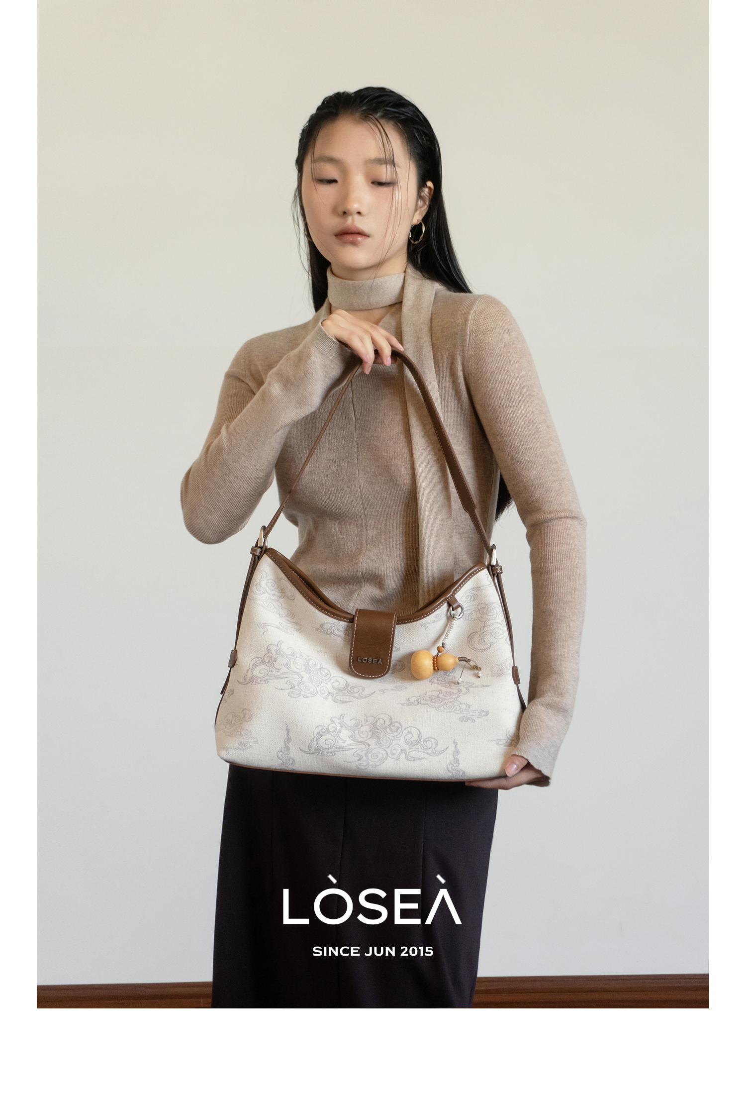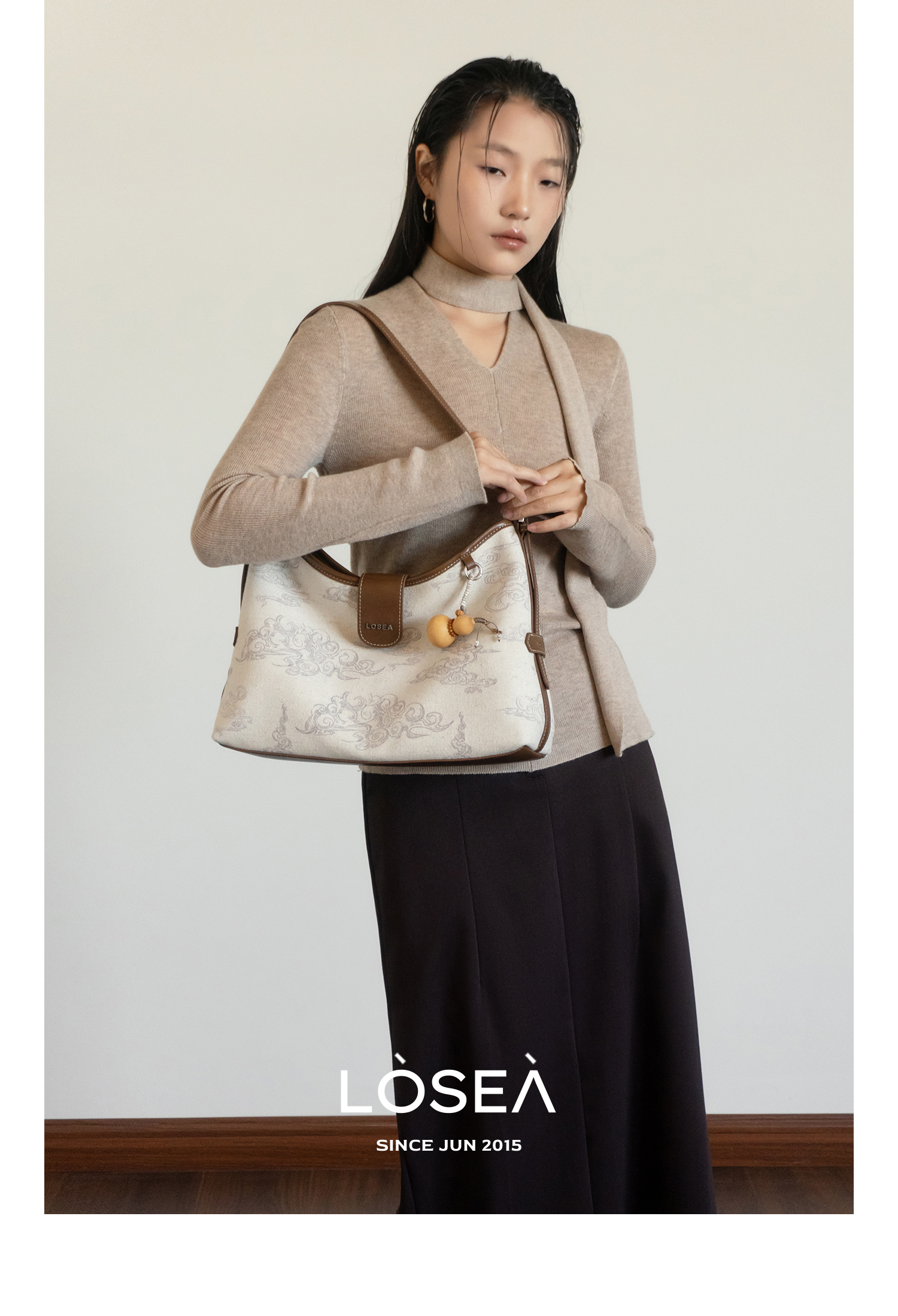 LOSEA Auspicious Cloud Pattern Single Shoulder Underarm Gourd Bag