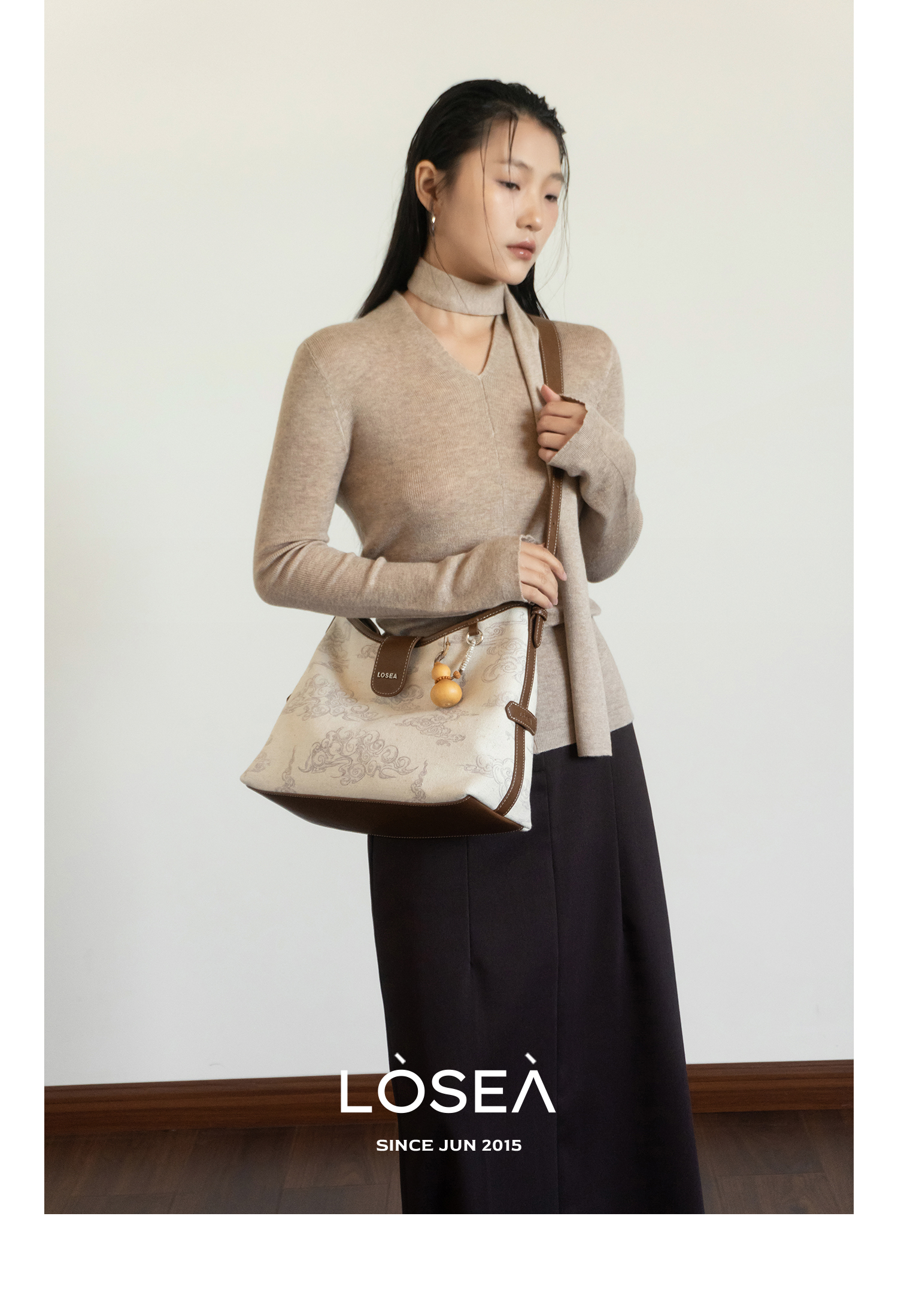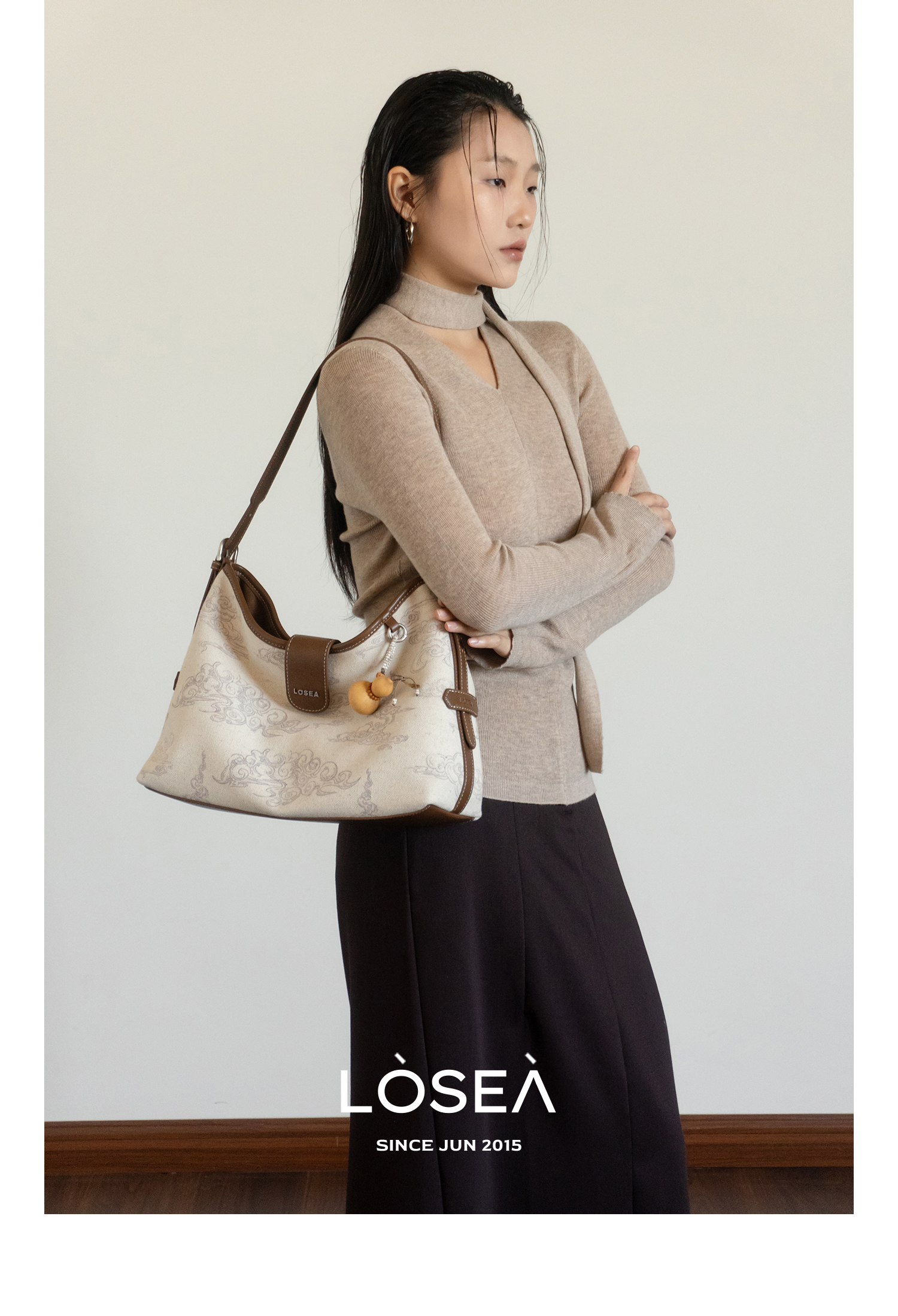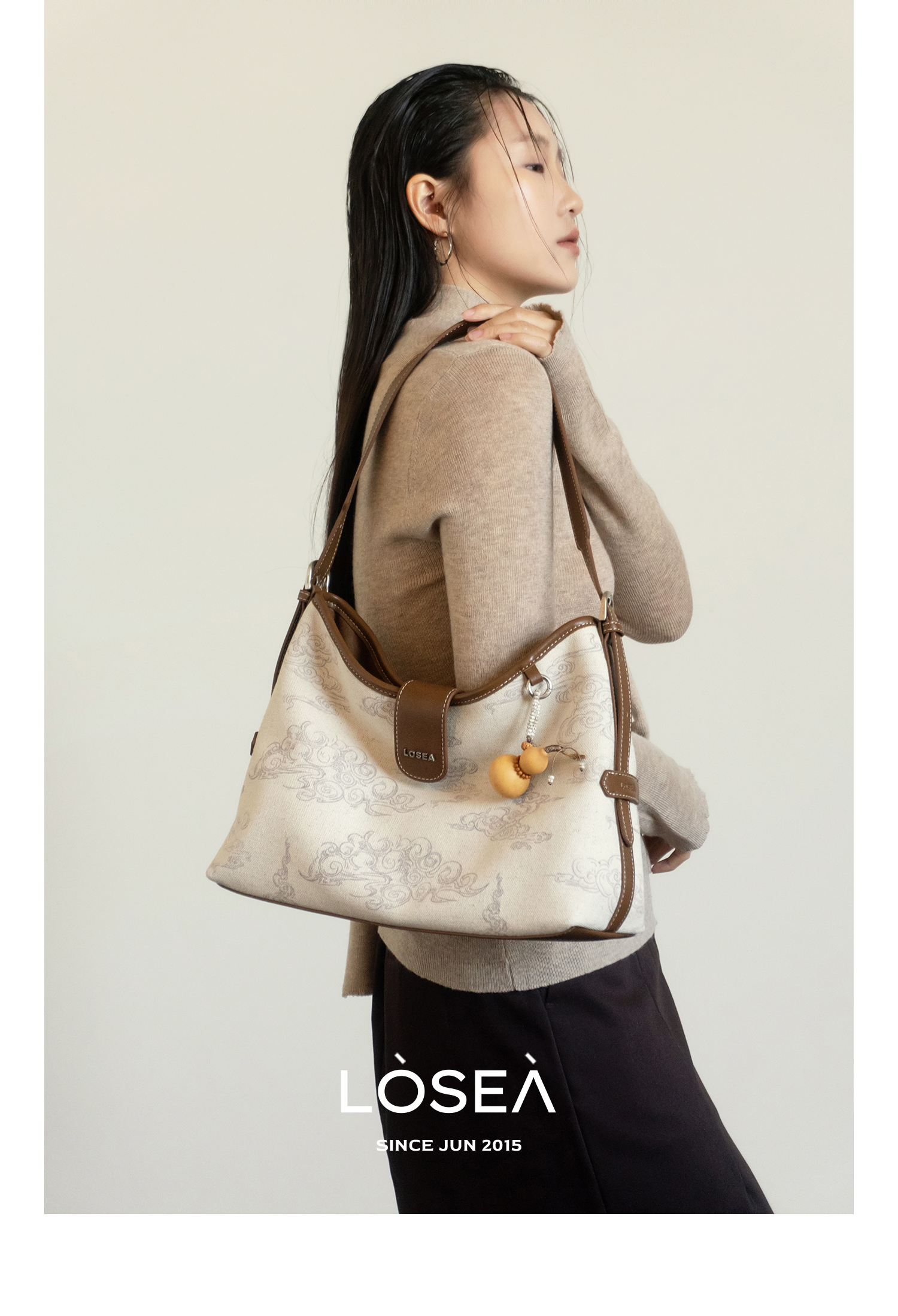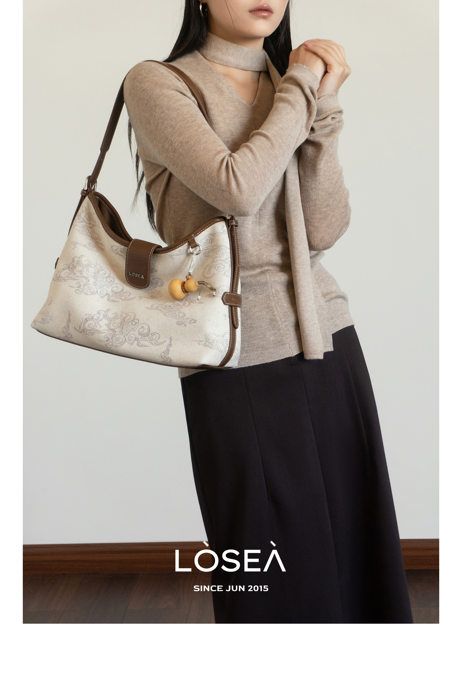 LOSEA Auspicious Cloud Pattern Single Shoulder Underarm Gourd Bag
