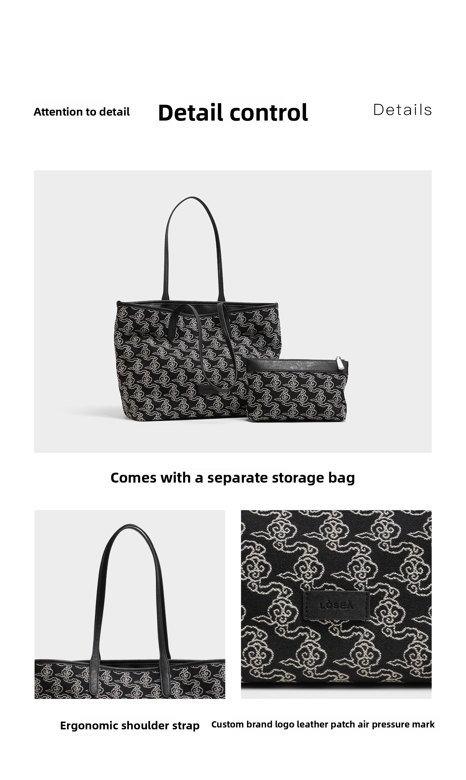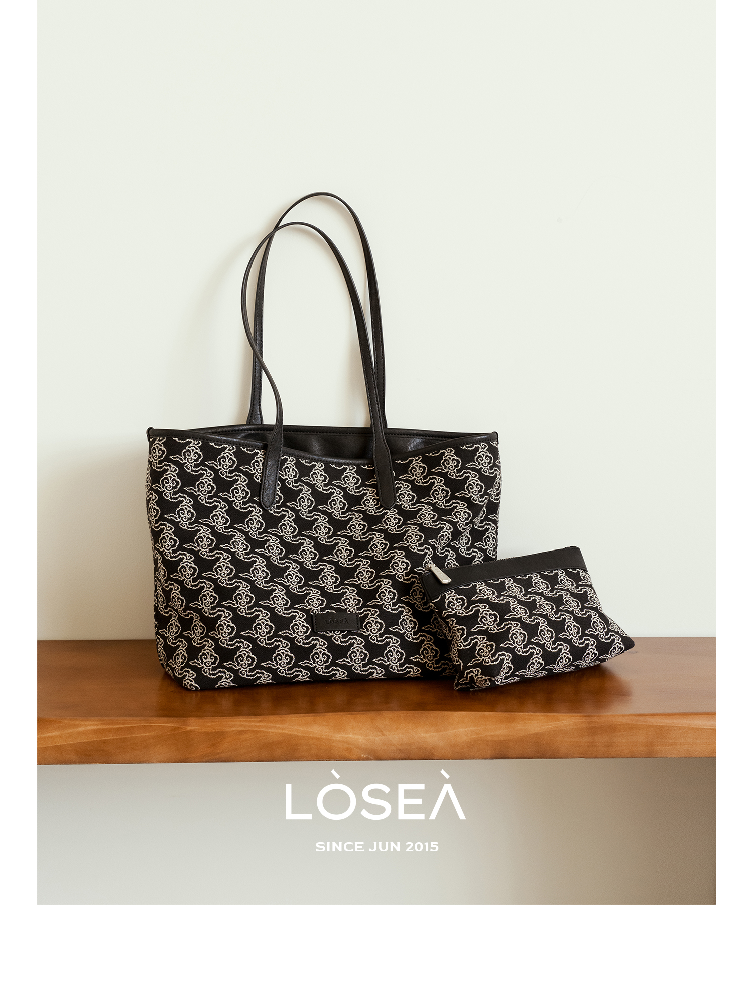 LOSEA Casual Embroidery Large Capacity Tote Bag